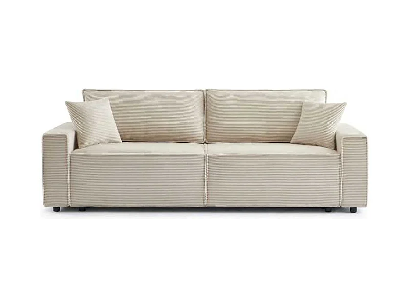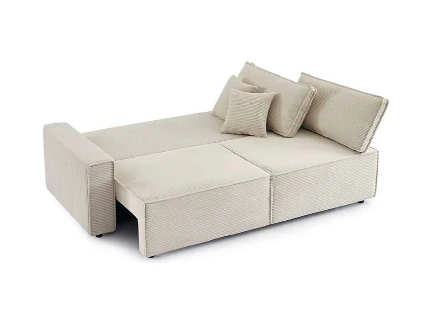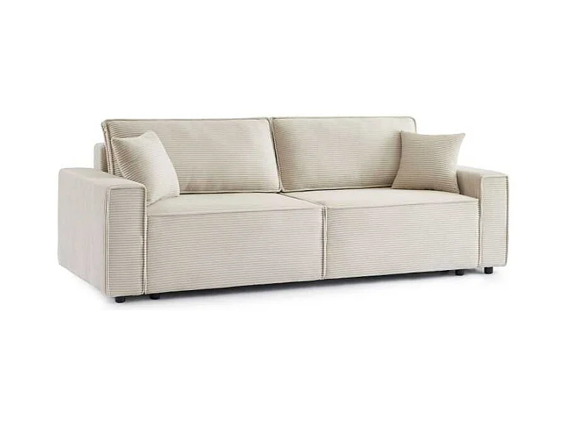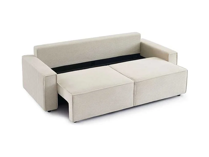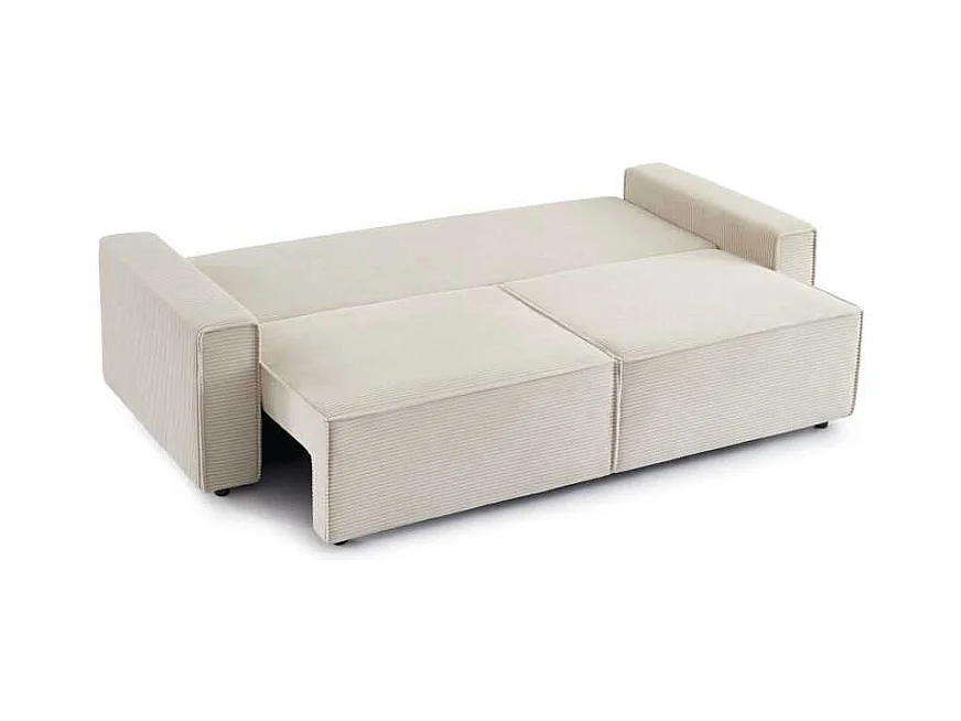 Canapé droit convertible velours côtelé 3 places beige IOLITE