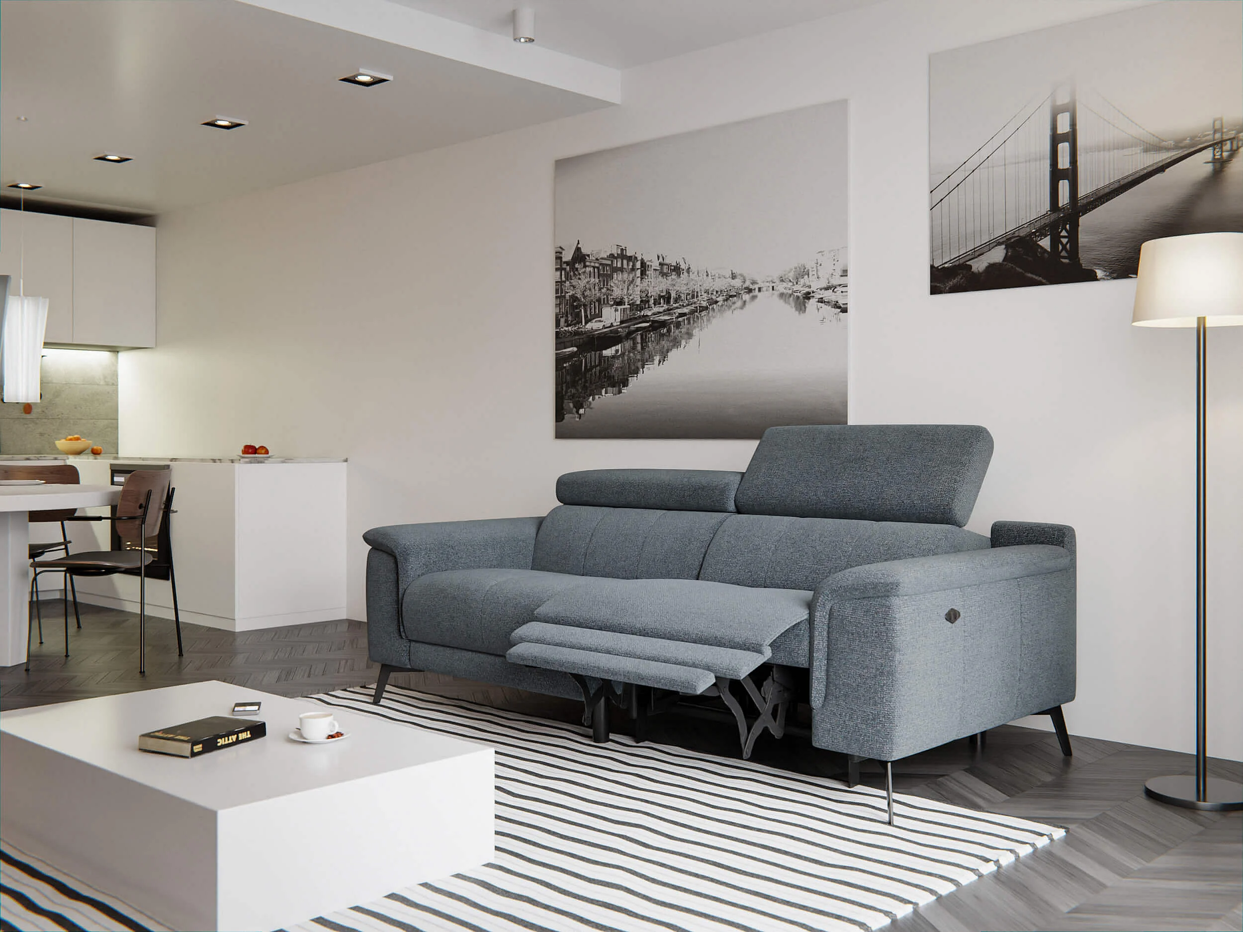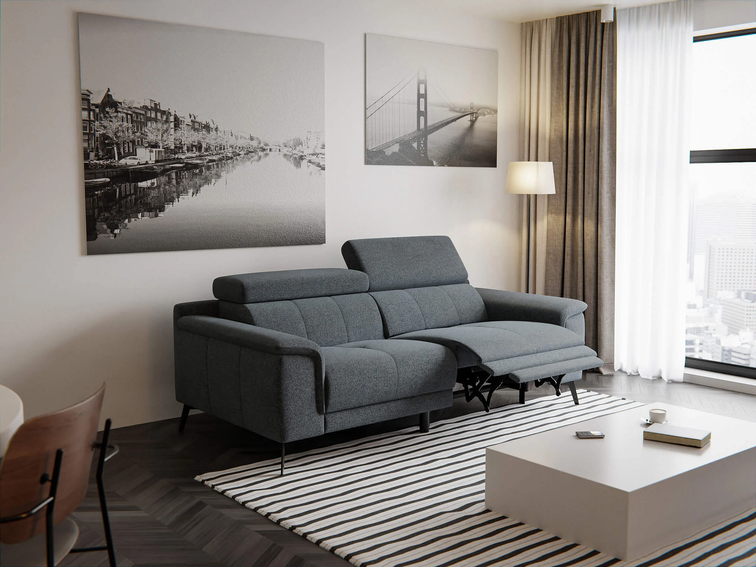 Canapé droit Fiero 3 places avec un relax électrique côté droit tissu gris foncé