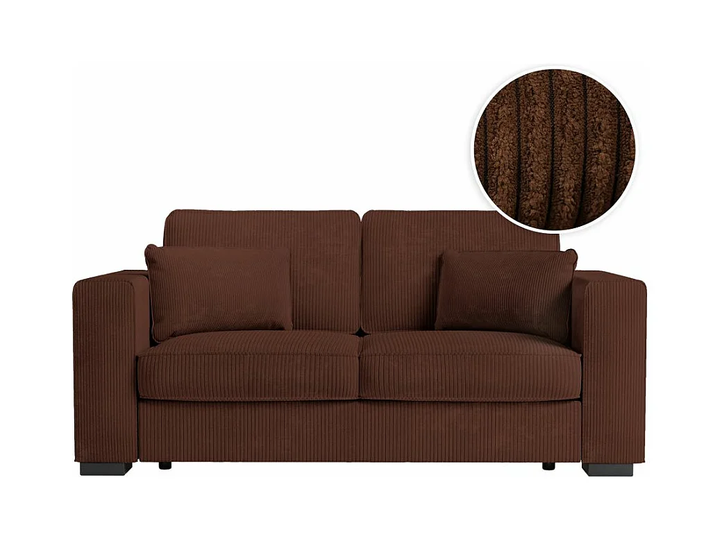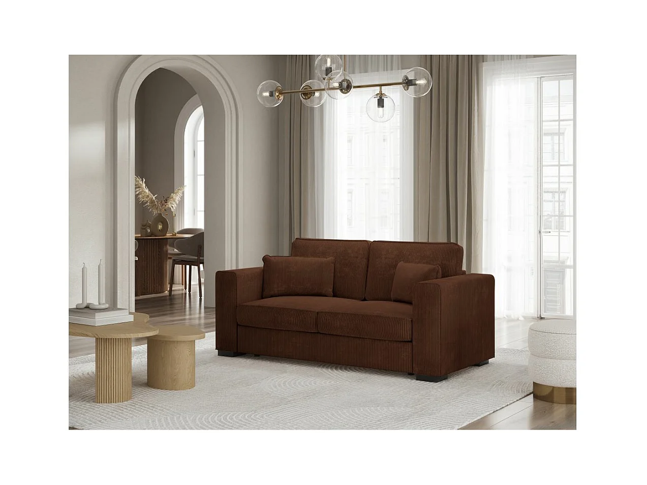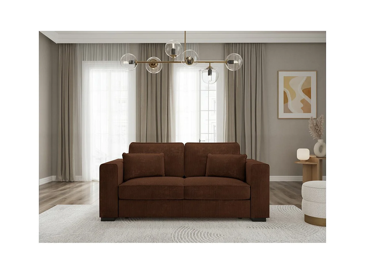 Canapé droit fixe 2 places Belami en velours côtelé - Marron - L181 x P93 x H86cm - Loungitude