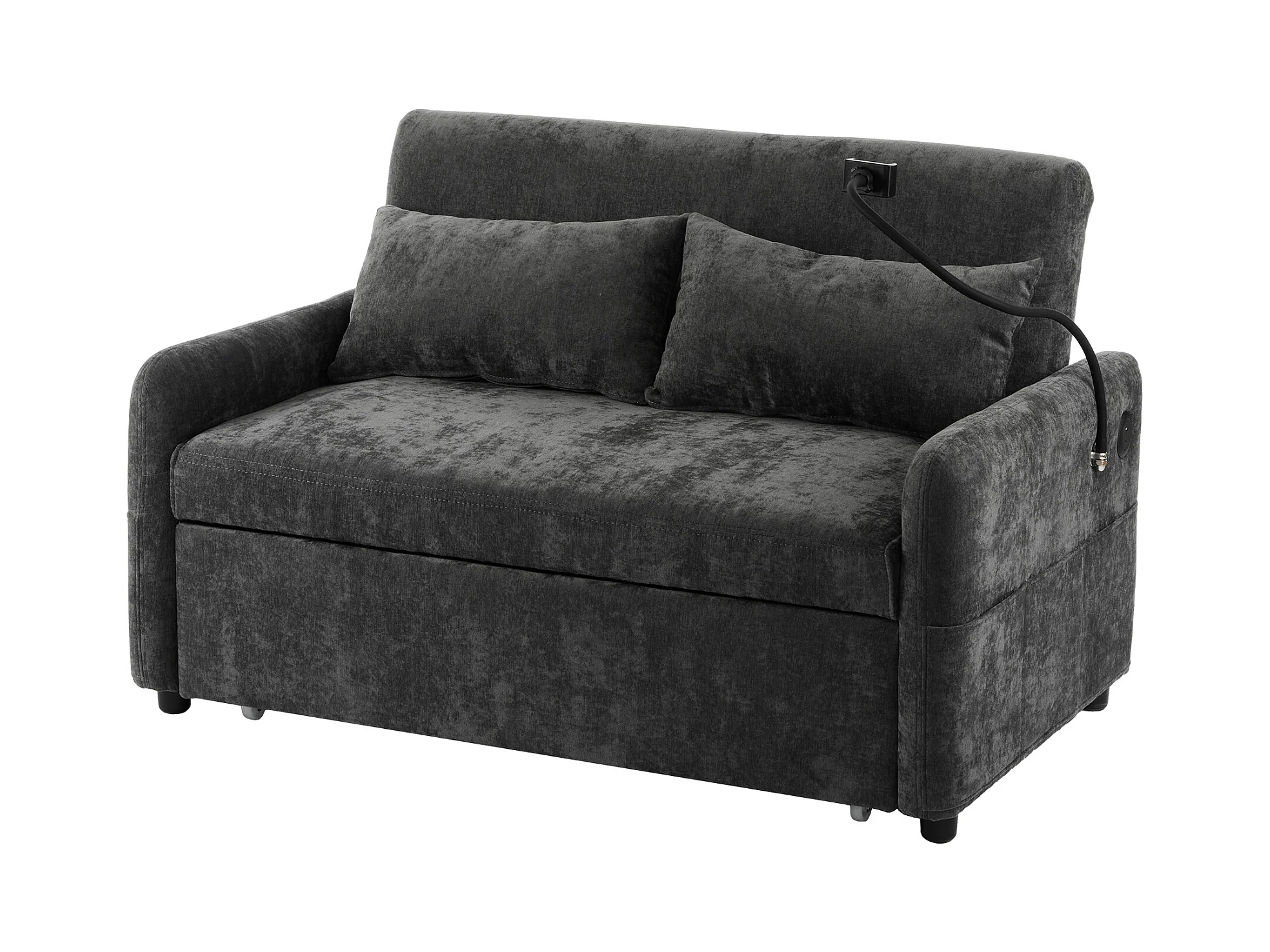 Canapé droit gris - Canapé pliant avec support téléphone et poche de rangement - dossier réglable - pour salon et chambre