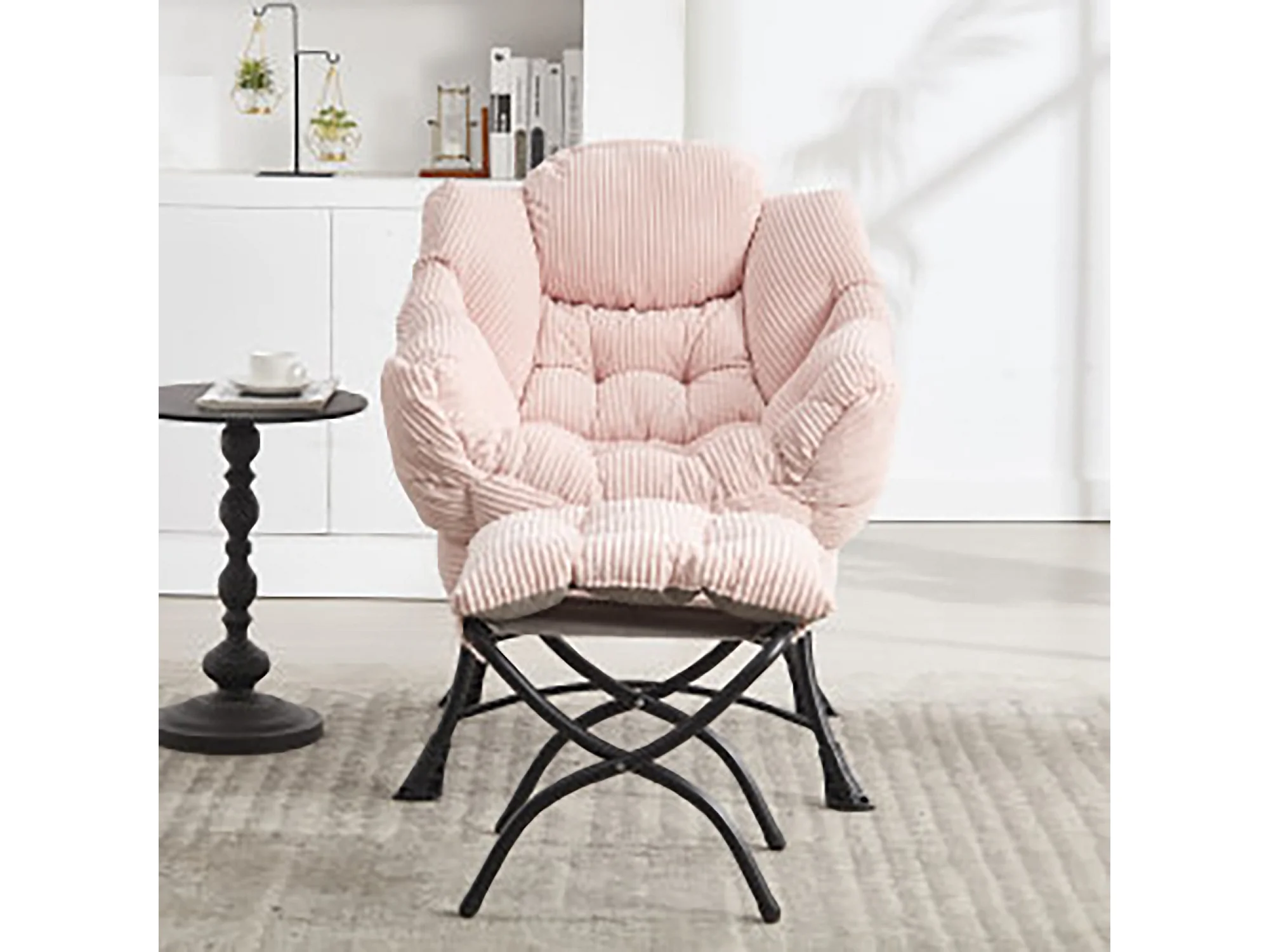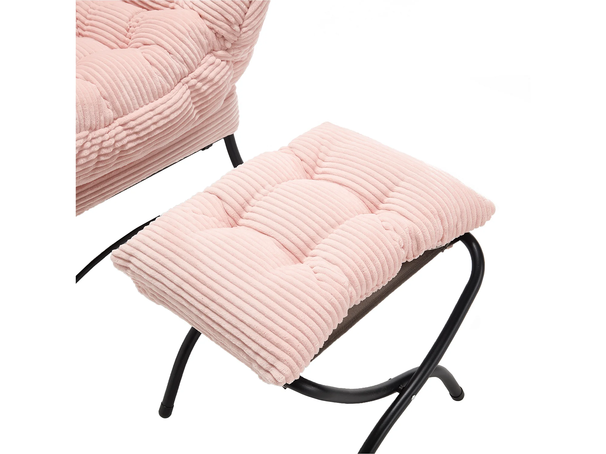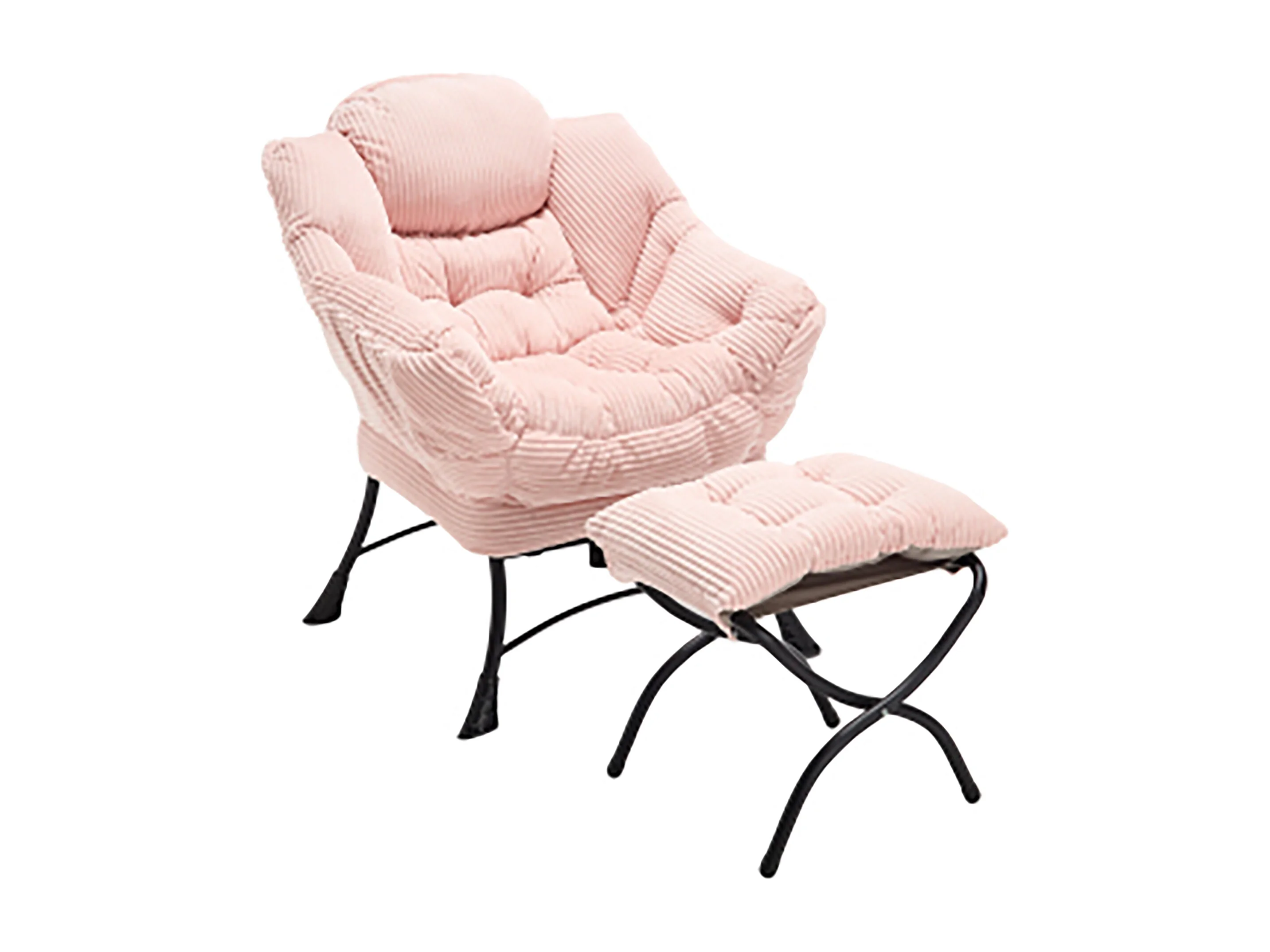 Canapé droit rose - Canapé 1 place avec poches latérales et repose-pieds - pour chambre et salon
