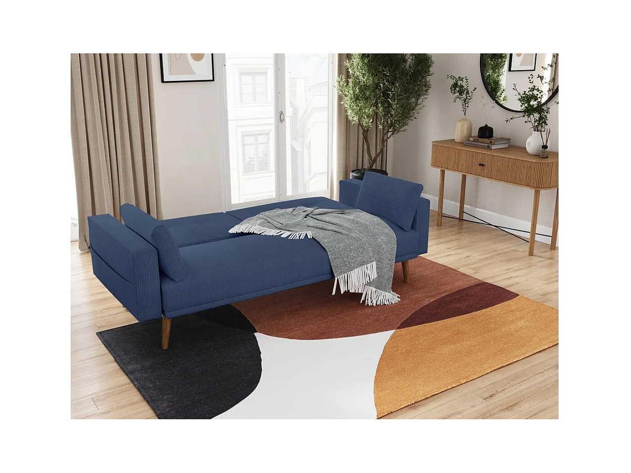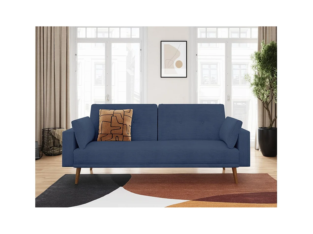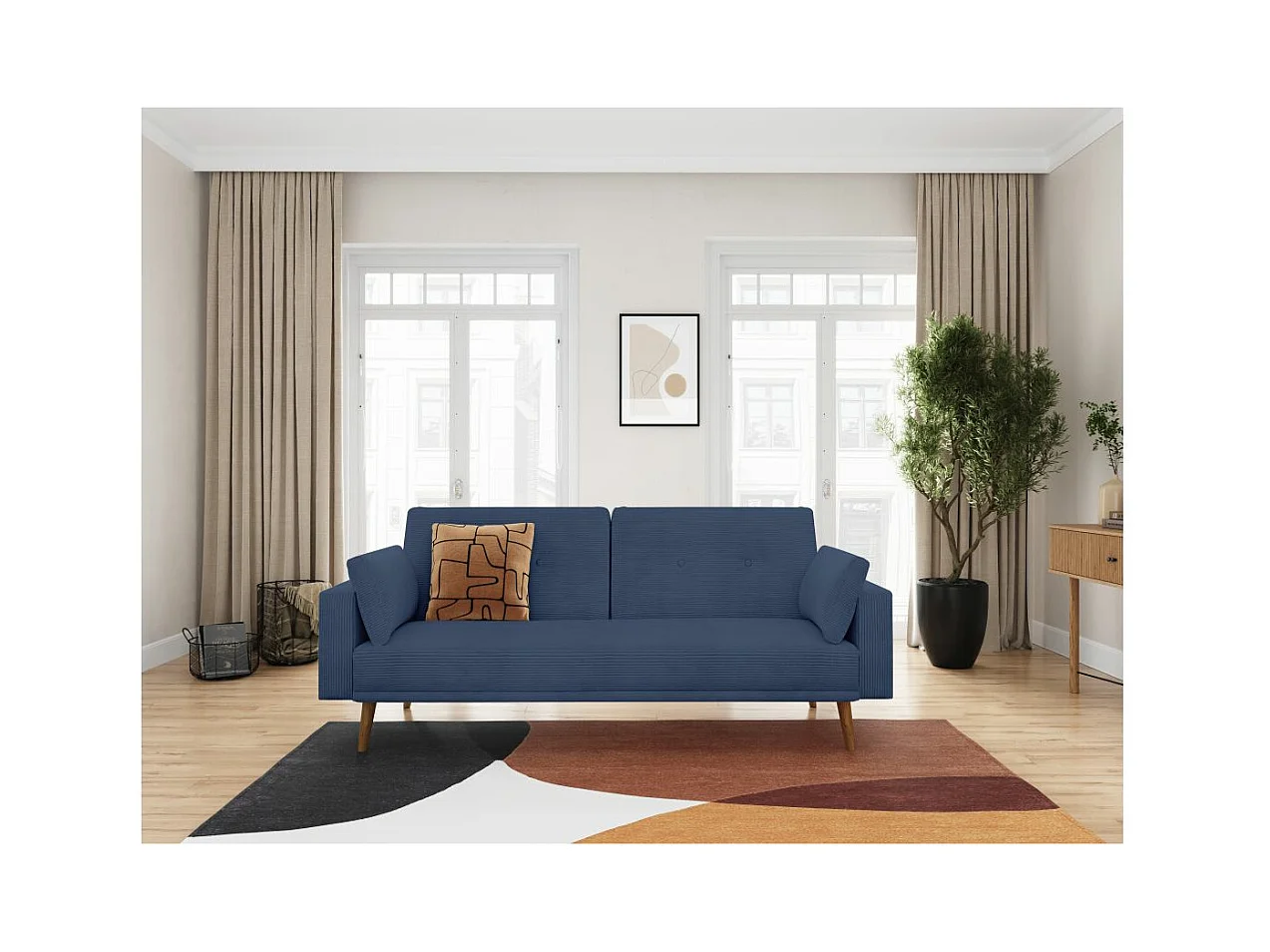 Canapé droit scandinave Elga convertible 3 places en velours côtelé - Bleu foncé - L205 x P85 x H87cm - Loungitude