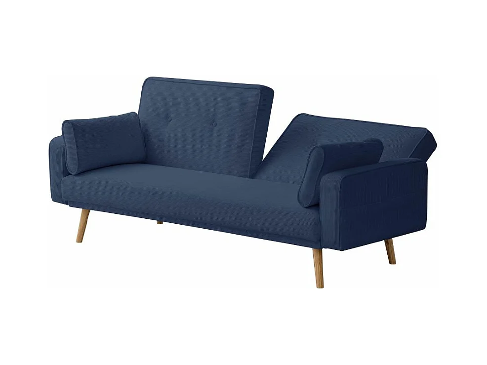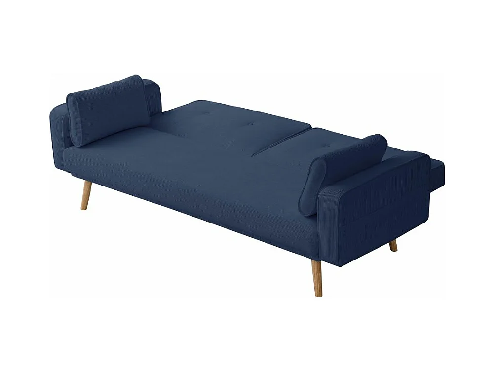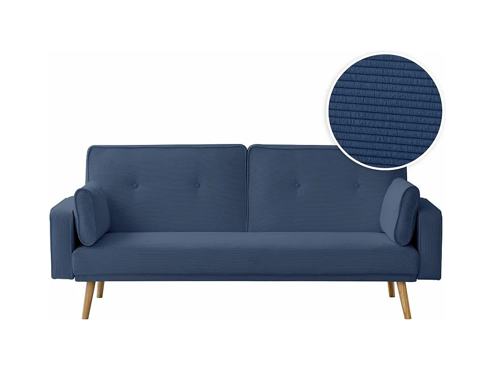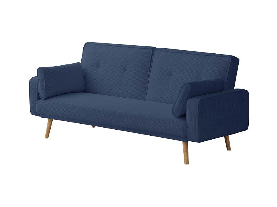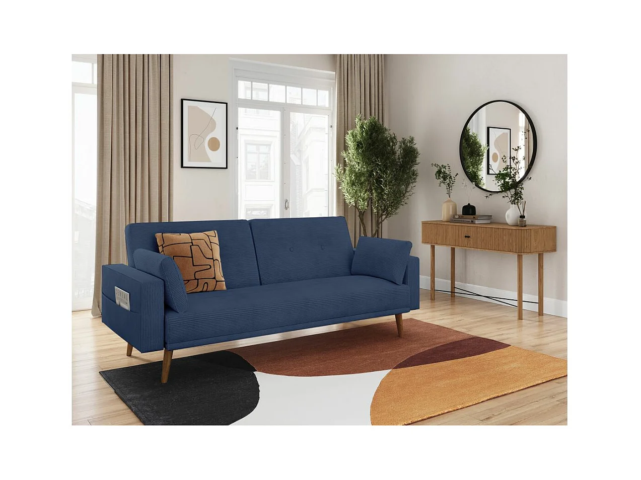 Canapé droit scandinave Elga convertible 3 places en velours côtelé - Bleu foncé - L205 x P85 x H87cm - Loungitude