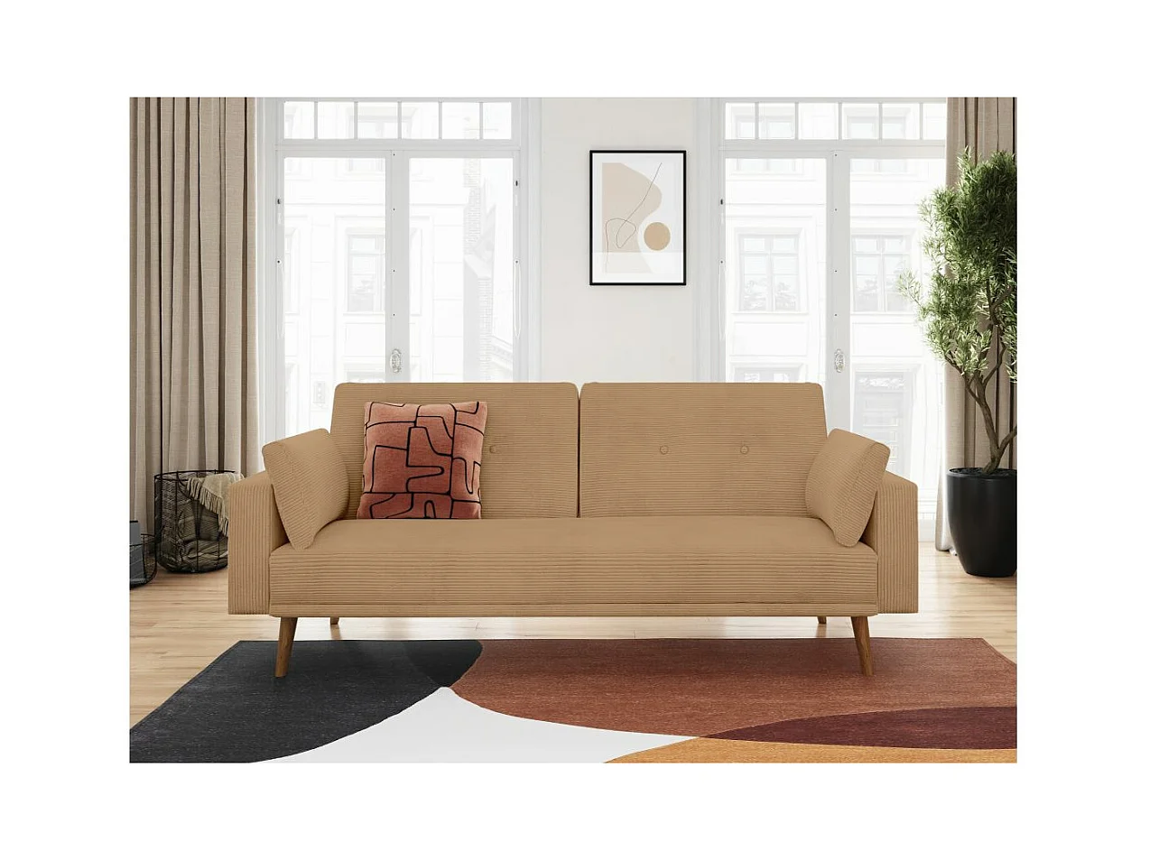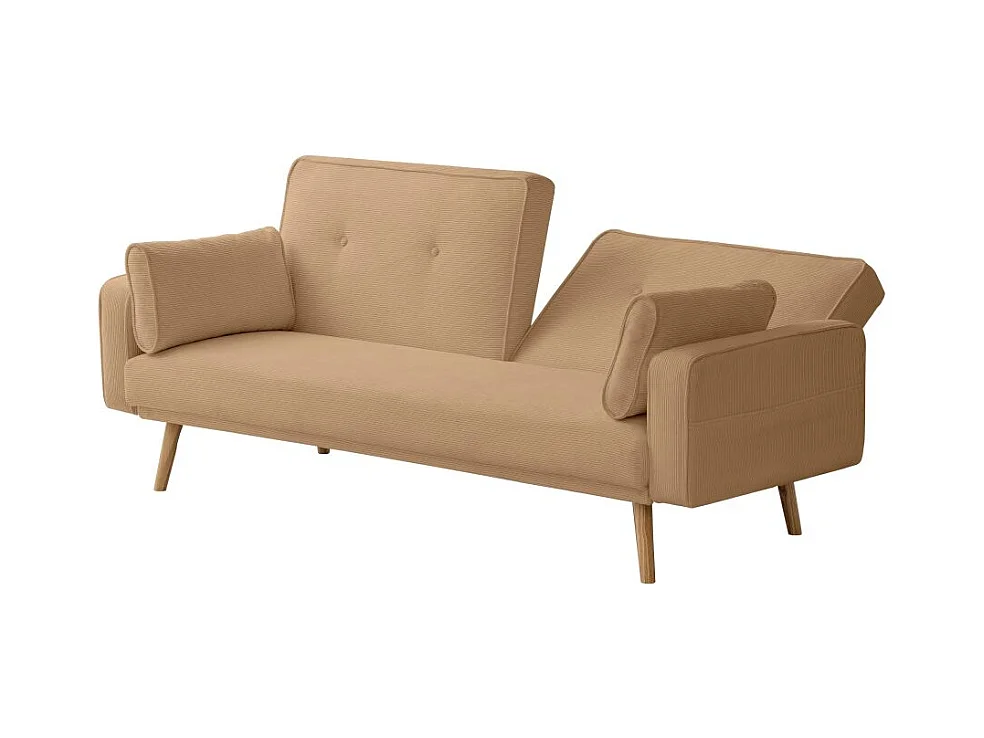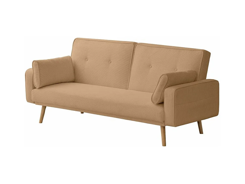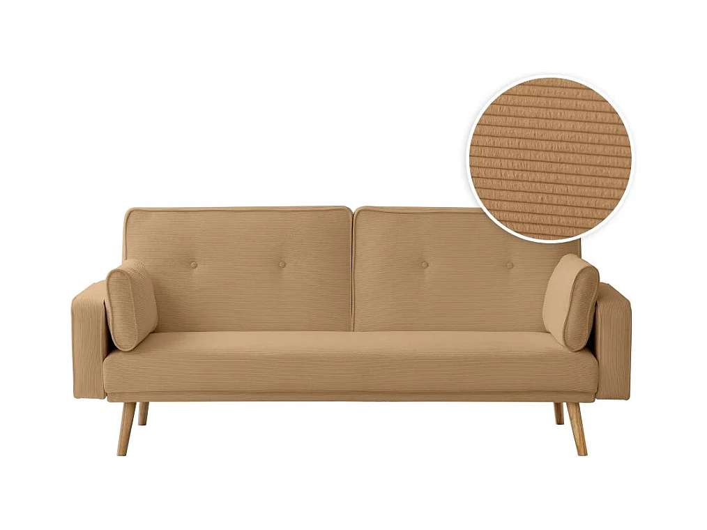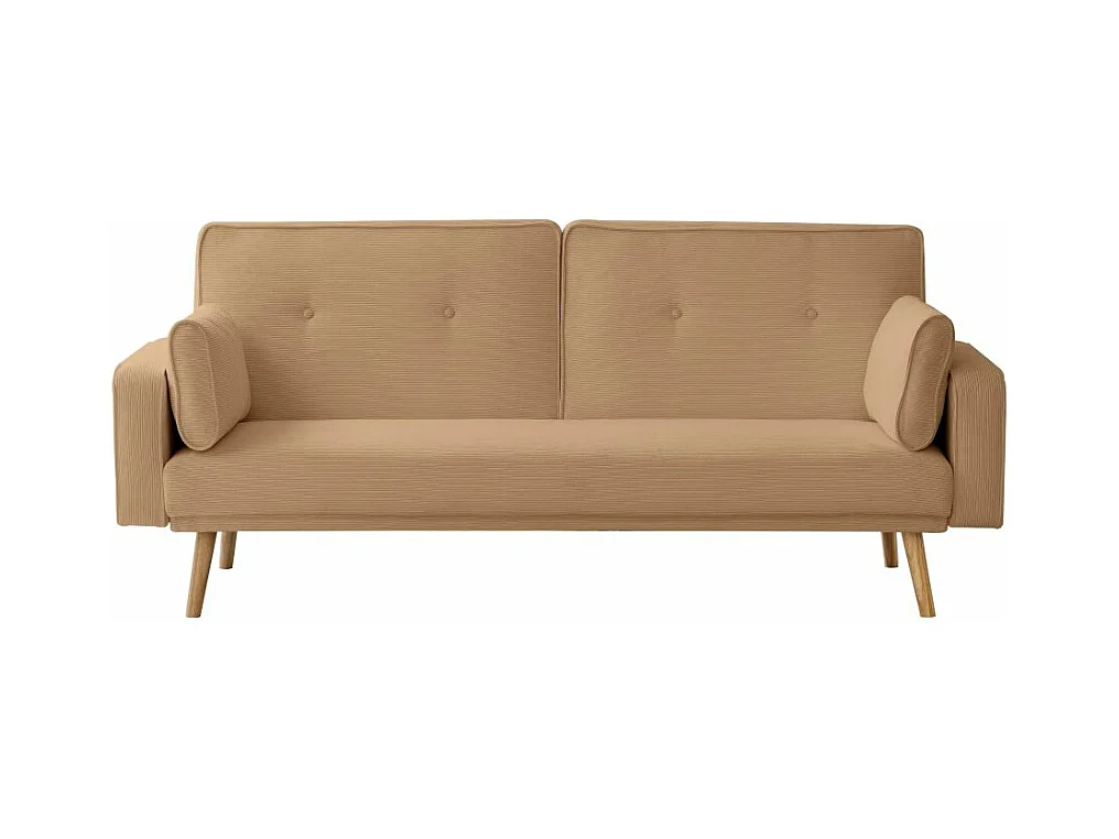 Canapé droit scandinave Elga convertible 3 places en velours côtelé - Taupe - L205 x P85 x H87cm - Loungitude