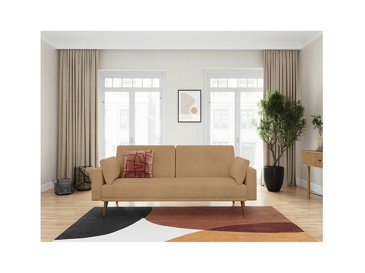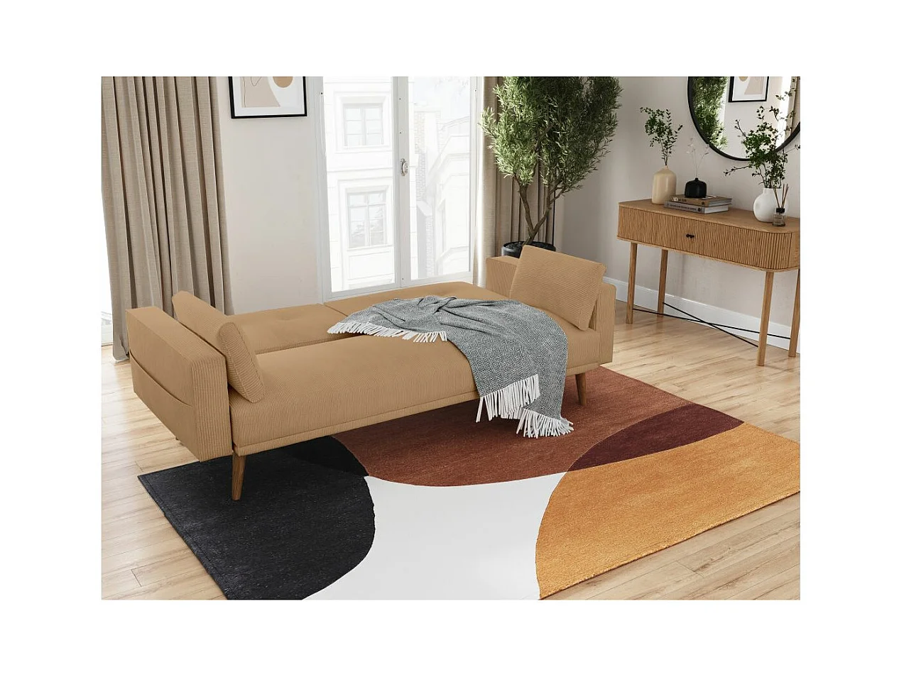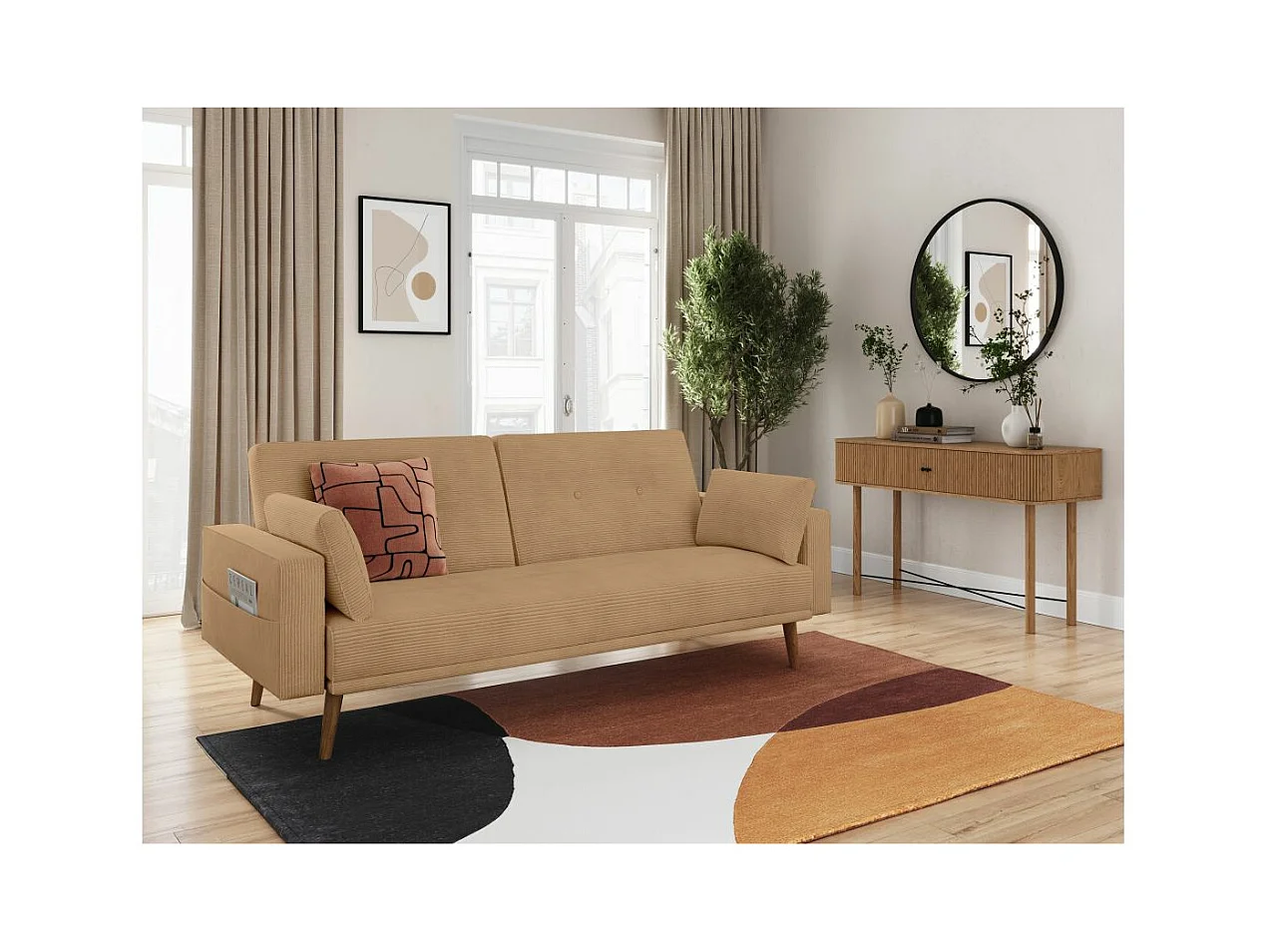 Canapé droit scandinave Elga convertible 3 places en velours côtelé - Taupe - L205 x P85 x H87cm - Loungitude