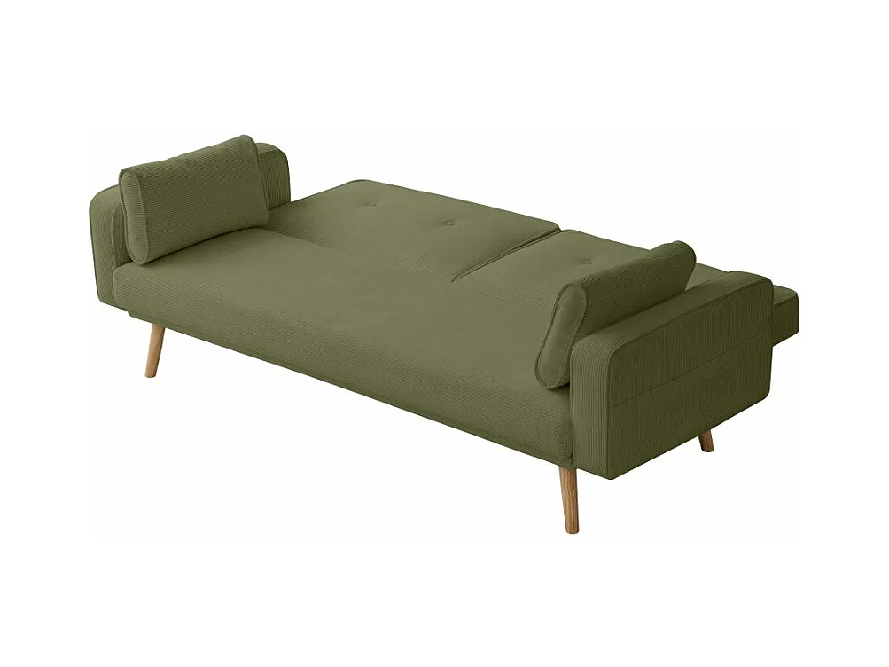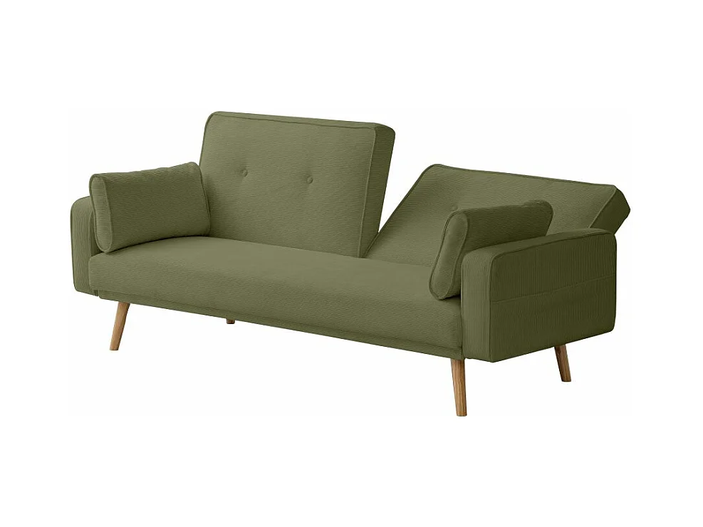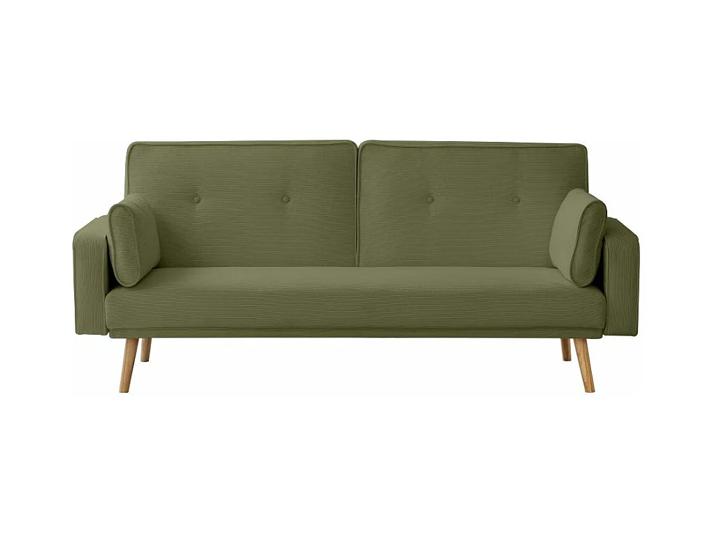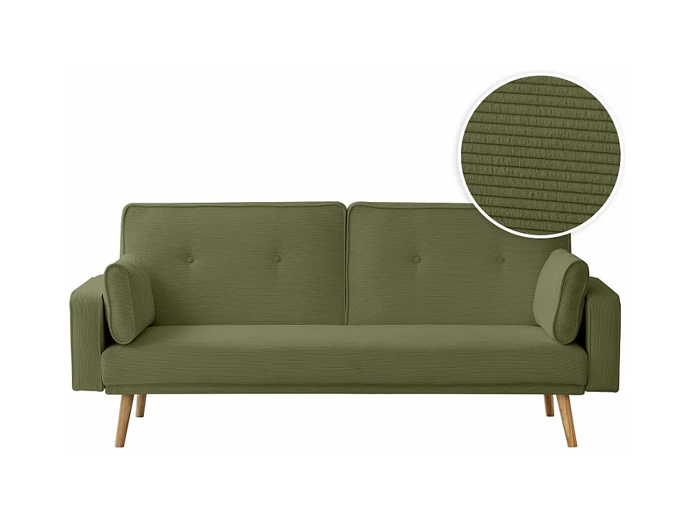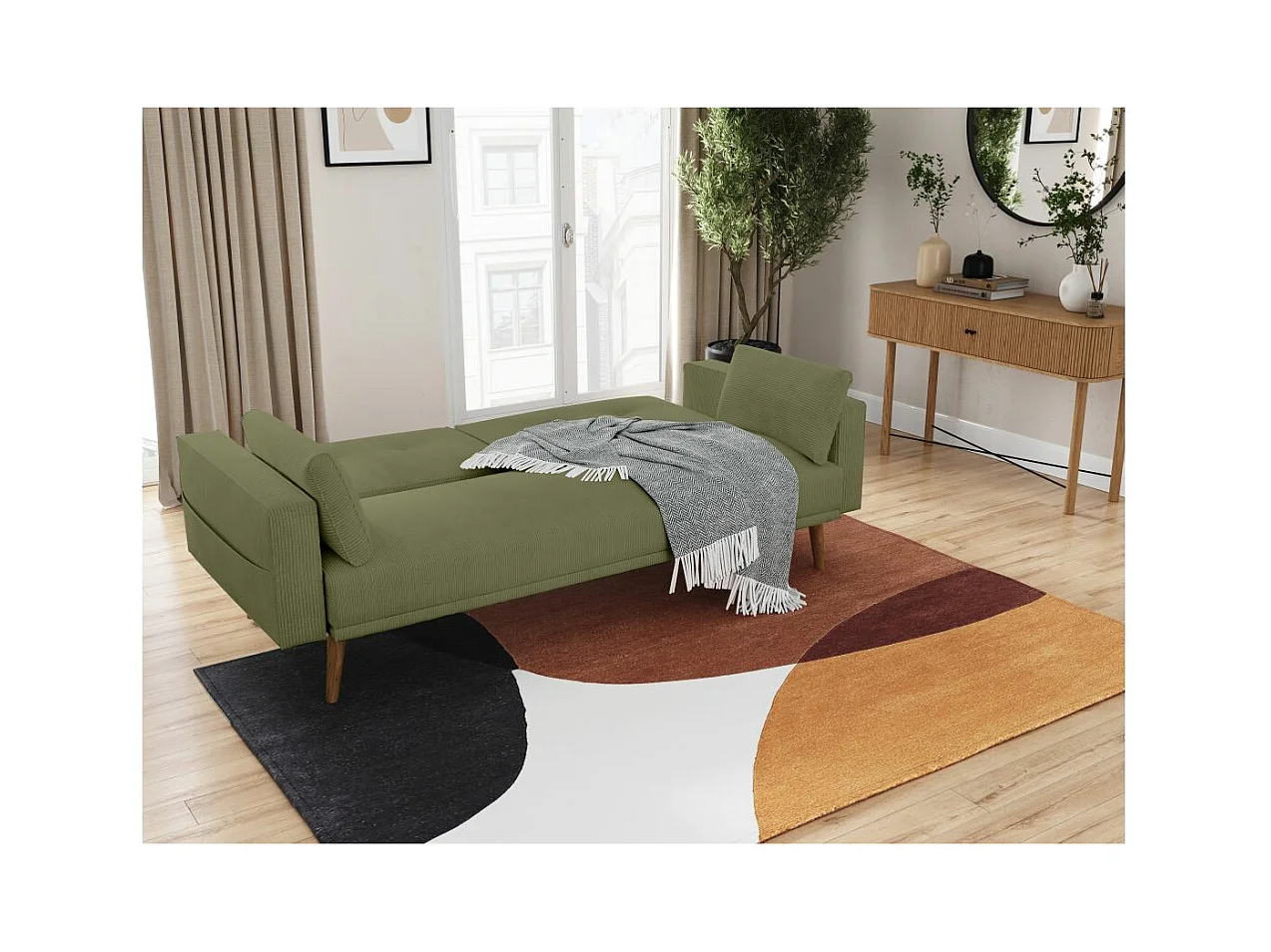 Canapé droit scandinave Elga convertible 3 places en velours côtelé - Vert foncé - L205 x P85 x H87cm - Loungitude