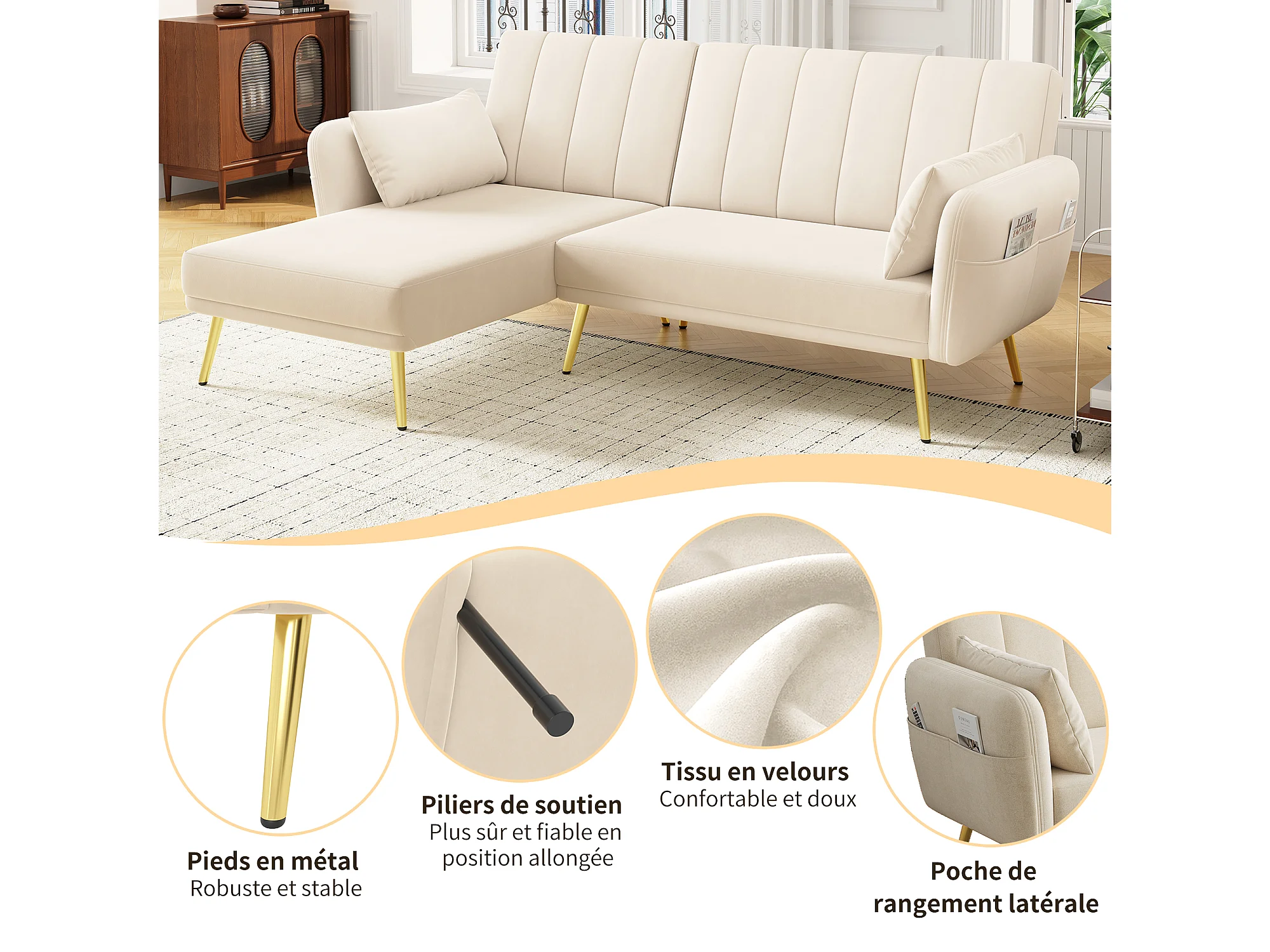 Canapé en L pliant avec angle et couchage supplémentaires. Moderne et escamotable. Idéal pour salon, chambre, chambre d'amis et home cinéma. Vidéo incluse.