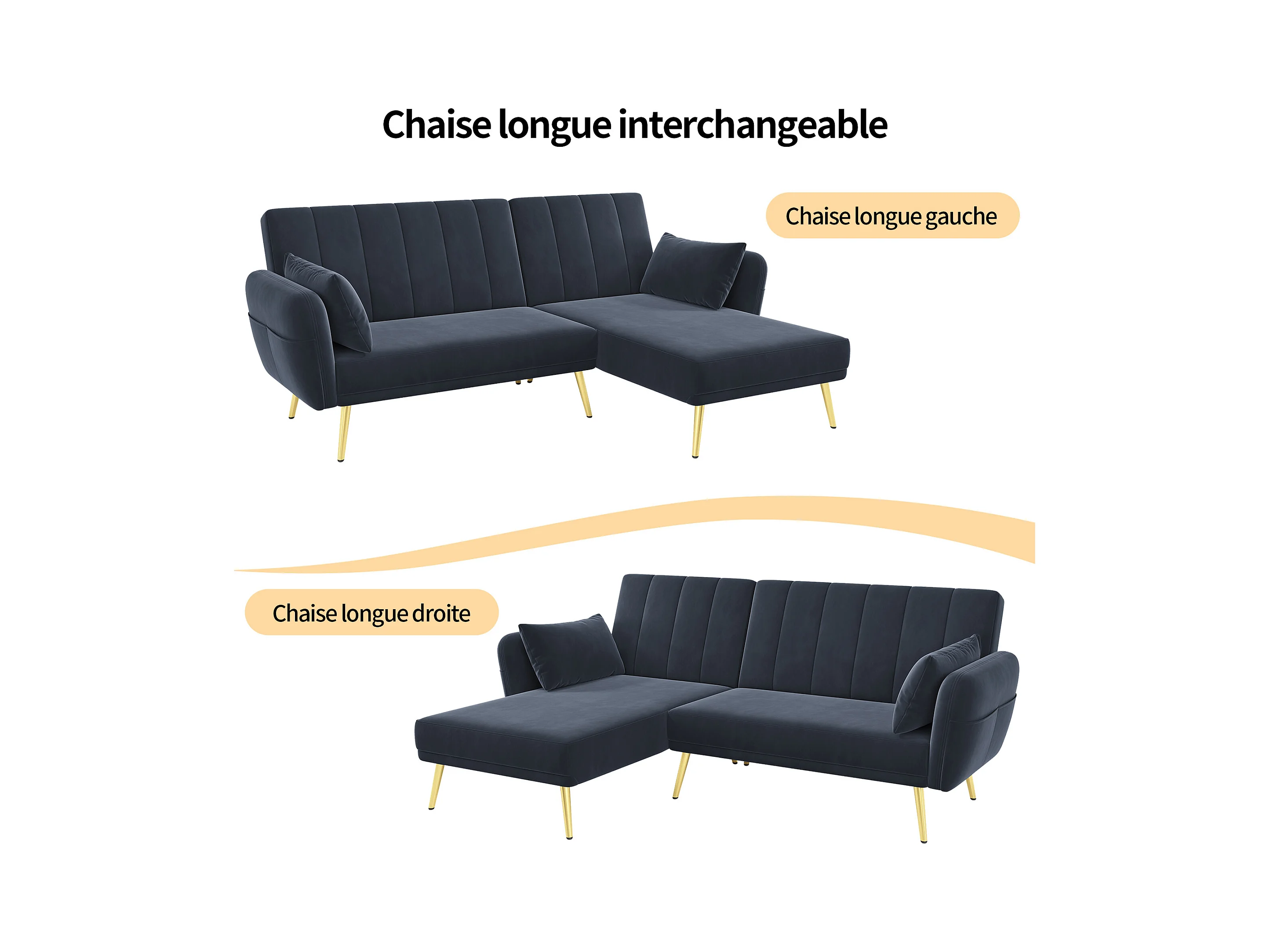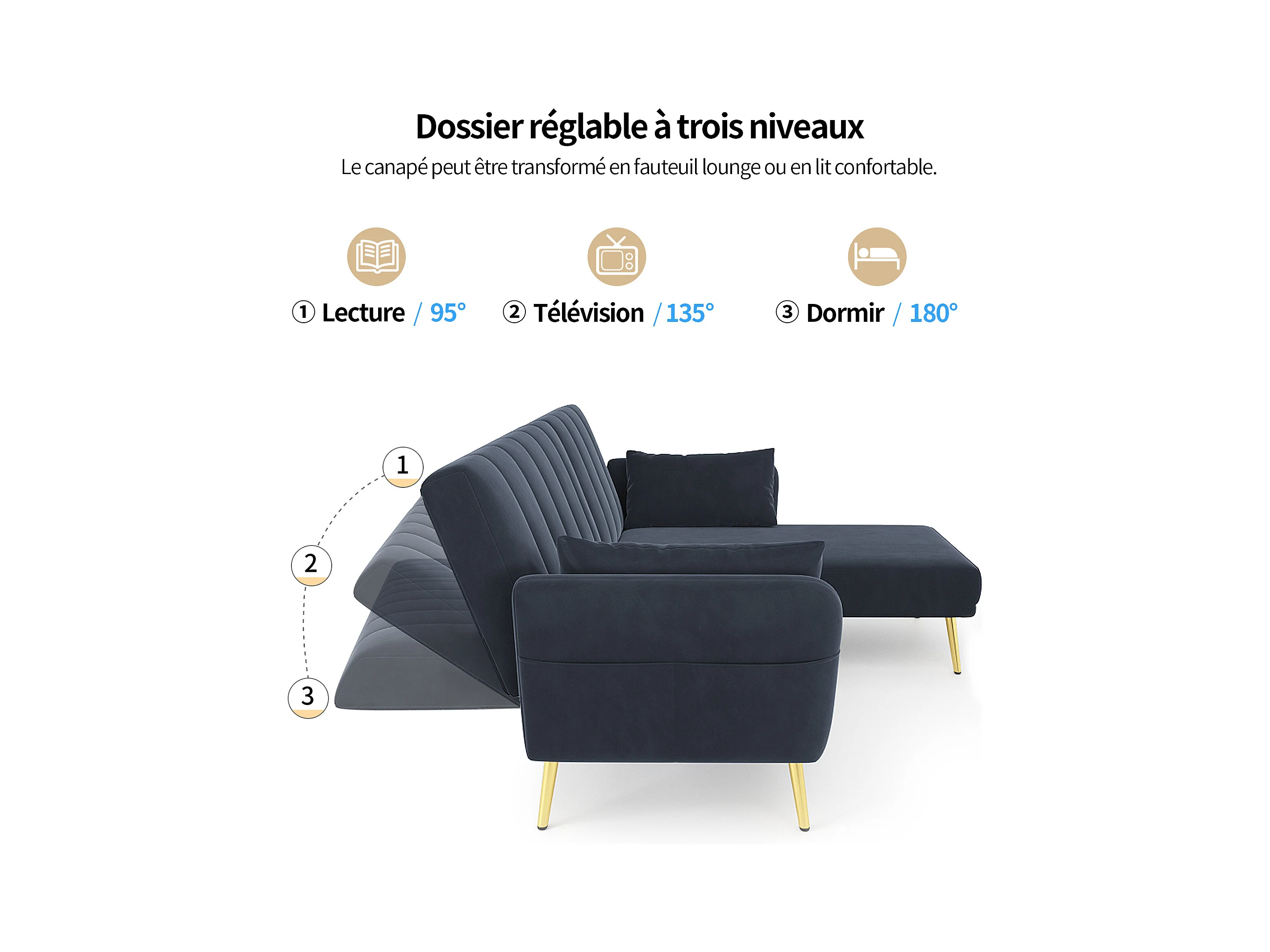 Canapé en L pliant avec fonction couchage et angle supplémentaire. Gain de place pour salon, chambre, chambre d'amis et home cinéma. Vidéo incluse.