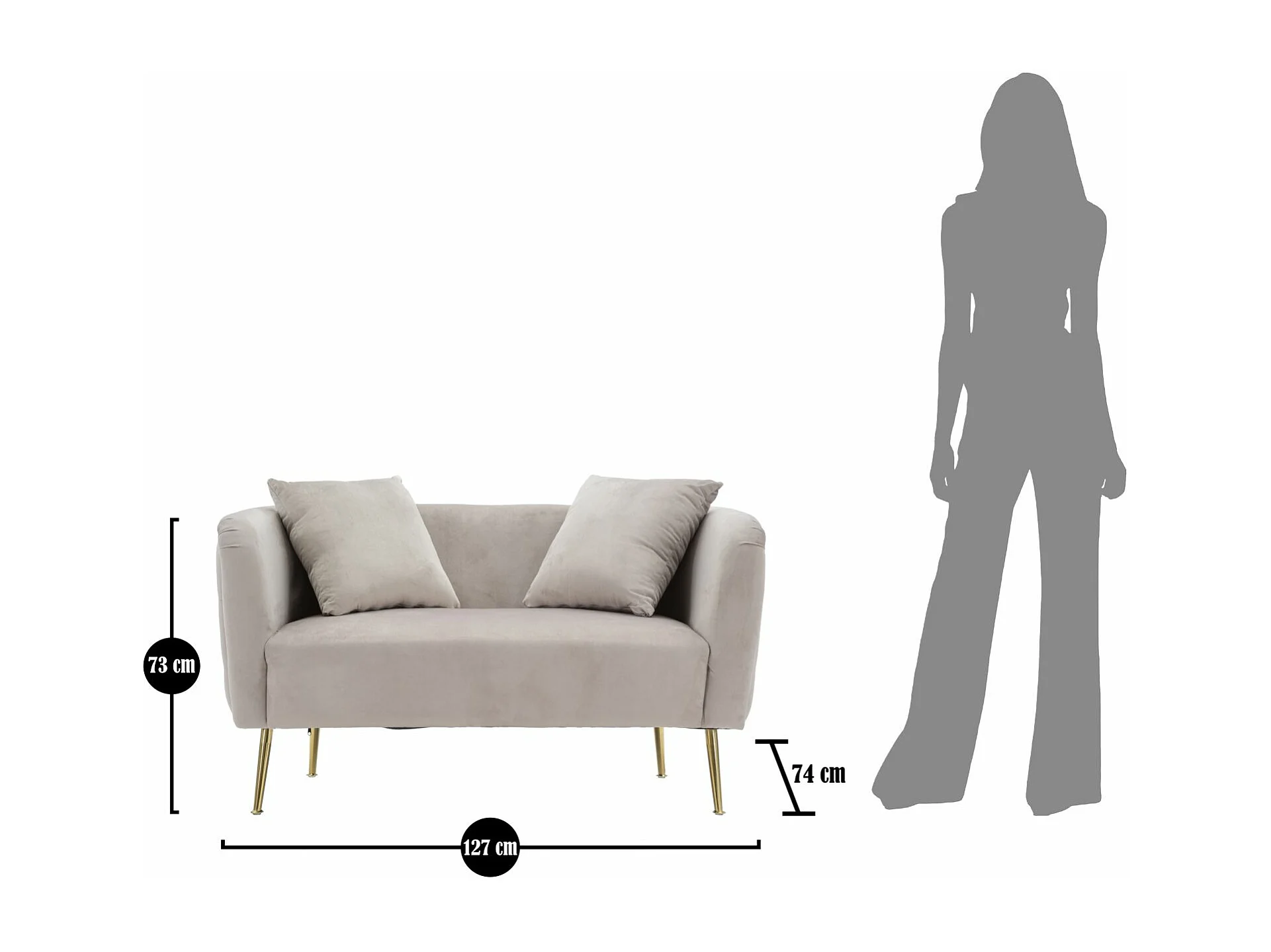 Canapé en tissu gris avec pieds dorés cm 127x74x71