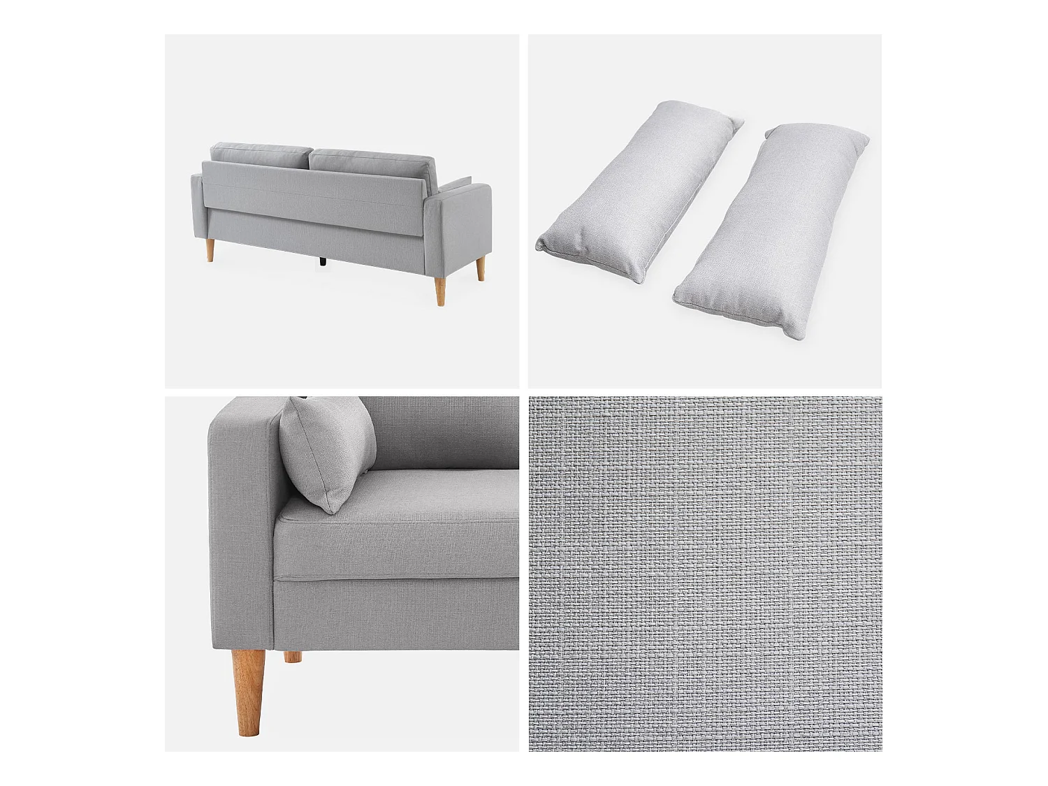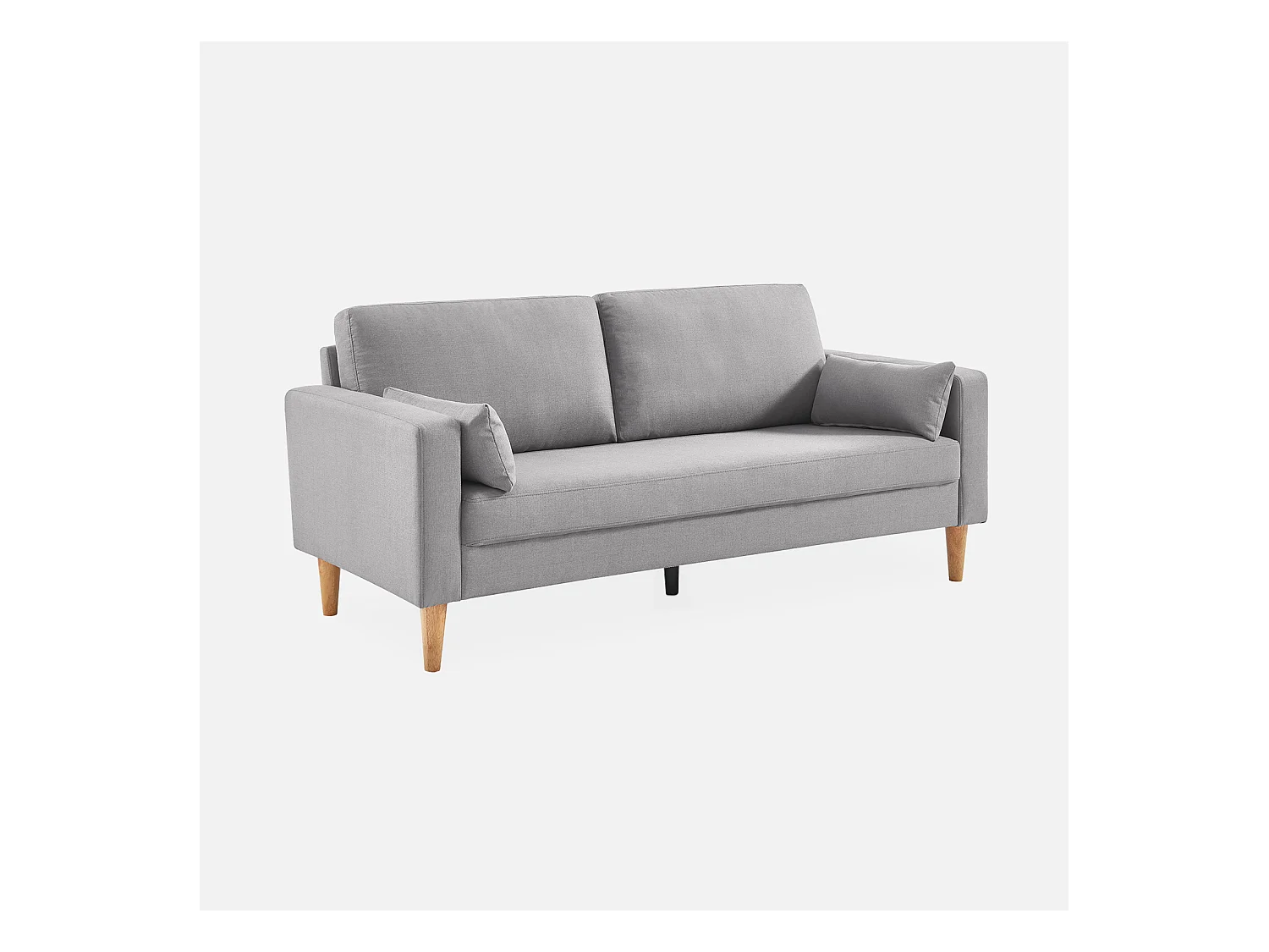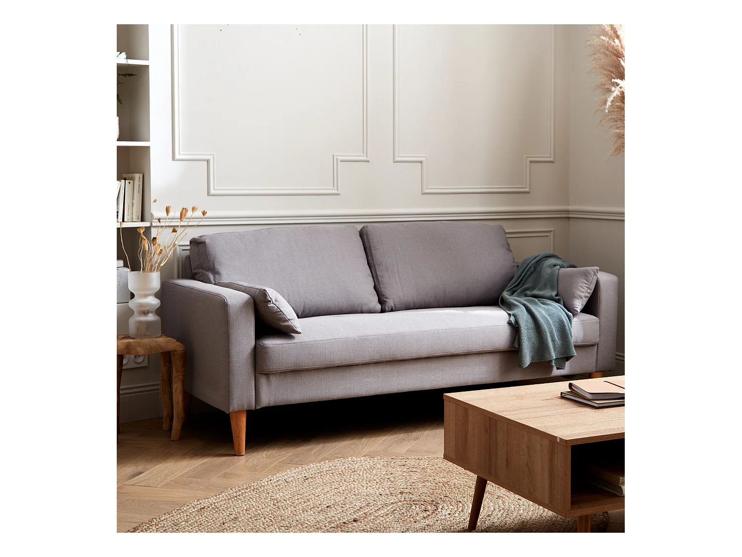 Canapé en tissu gris clair - Bjorn - Canapé 3 places fixe droit pieds bois. style scandinave