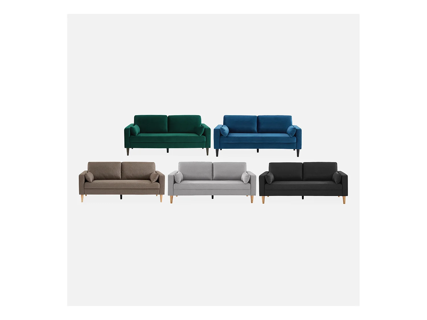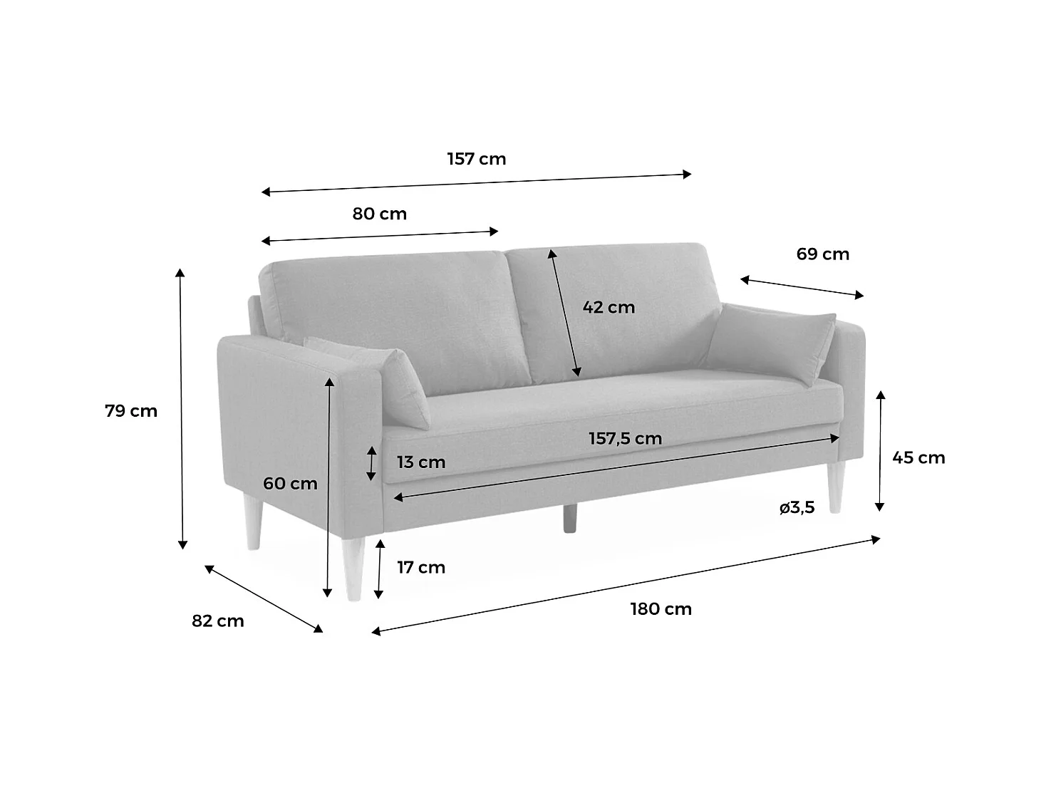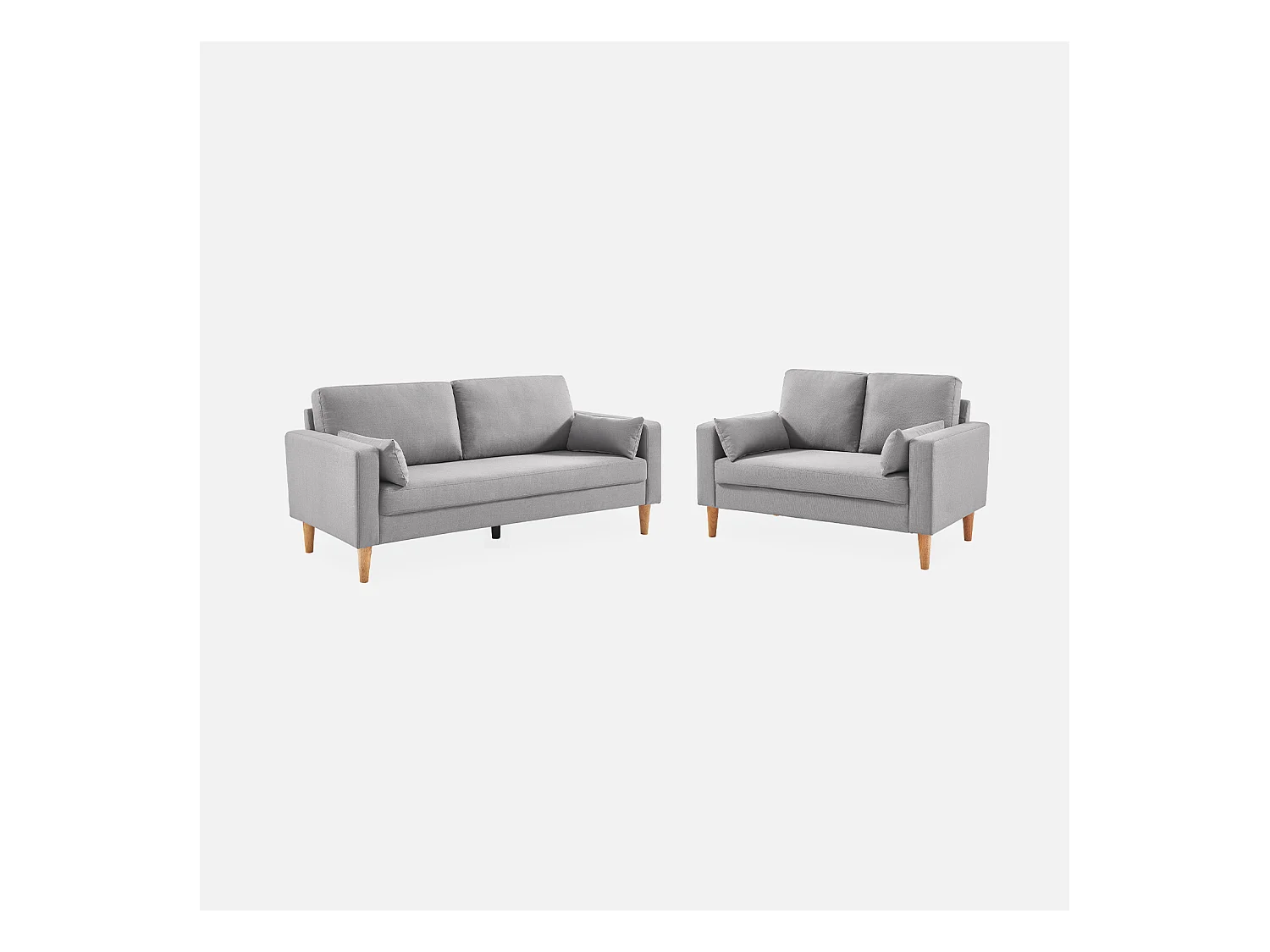 Canapé en tissu gris clair - Bjorn - Canapé 3 places fixe droit pieds bois. style scandinave