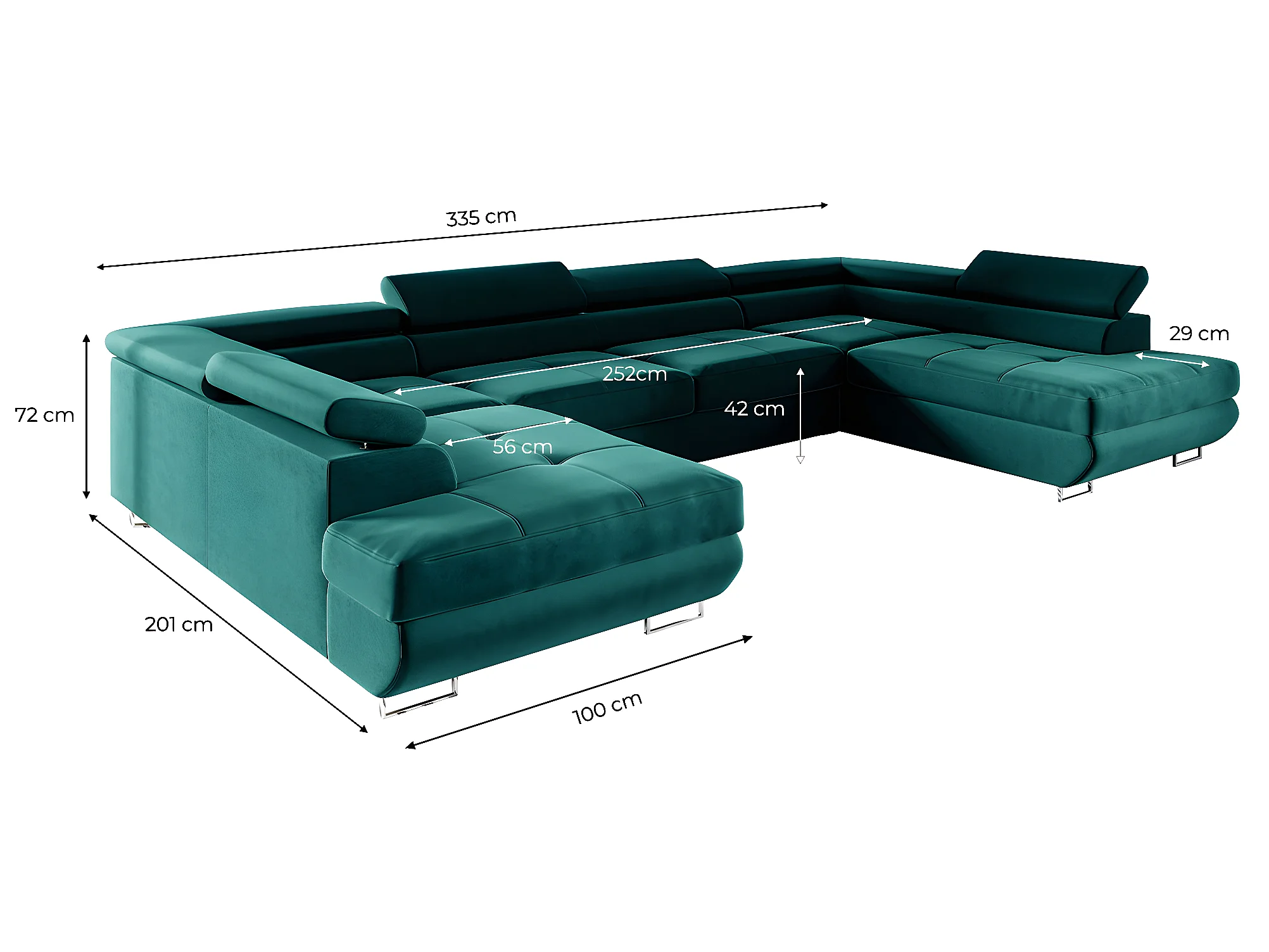 Canapé en U 5 places convertible avec coffre Wilson Vert sapin