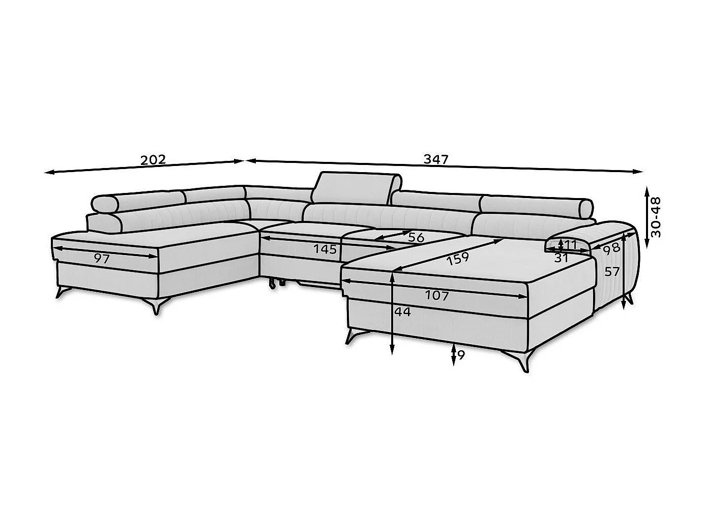 Canapé en U convertible KALANTE tissu - Coffre de rangement et appuie-têtes réglables-Gris clair-Coffre à droite