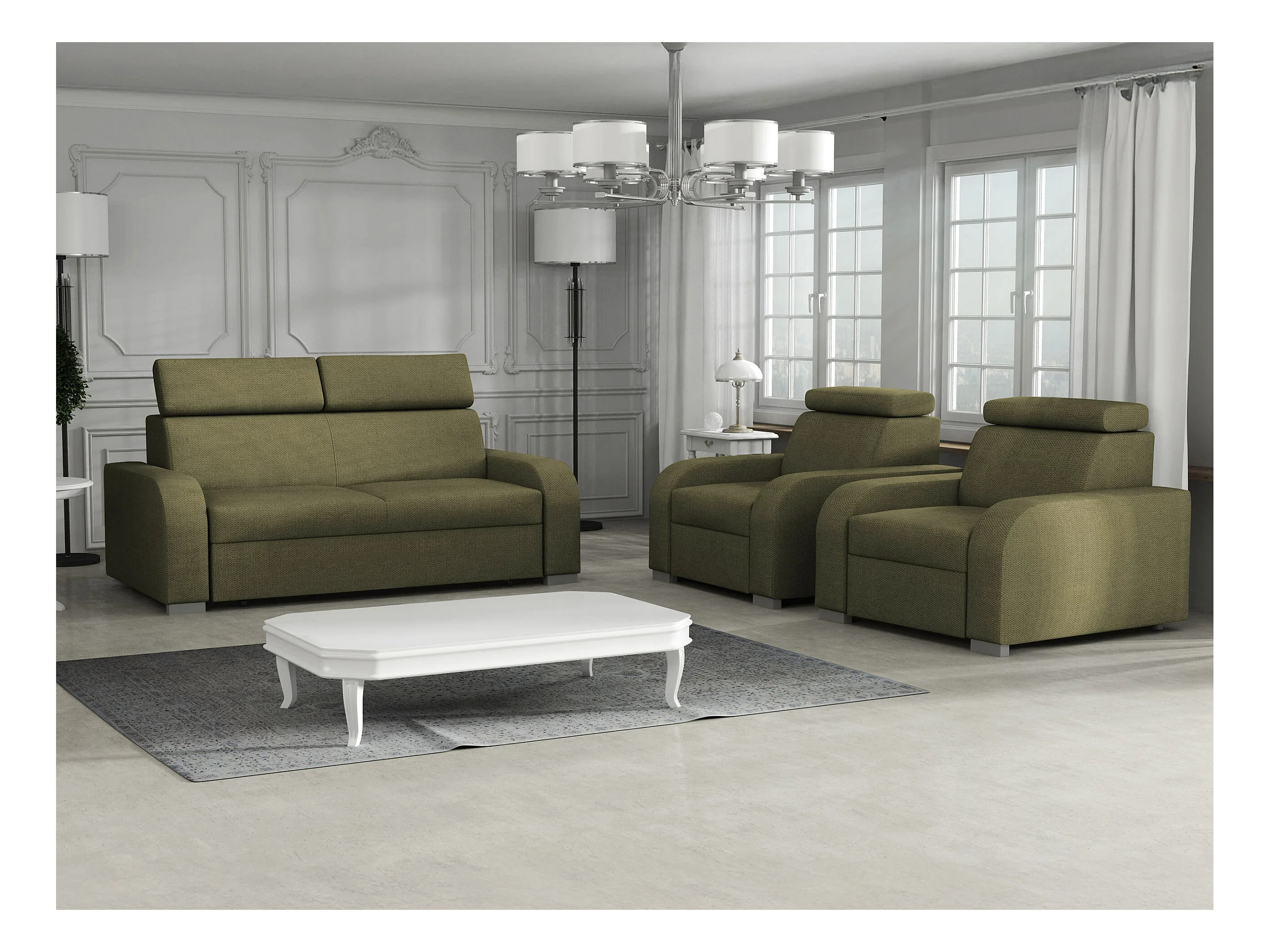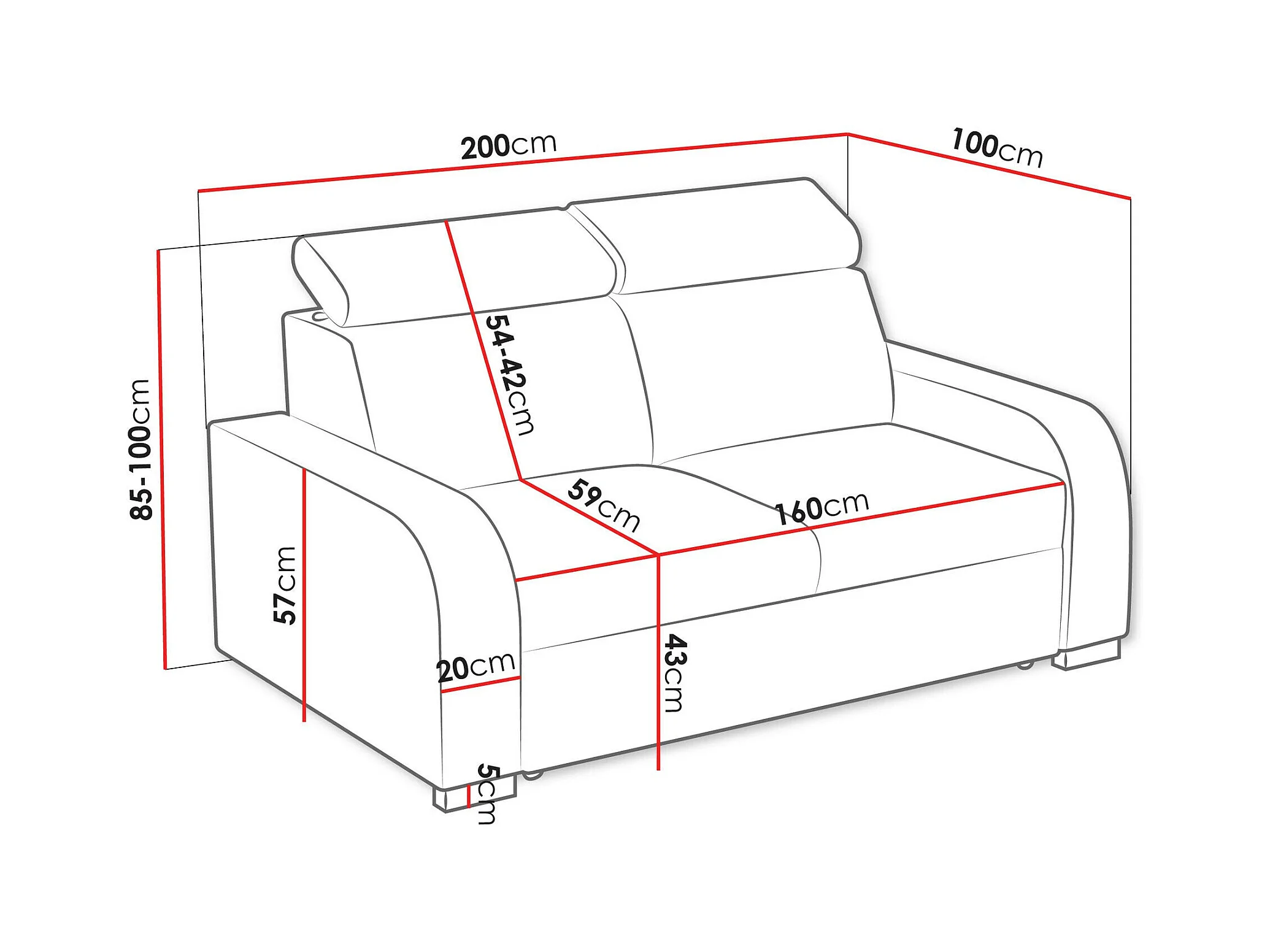 Canapé Etrcala 102, Vert, 200x100x85cm, Tapisserie, Pieds: Plastique|Bois