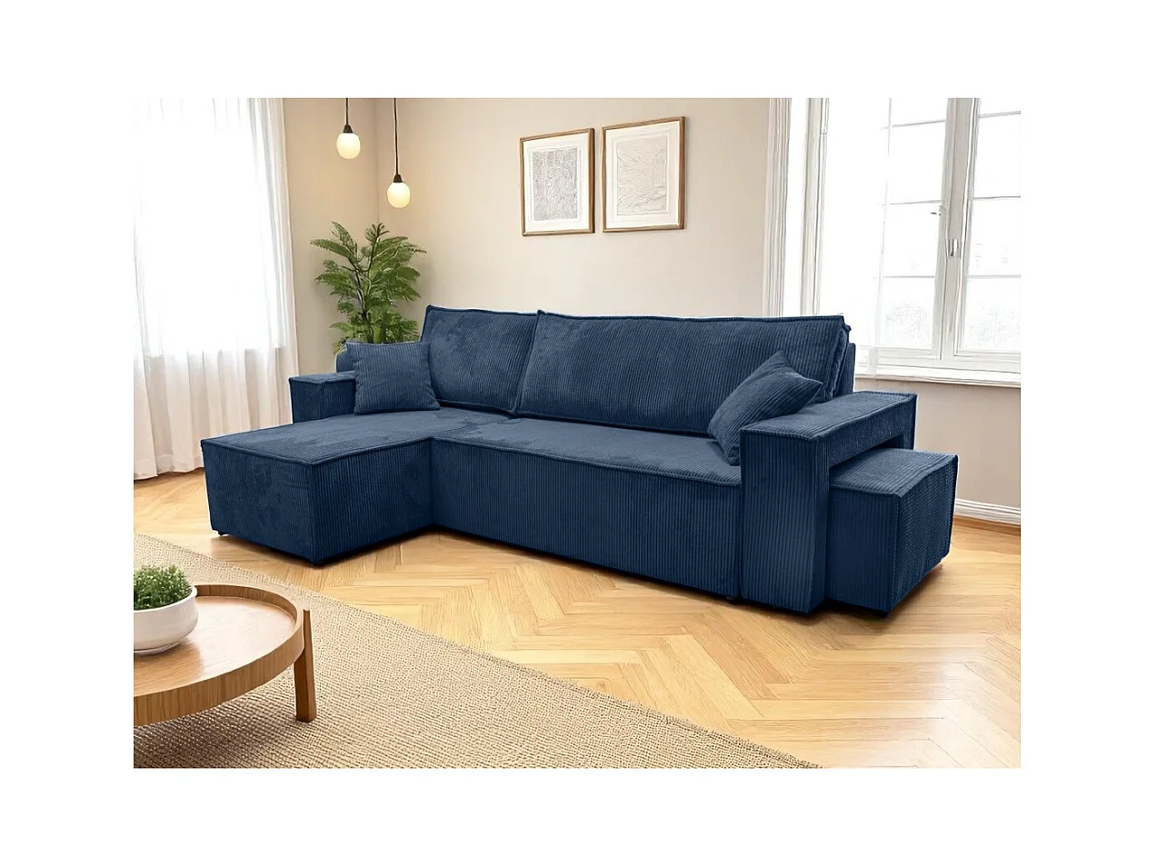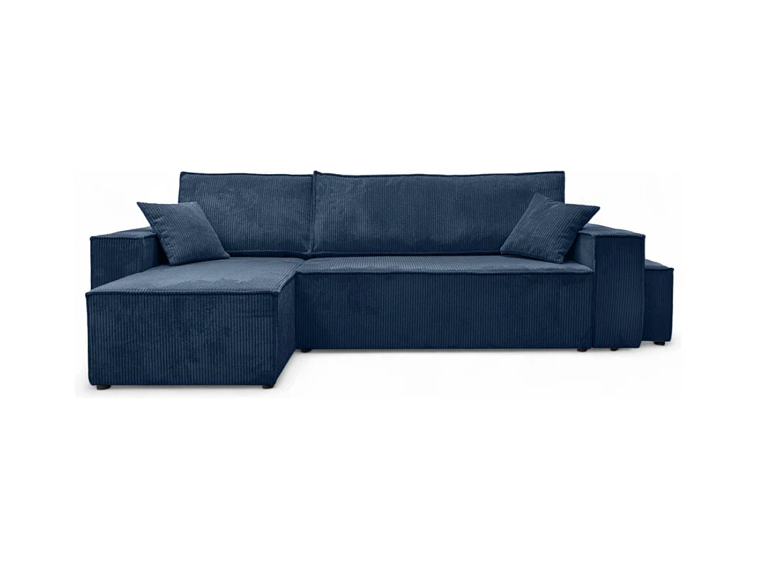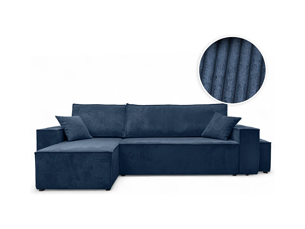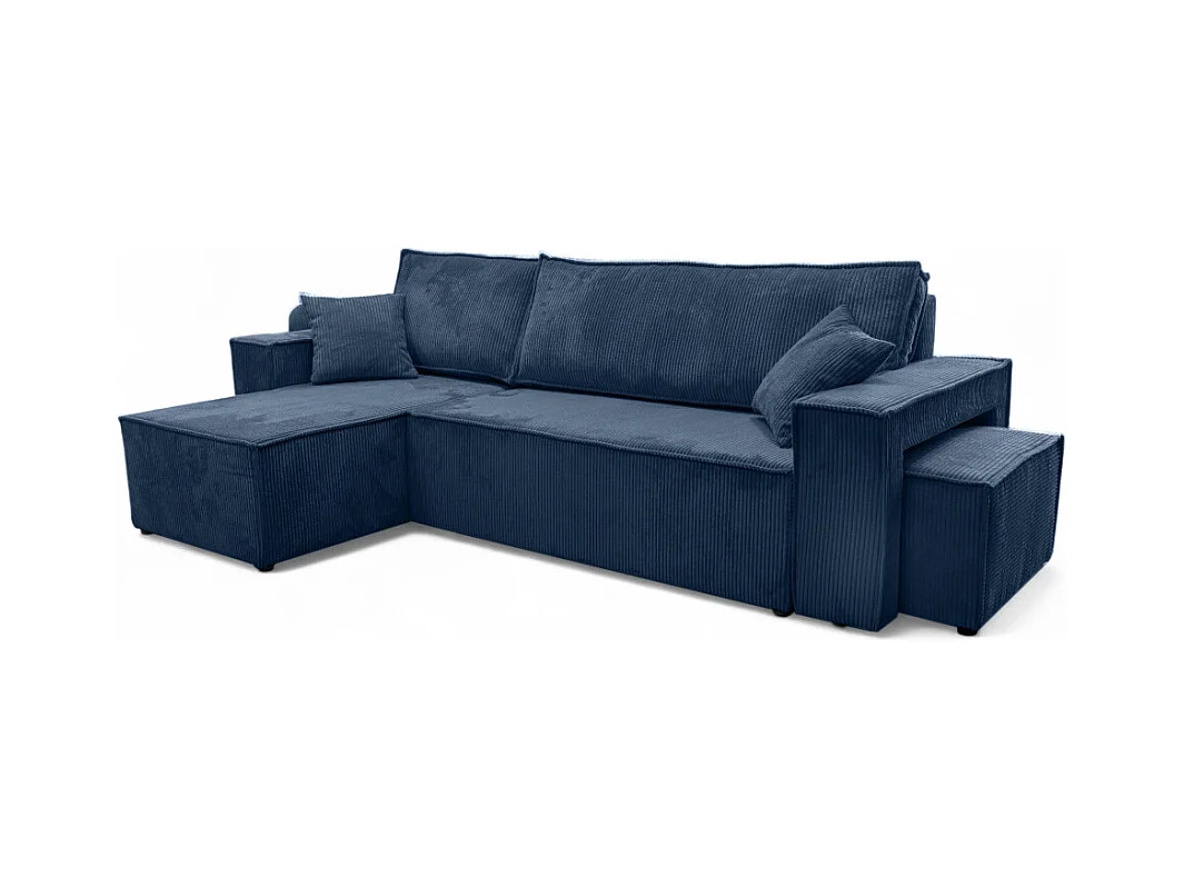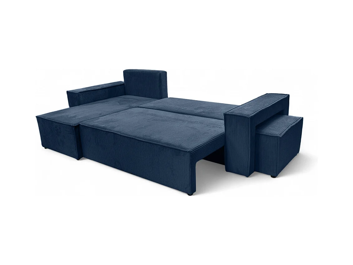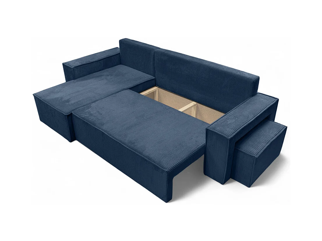 Canapé FARAH d'angle réversible et convertible 4 places avec un pouf en velours côtelé - Bleu foncé