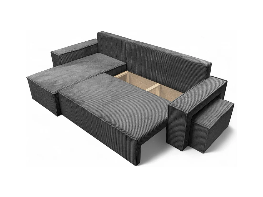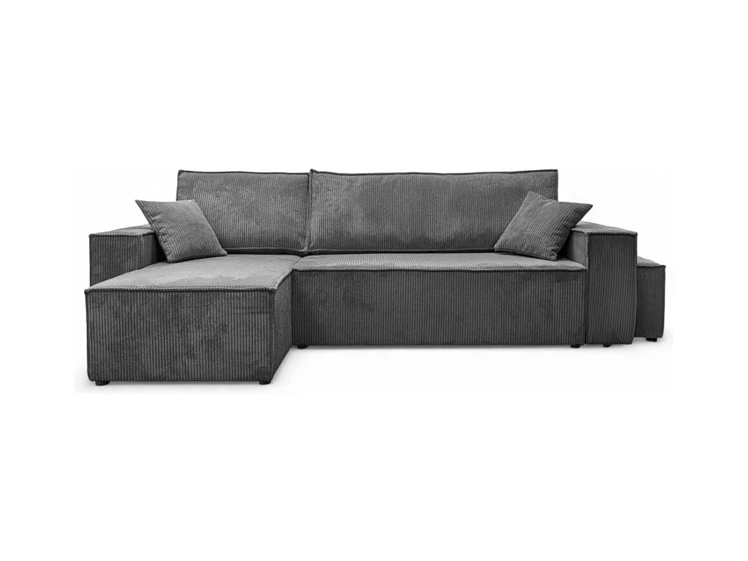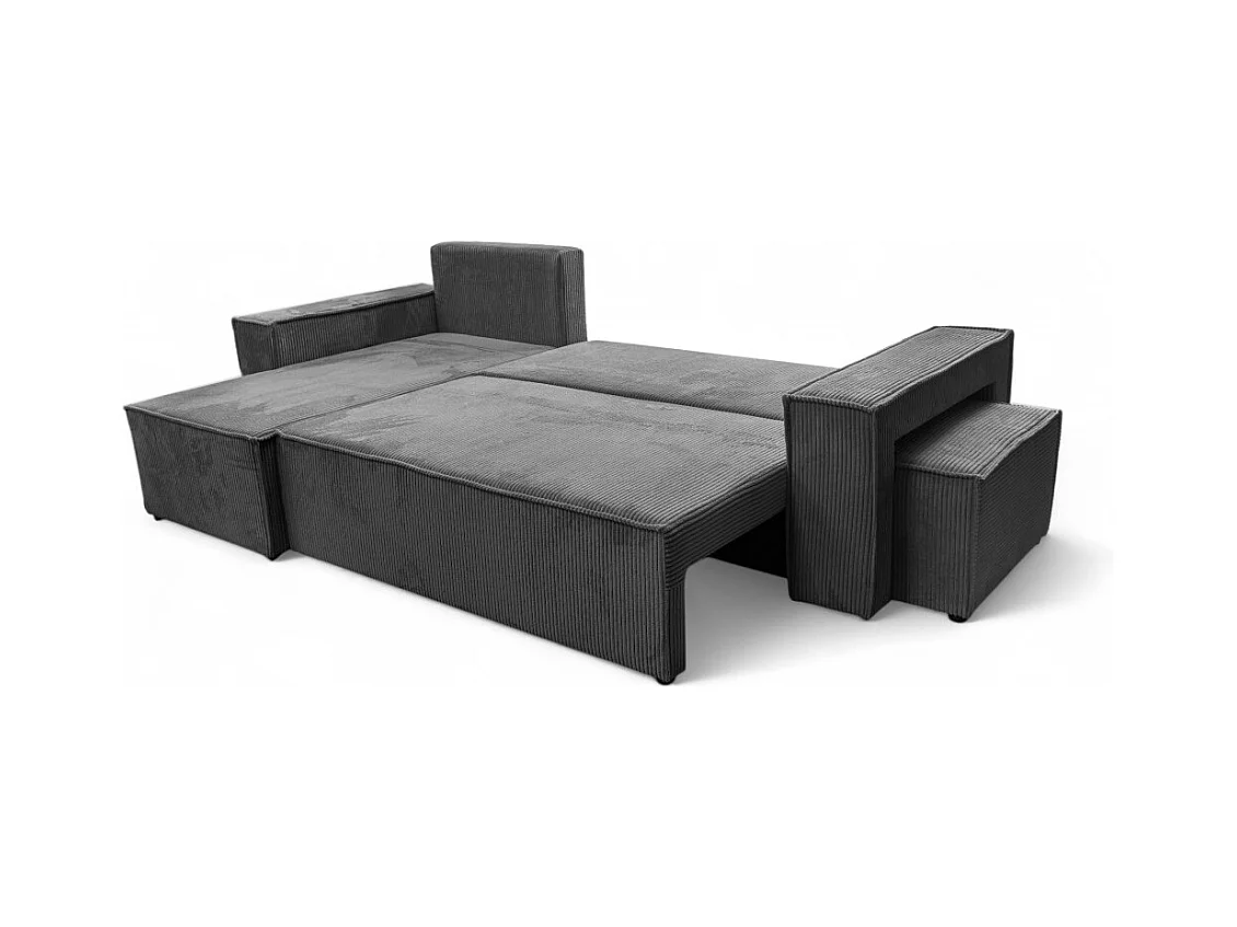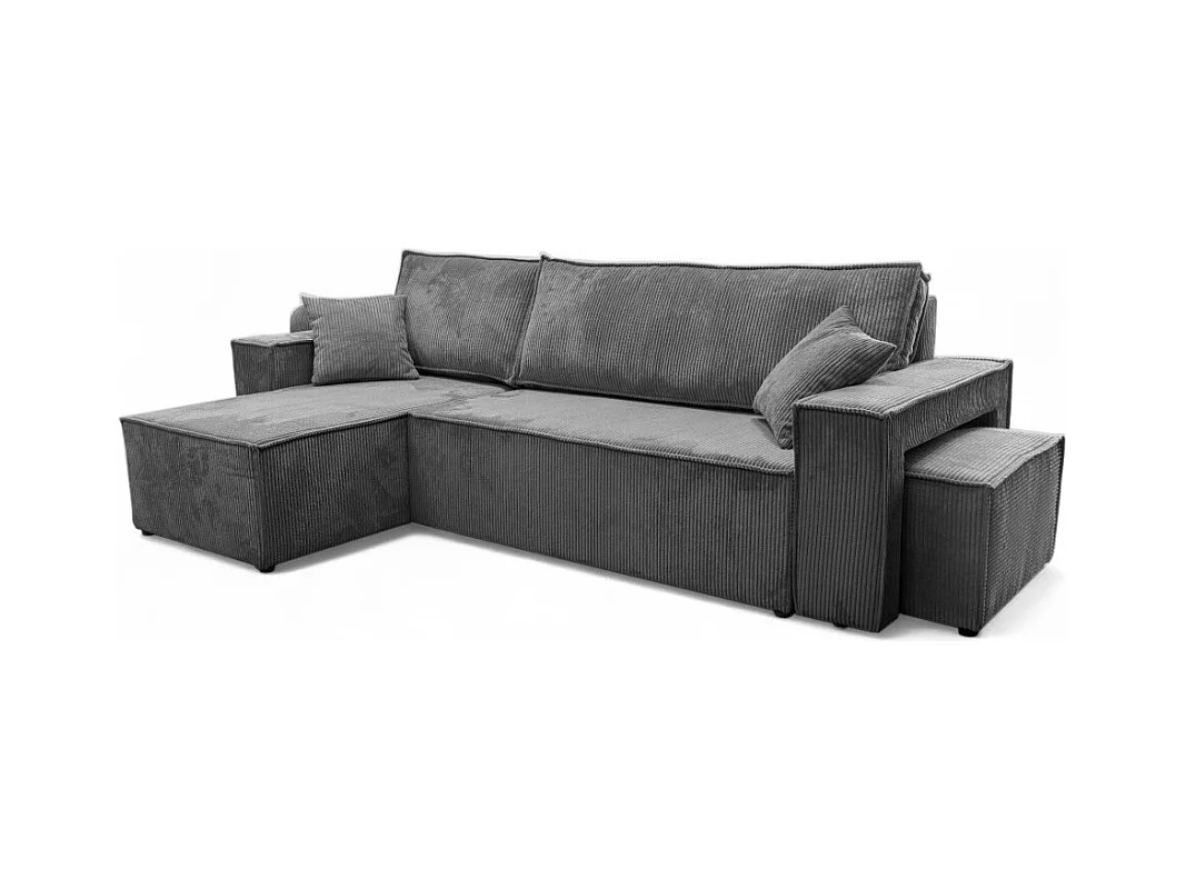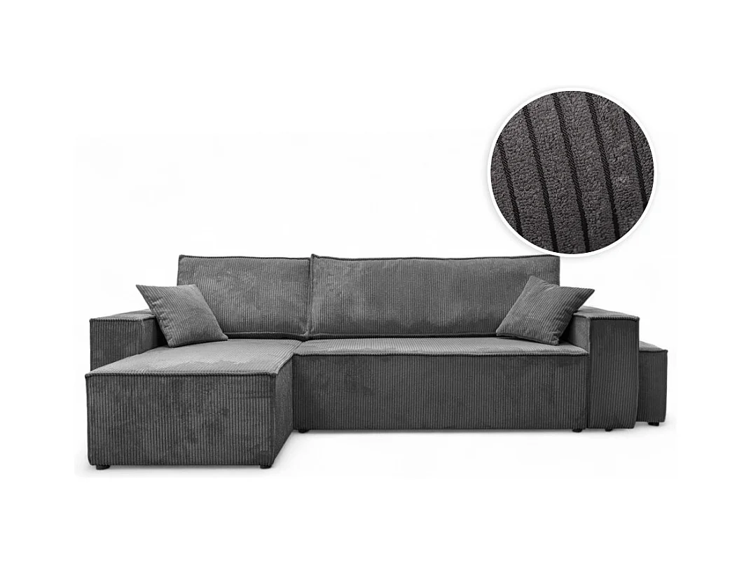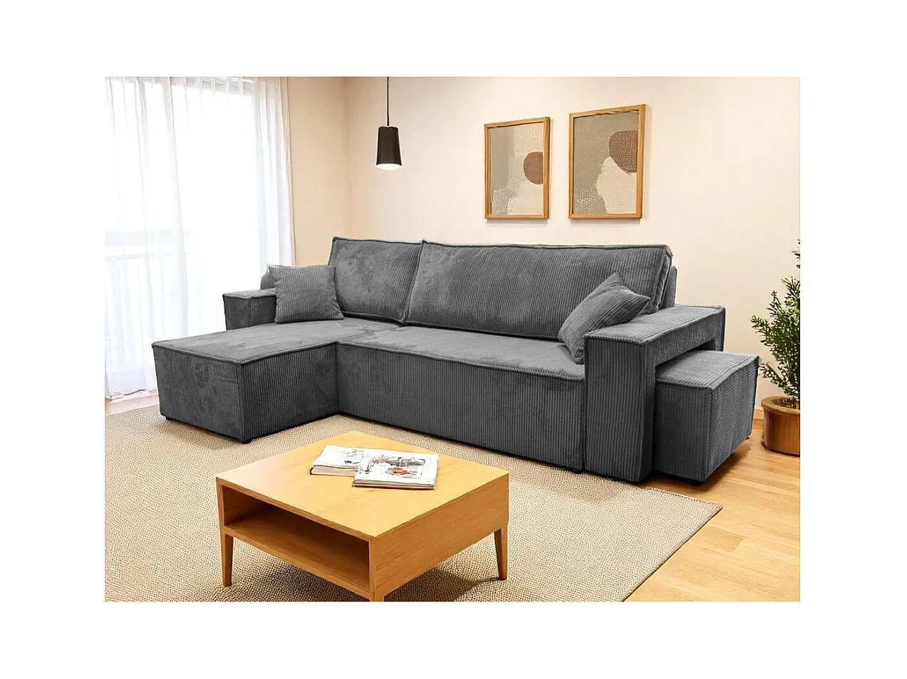 Canapé FARAH d'angle réversible et convertible 4 places avec un pouf en velours côtelé - Gris