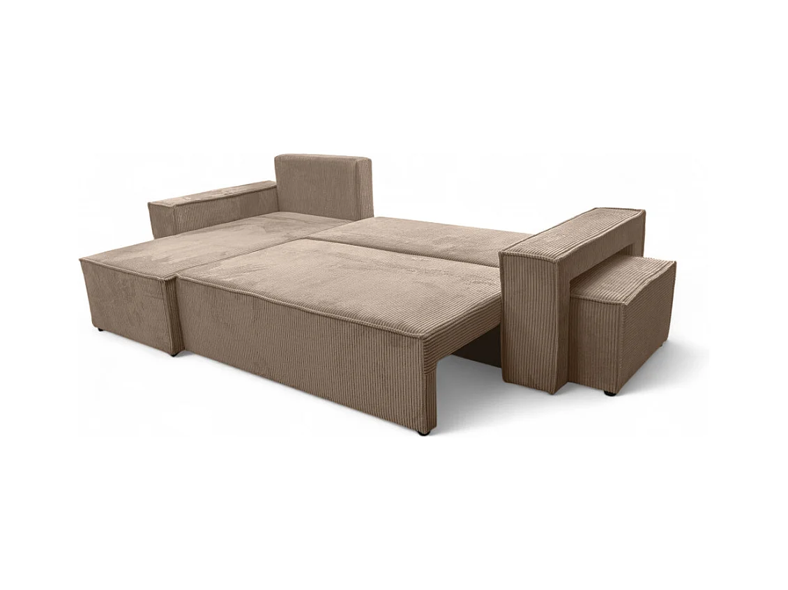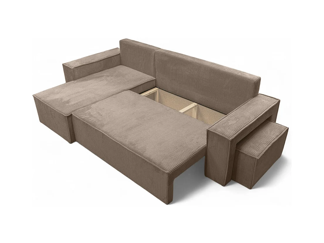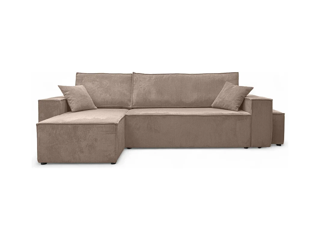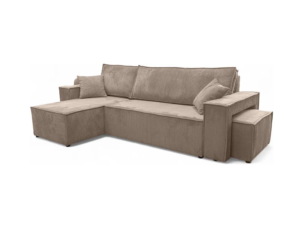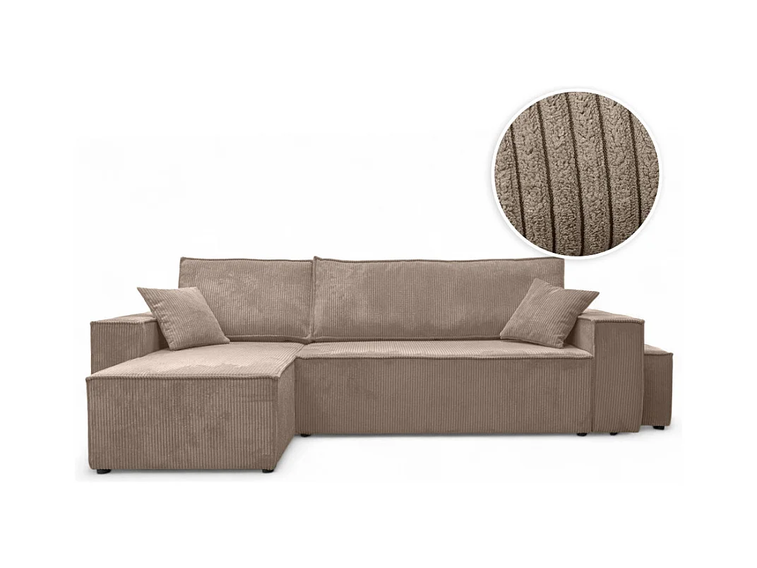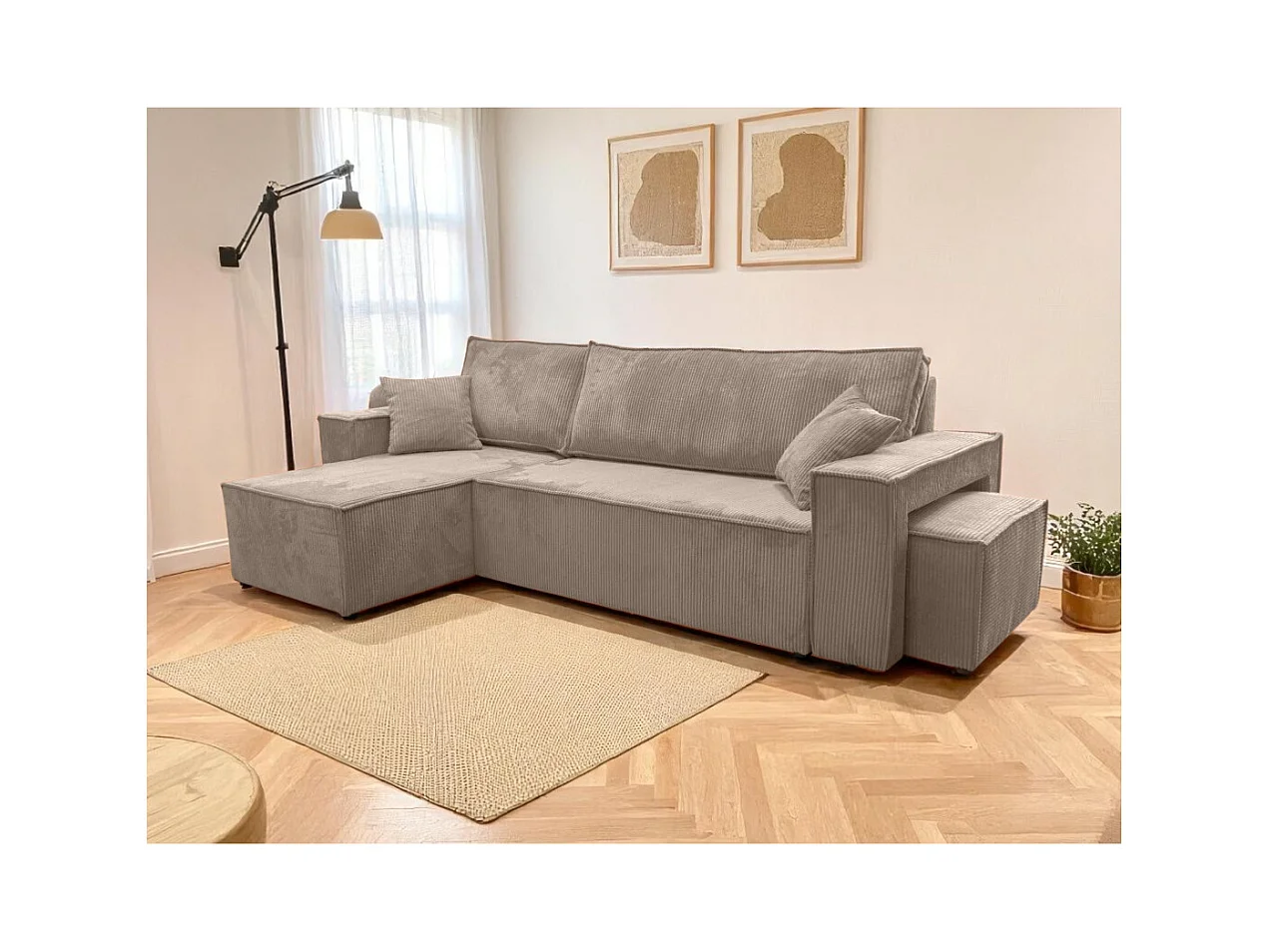 Canapé FARAH d'angle réversible et convertible 4 places avec un pouf en velours côtelé - Taupe