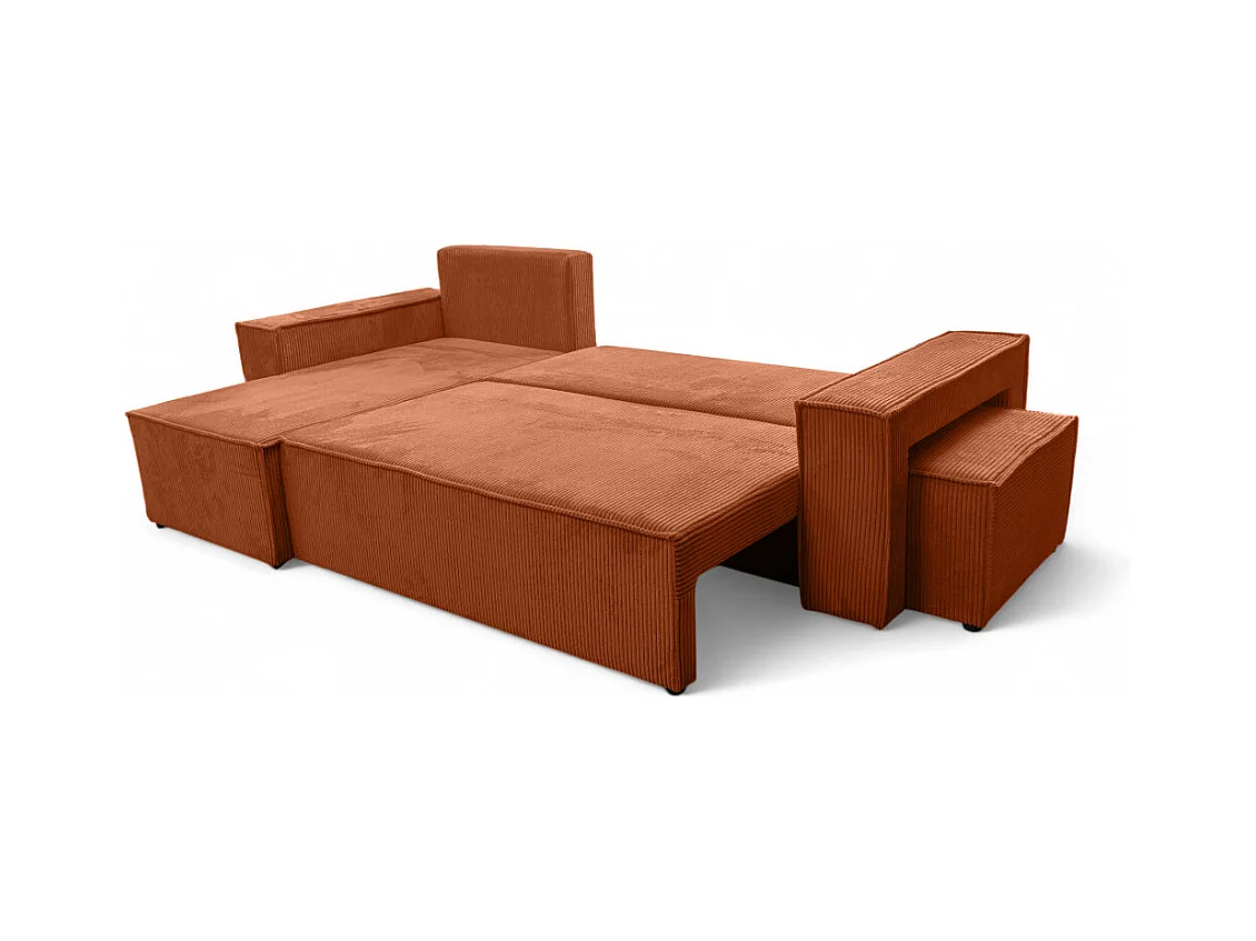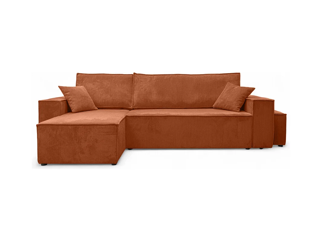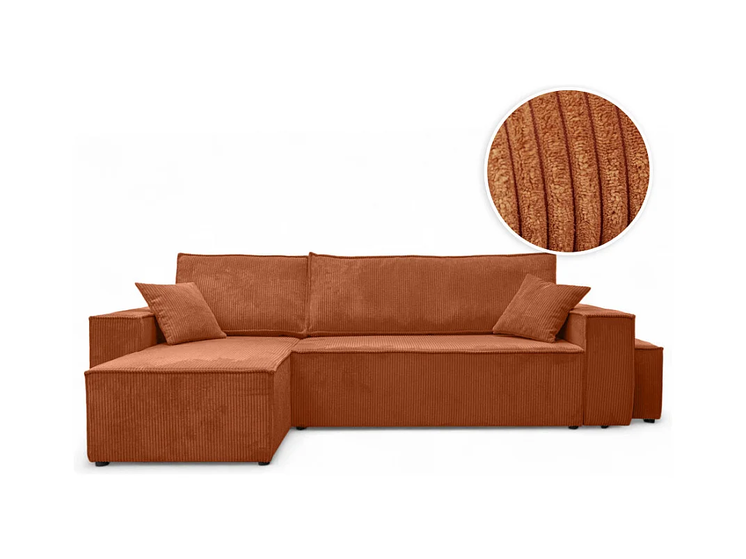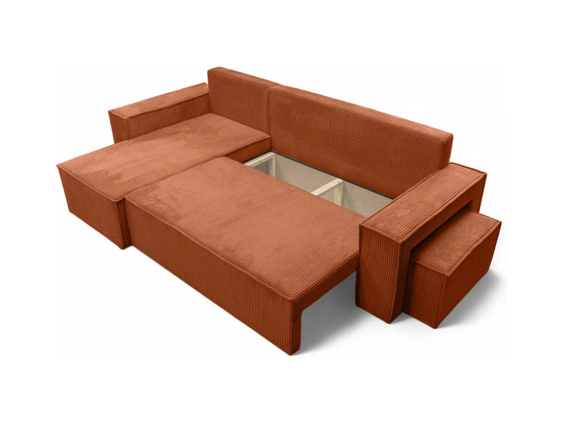 Canapé FARAH d'angle réversible et convertible 4 places avec un pouf en velours côtelé - Terracotta