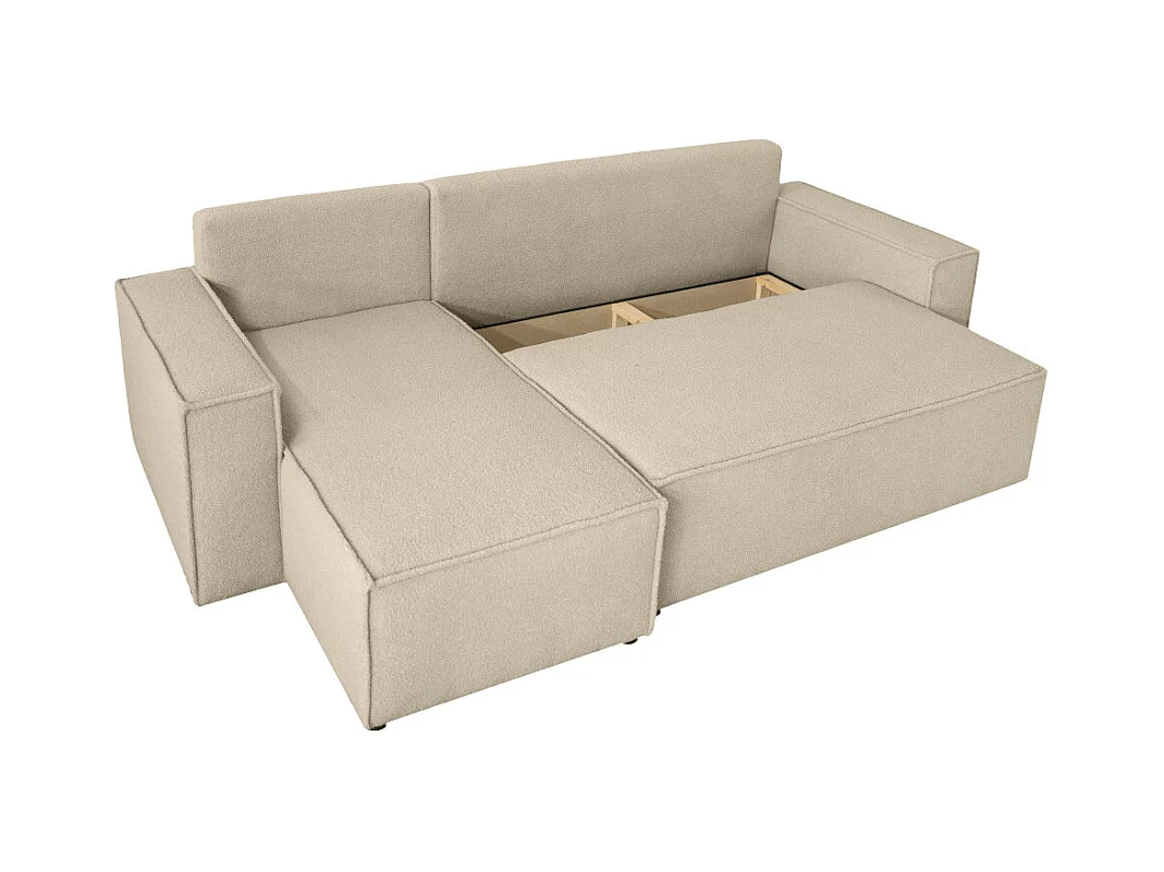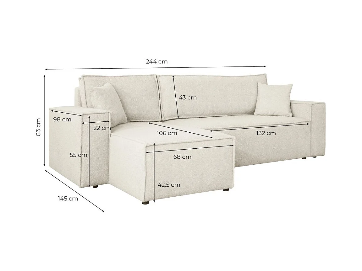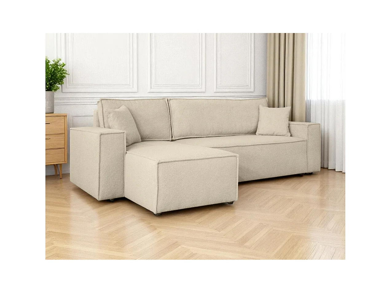 Canapé FARAH d'angle réversible et convertible 4 places en tissu bouclette - Beige