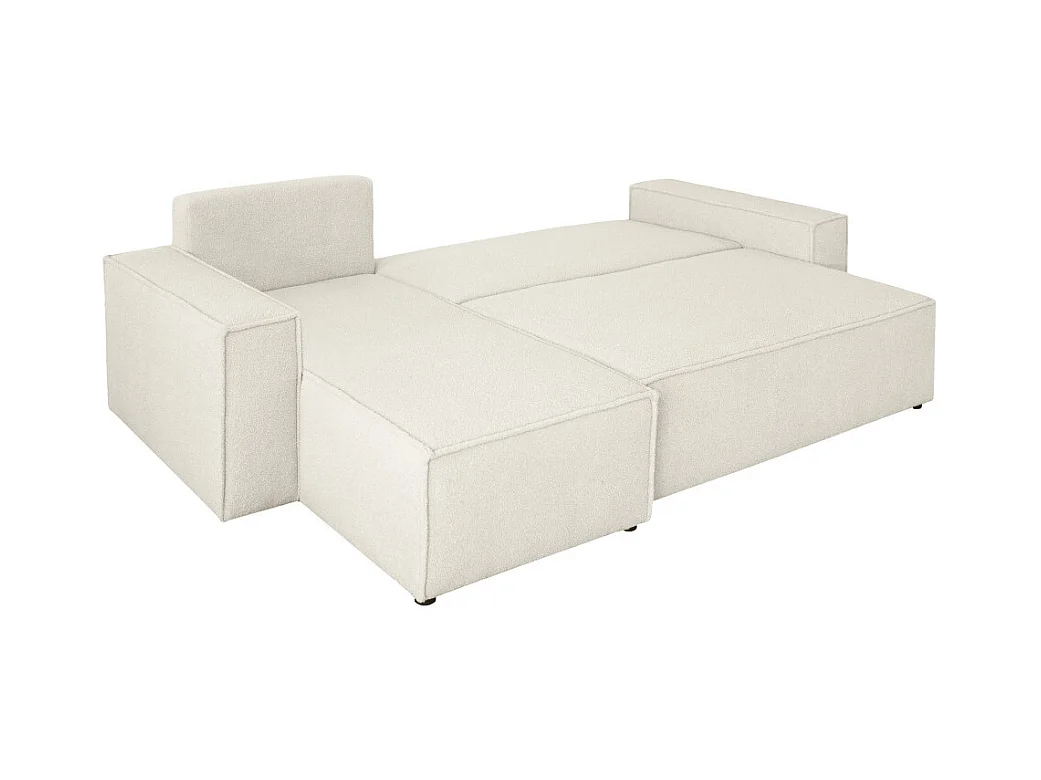 Canapé FARAH d'angle réversible et convertible 4 places en tissu bouclette - Blanc