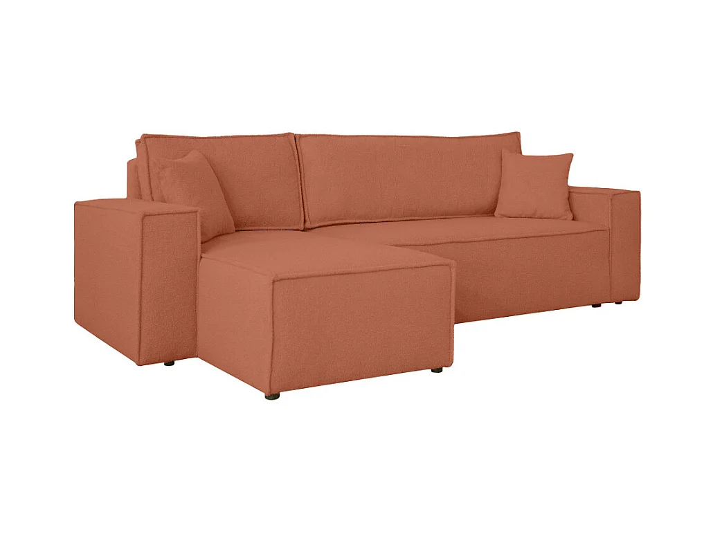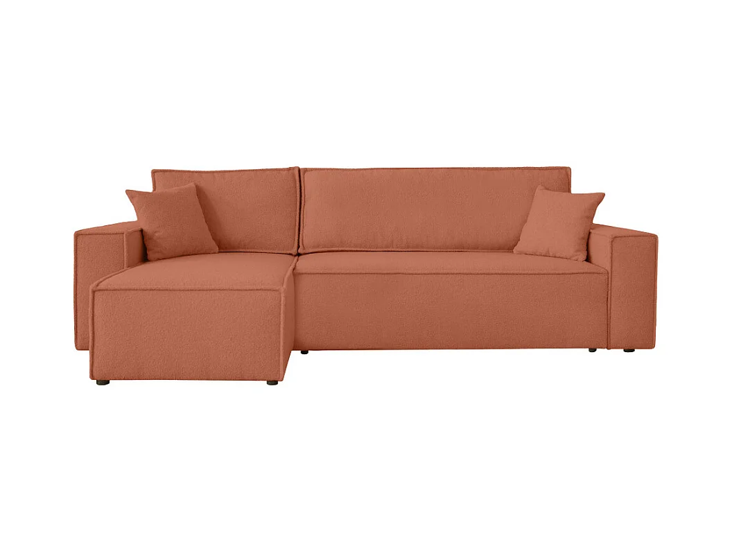 Canapé FARAH d'angle réversible et convertible 4 places en tissu bouclette - Terracotta