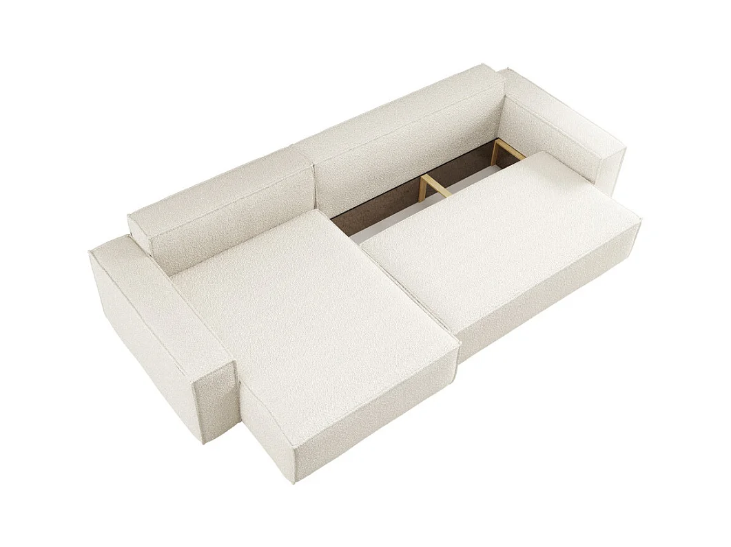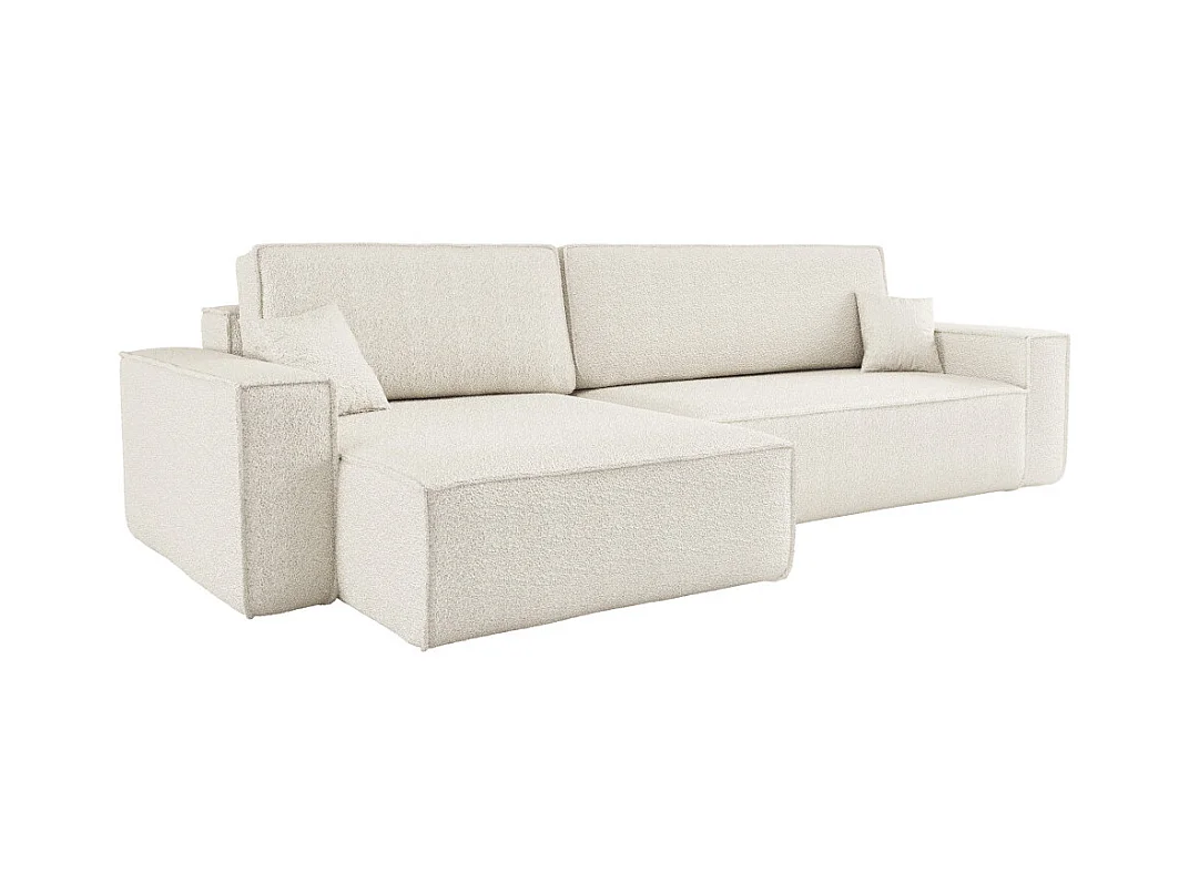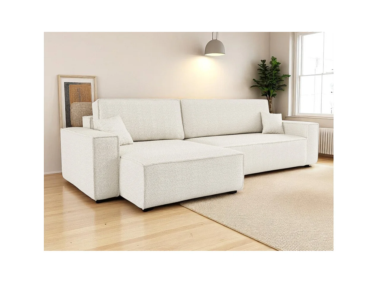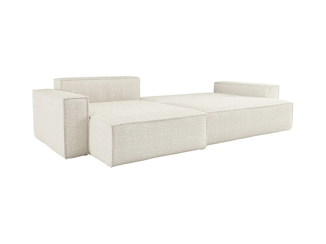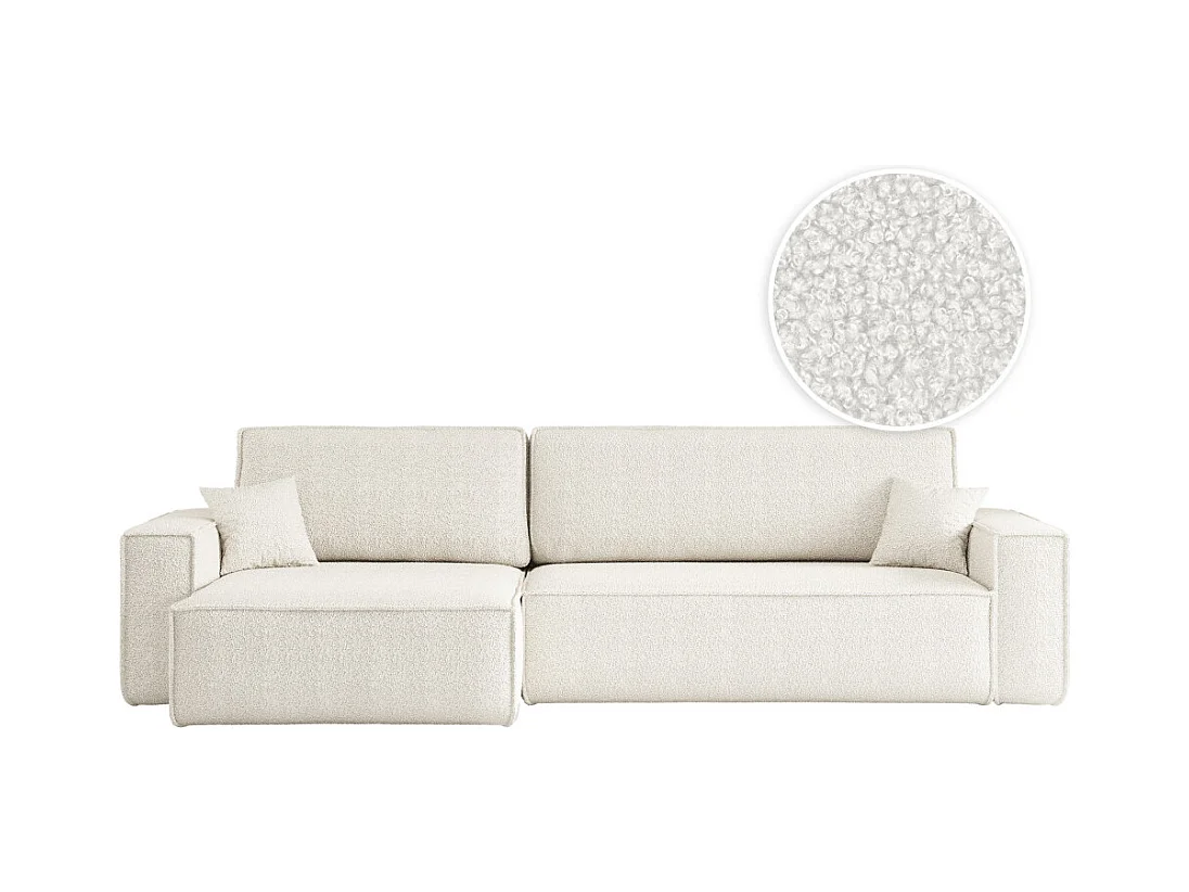 Canapé FARAH d'angle max réversible et convertible 5 places en tissu bouclette - Blanc