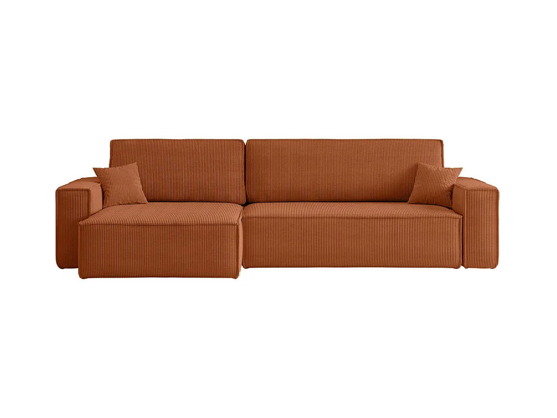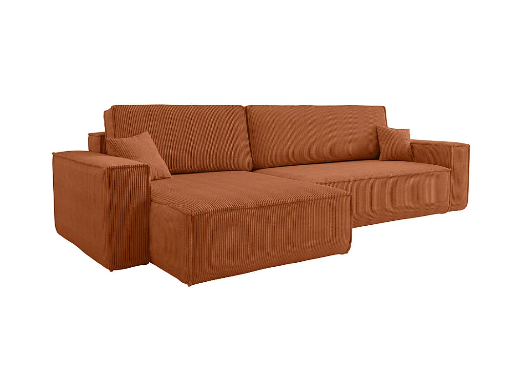 Canapé FARAH d'angle max réversible et convertible 5 places en velours côtelé - Terracotta
