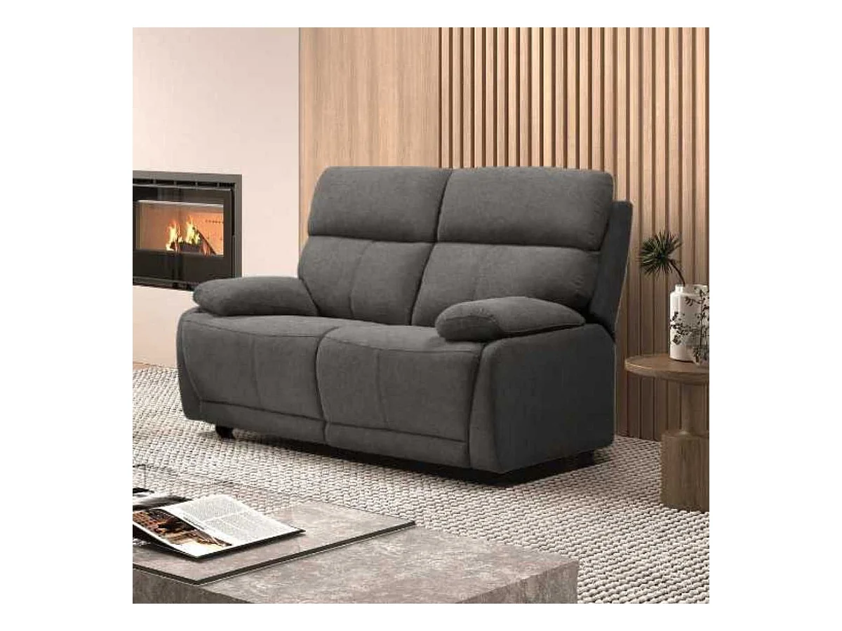 Canapé fixe 2 places tissu polyester gris foncé - MIGUEL