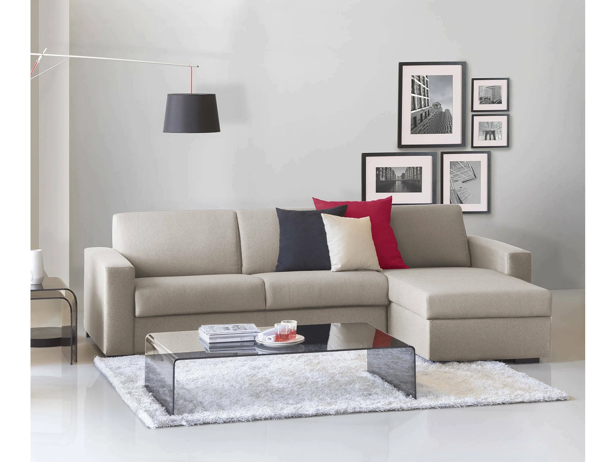 Divano fisso con penisola Debora, Sof ad angolo, Penisola contenitore reversibile, Braccioli slim, 100% Made in Italy, Cm 260x95h90, Tortora
