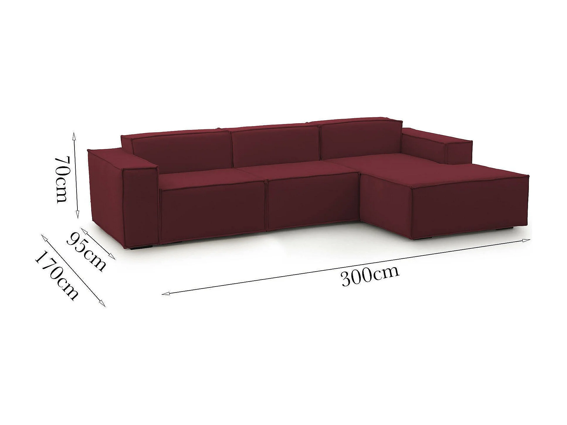 Canapé fixe Giovanna, canapé modulable 3 places avec péninsule droite, 100% Made in Italy, Canapé moderne en tissu, 300x170h70 cm, Rouge