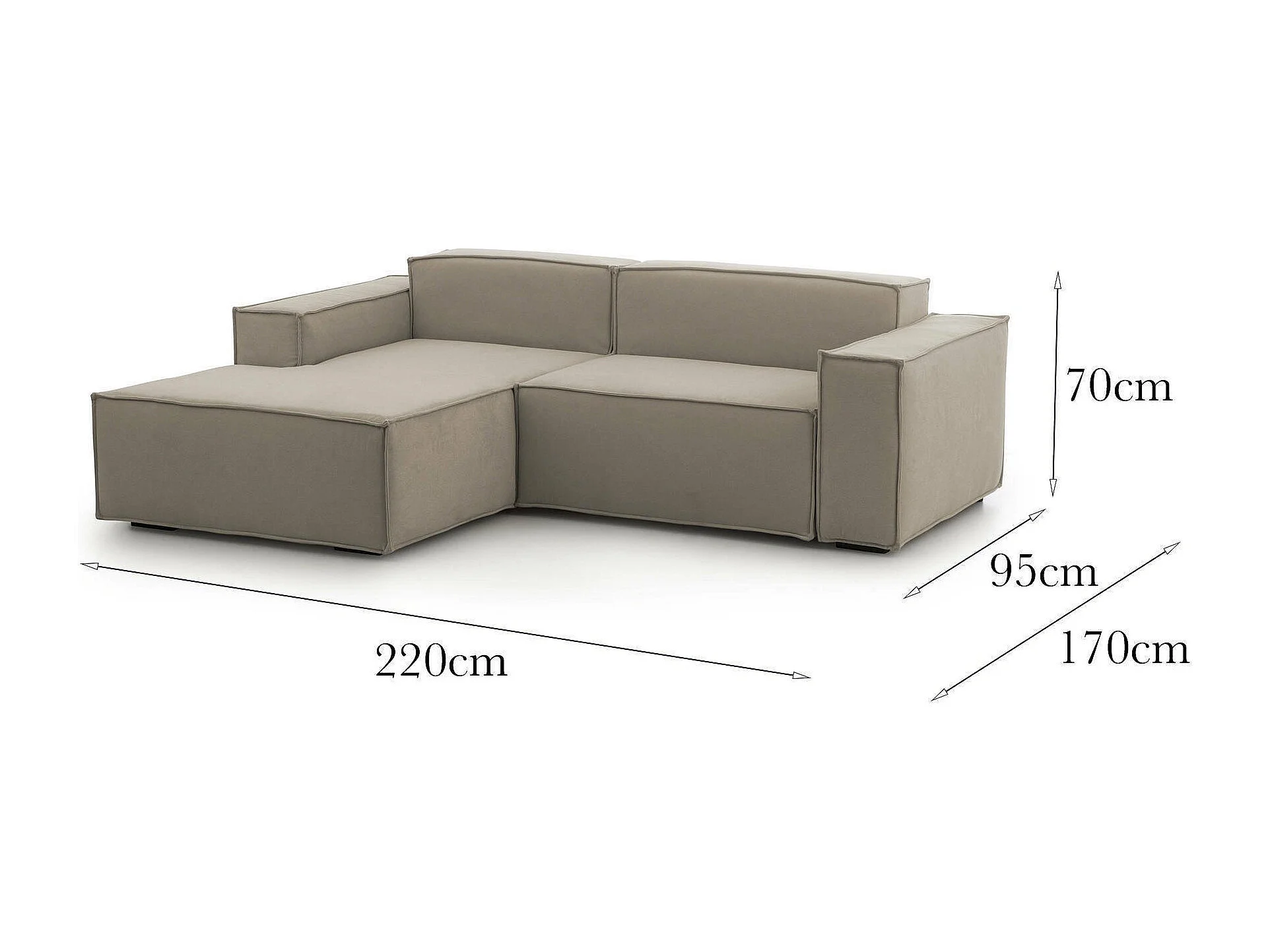 Canapé fixe Nadia, canapé modulable 2 places avec péninsule gauche, 100% Made in Italy, Canapé moderne en tissu, 220x170h70 cm, Taupe