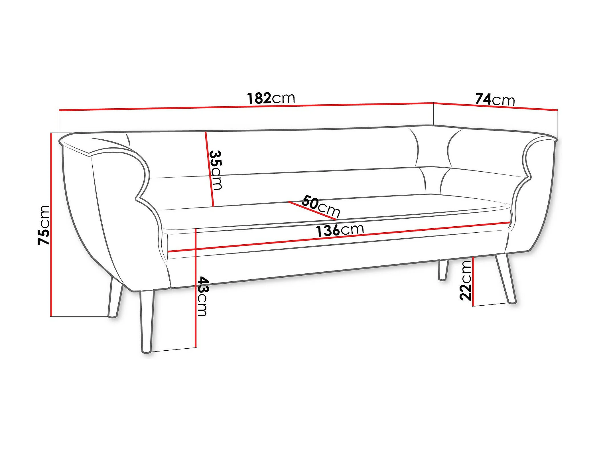 Canapé Glenview 100, Vert, 182x74x75cm, Tapisserie, Pieds: Bois