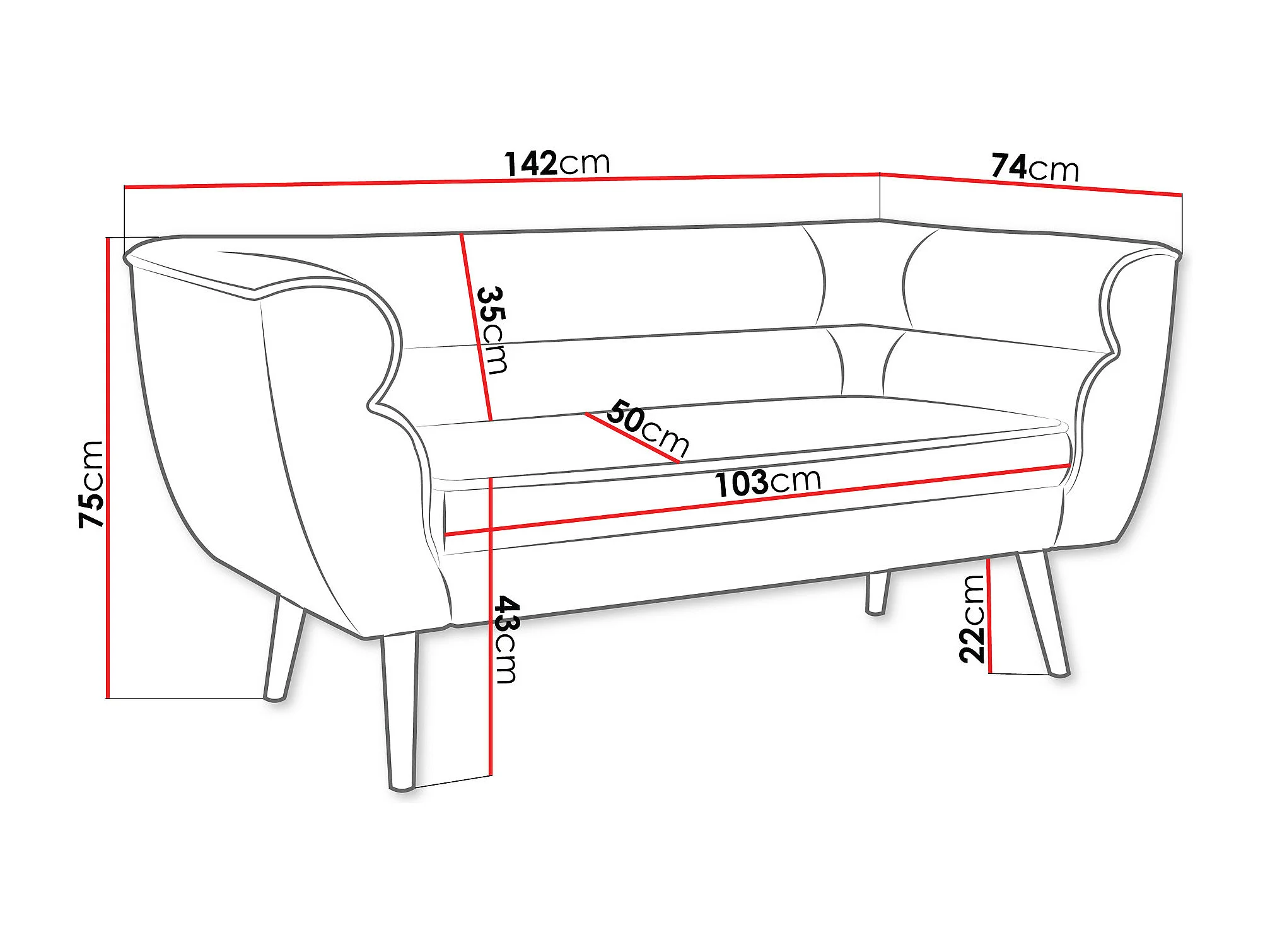 Canapé Glenview 101, Bleu, 142x74x76cm, Tapisserie, Pieds: Bois