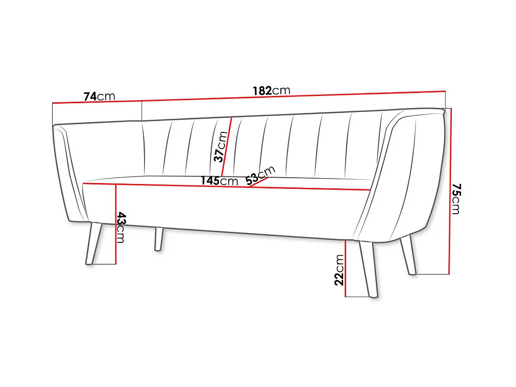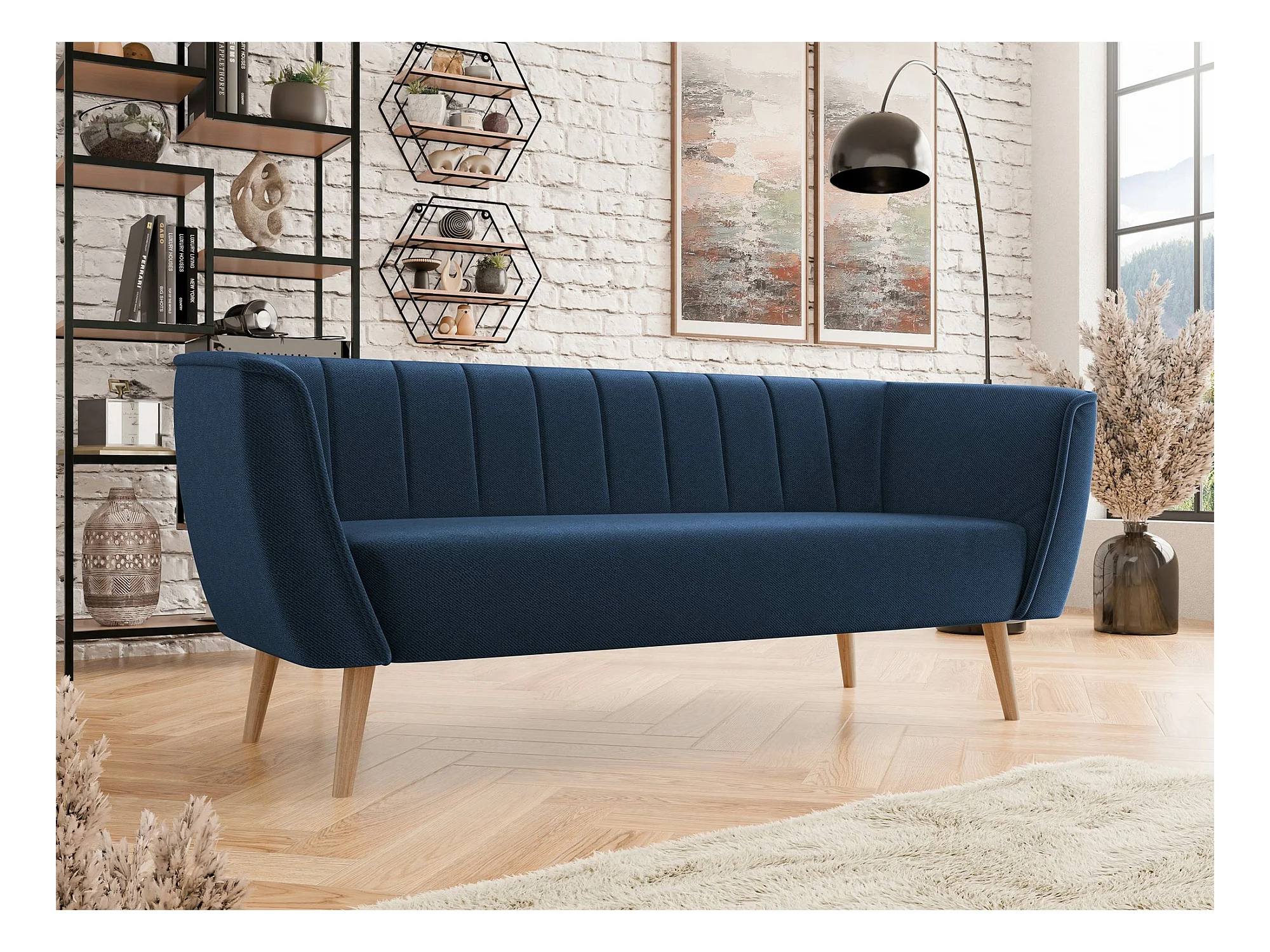 Canapé Glenview 103, Bleu, 182x74x75cm, Tapisserie, Pieds: Bois