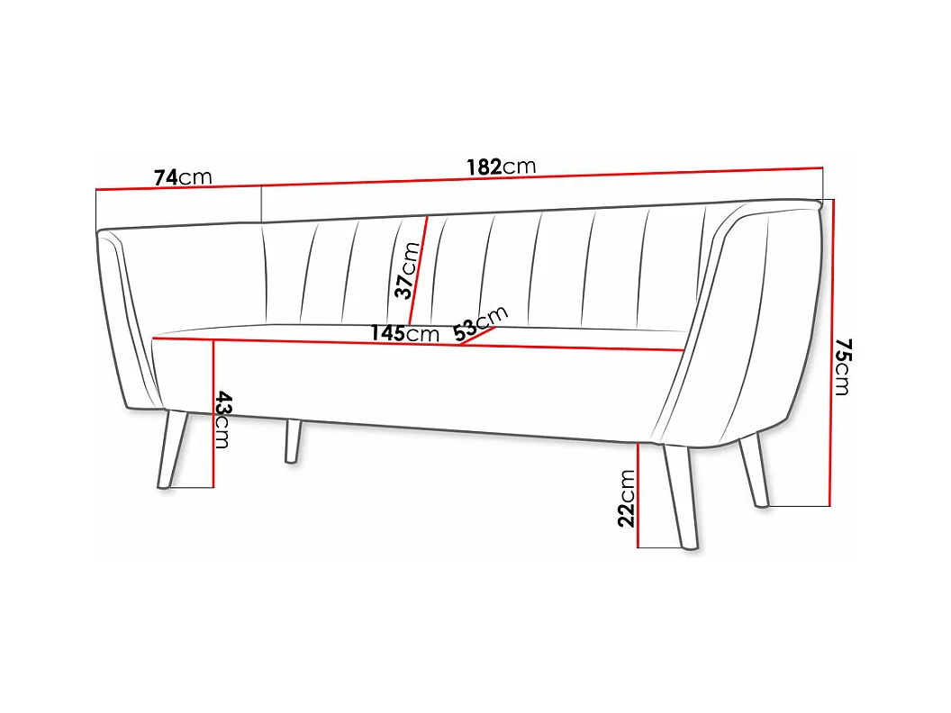 Canapé Glenview 103, Rose, 182x74x75cm, Tapisserie, Pieds: Bois
