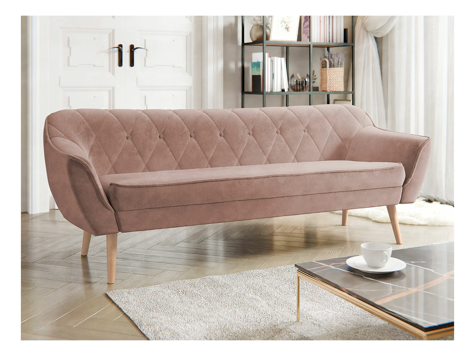 Canapé Glenview 106, Rose, 180x74x75cm, Tapisserie, Pieds: Bois