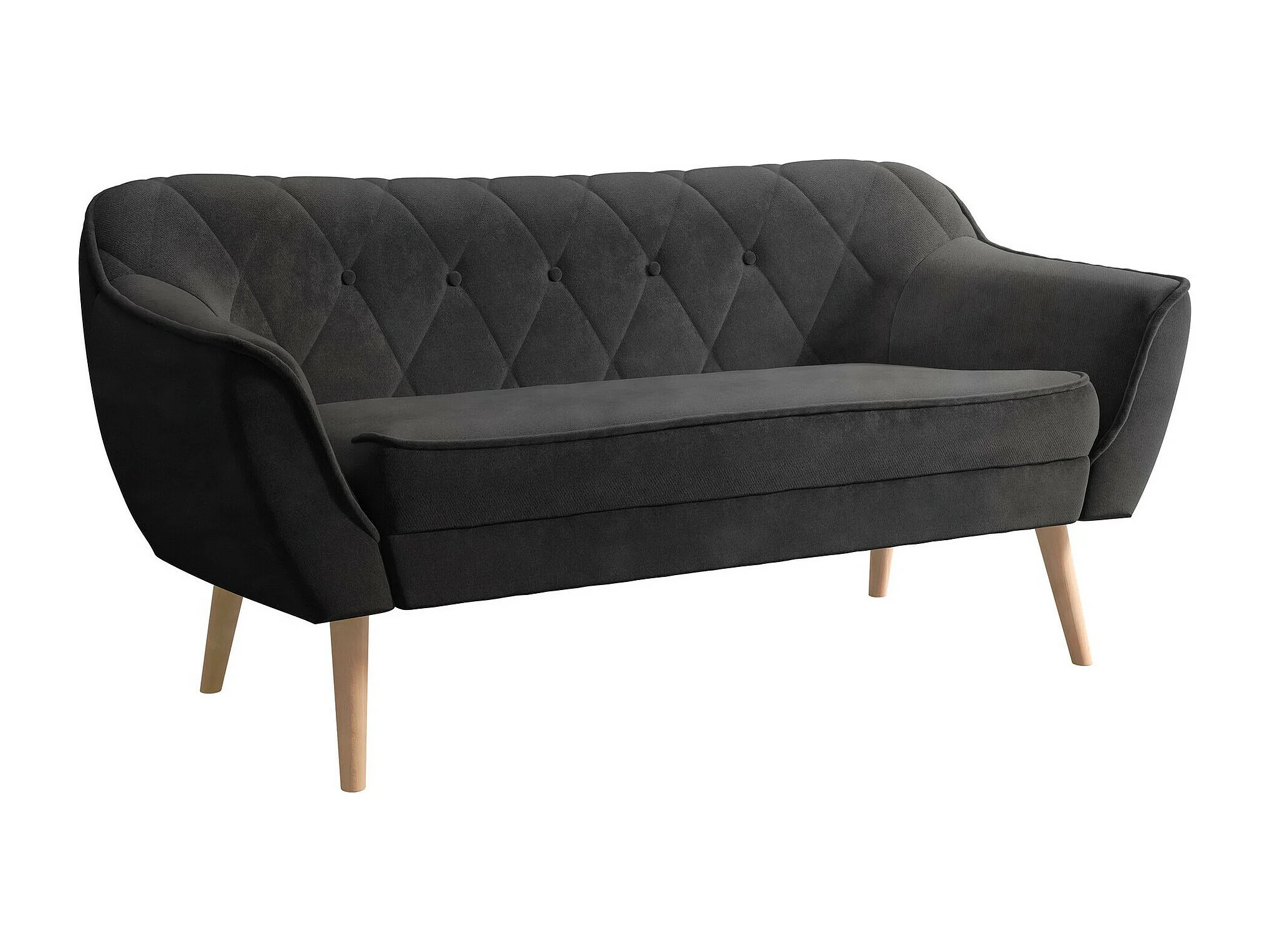 Canapé Glenview 107, Noir, 140x74x75cm, Tapisserie, Pieds: Bois