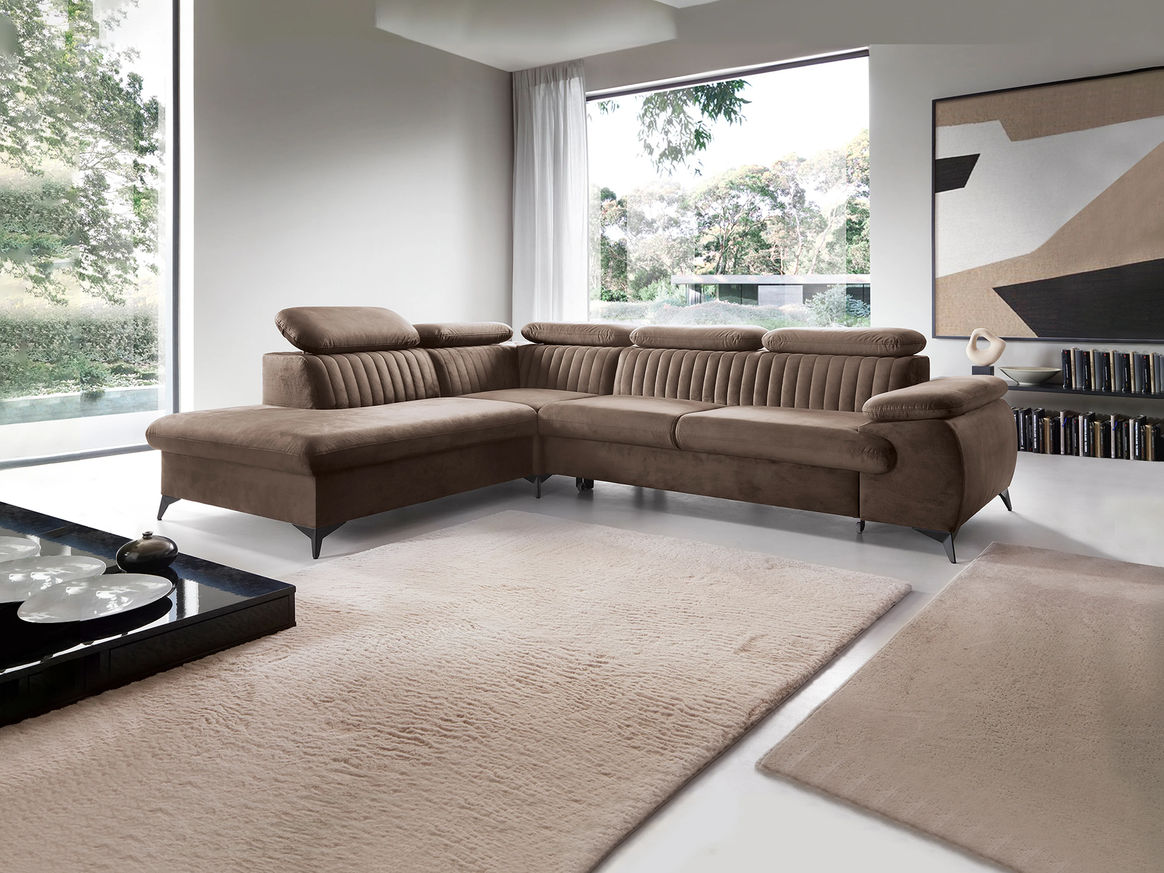 Canapé grand angle gauche convertible en velours taupe SAMARA de Pascal Morabito