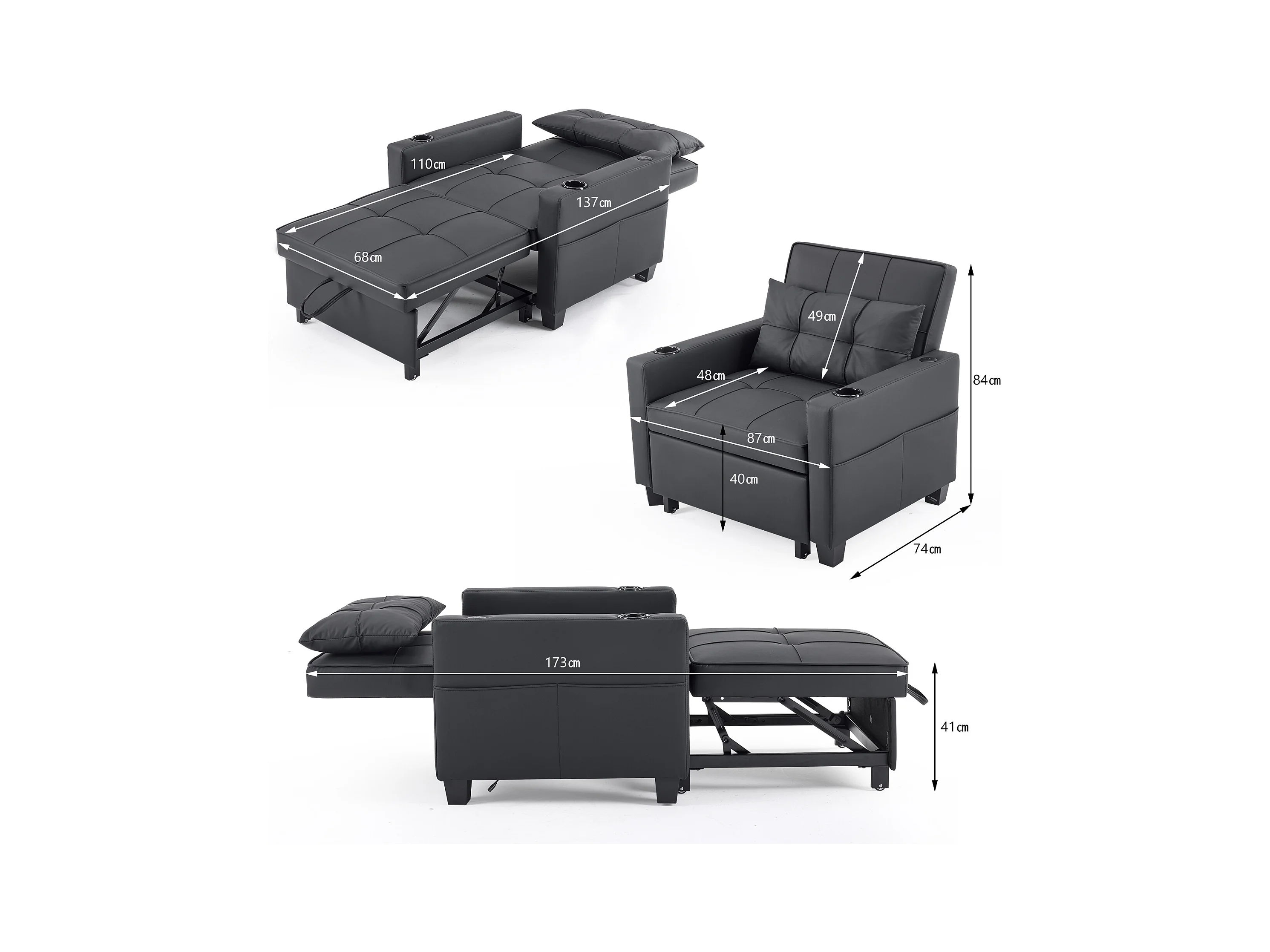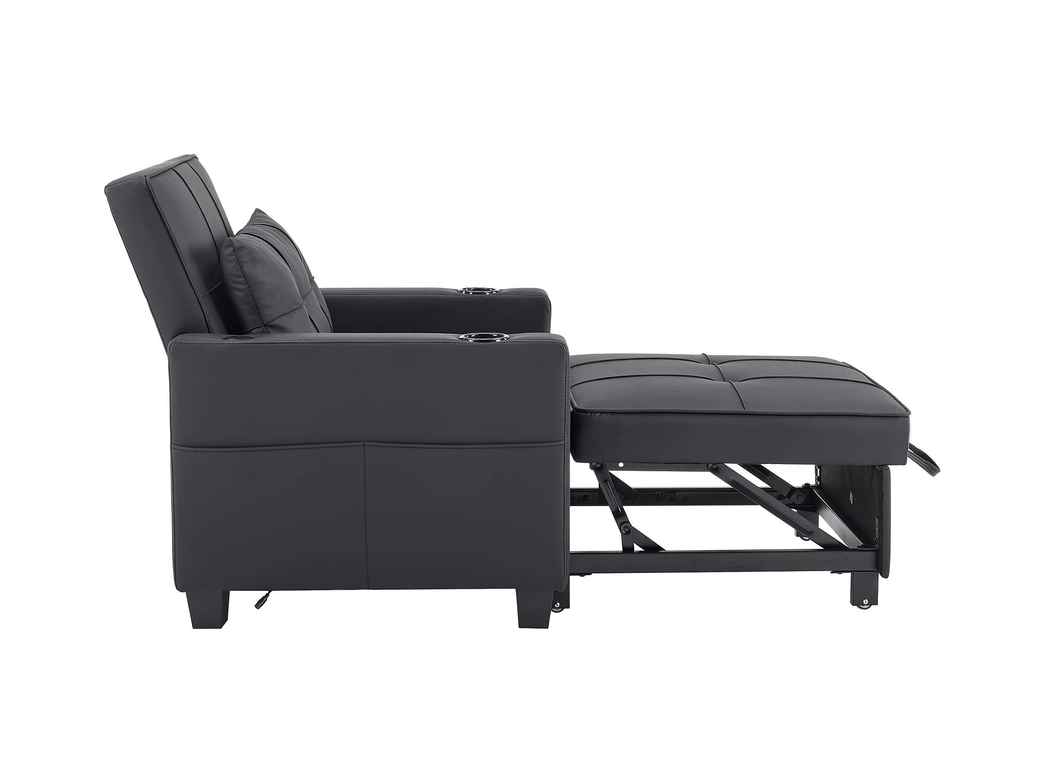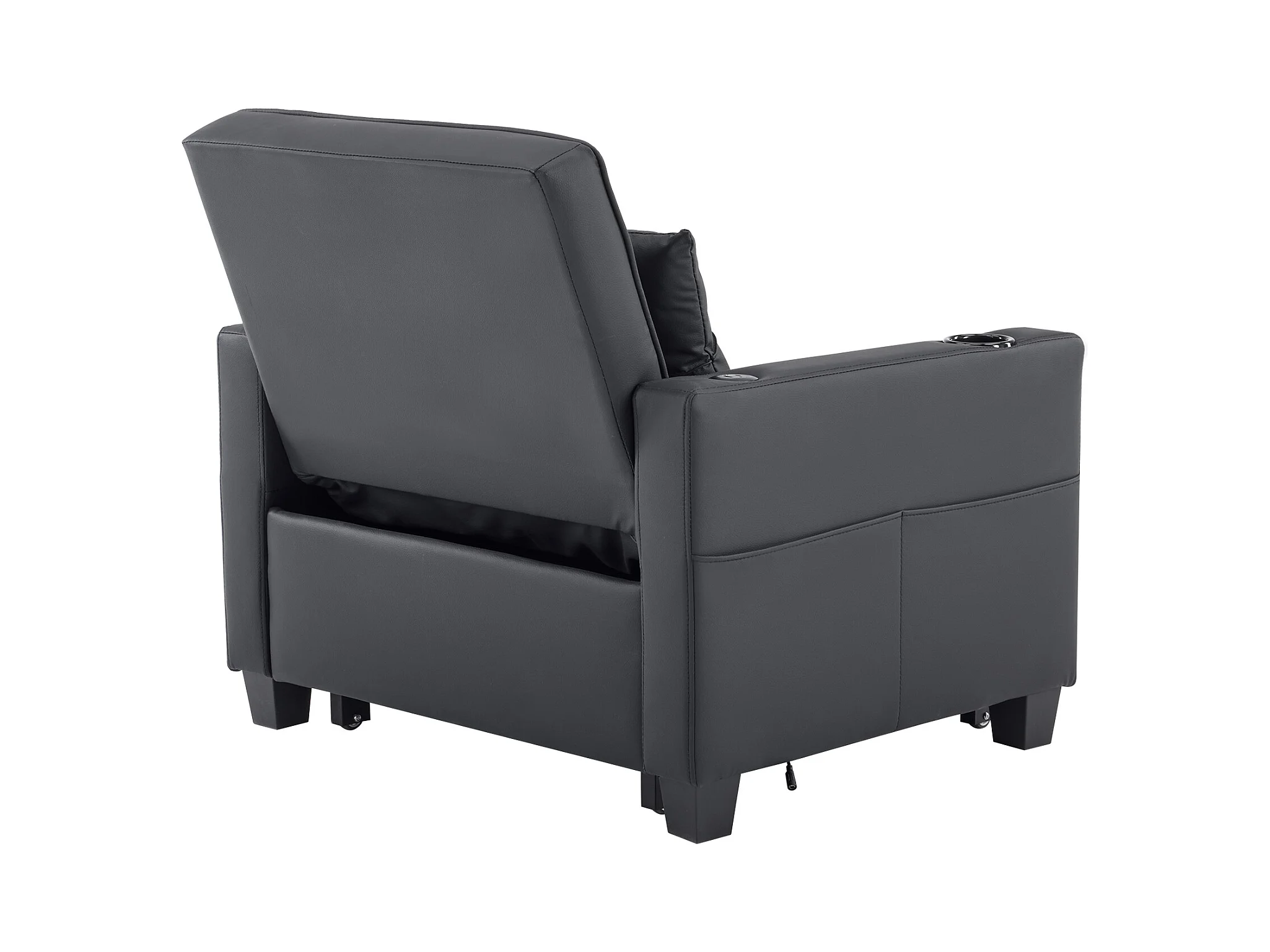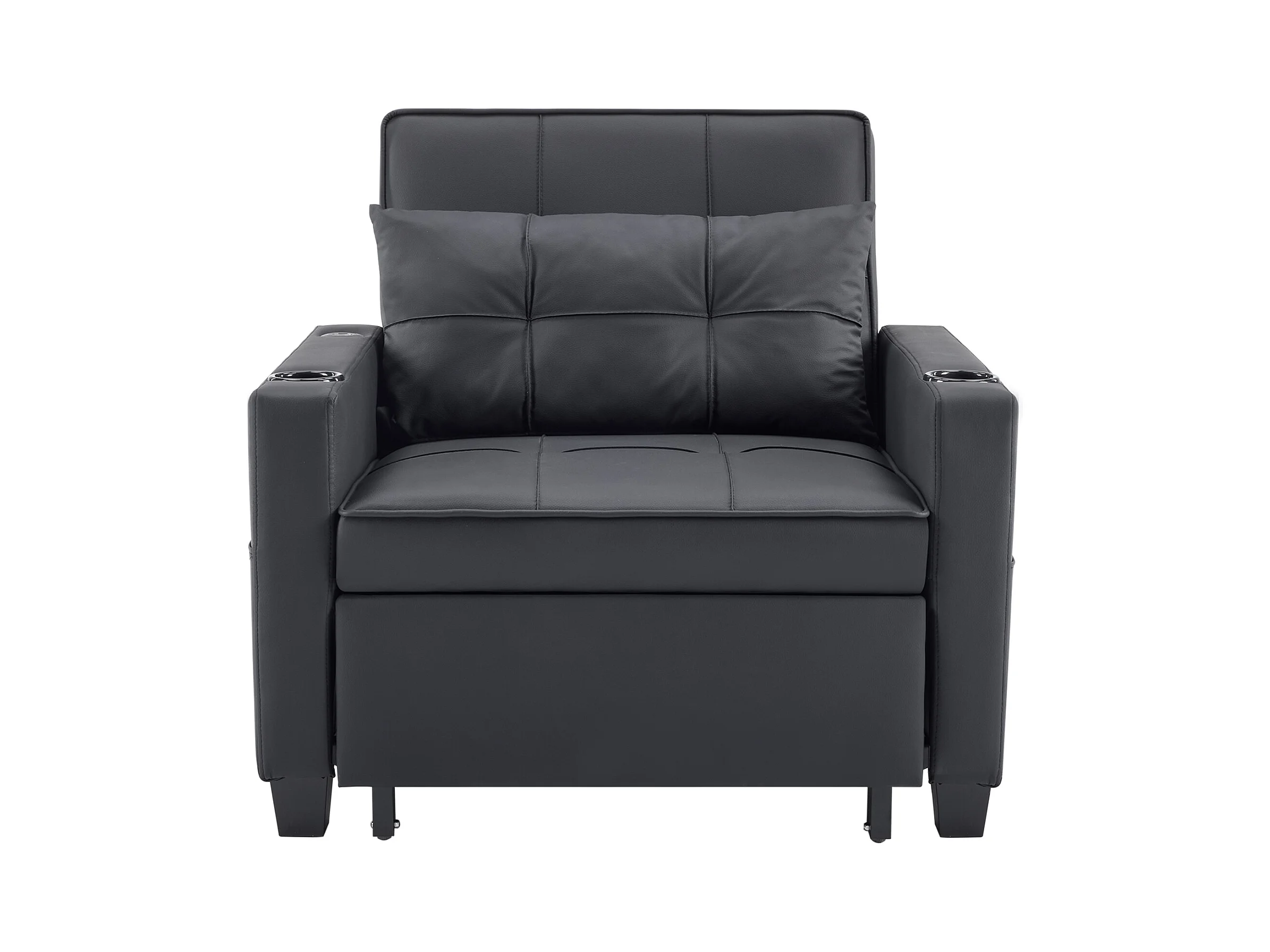 Canapé inclinable avec poches latérales - Canapé droit avec porte-gobelets et port USB - noir