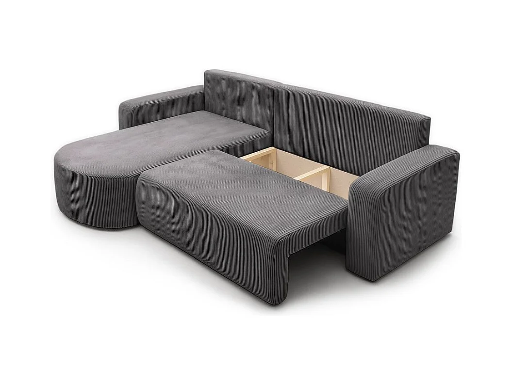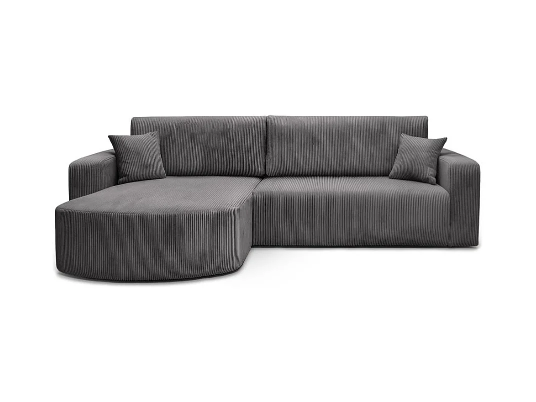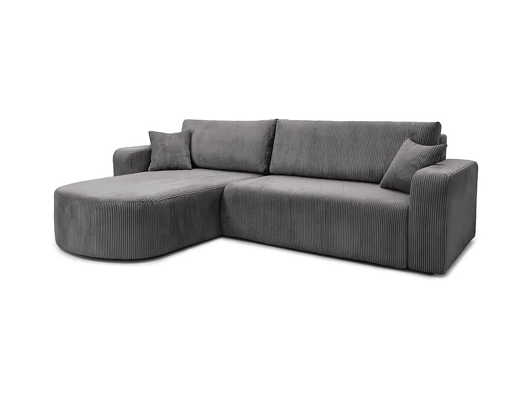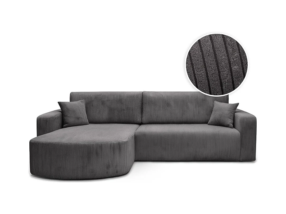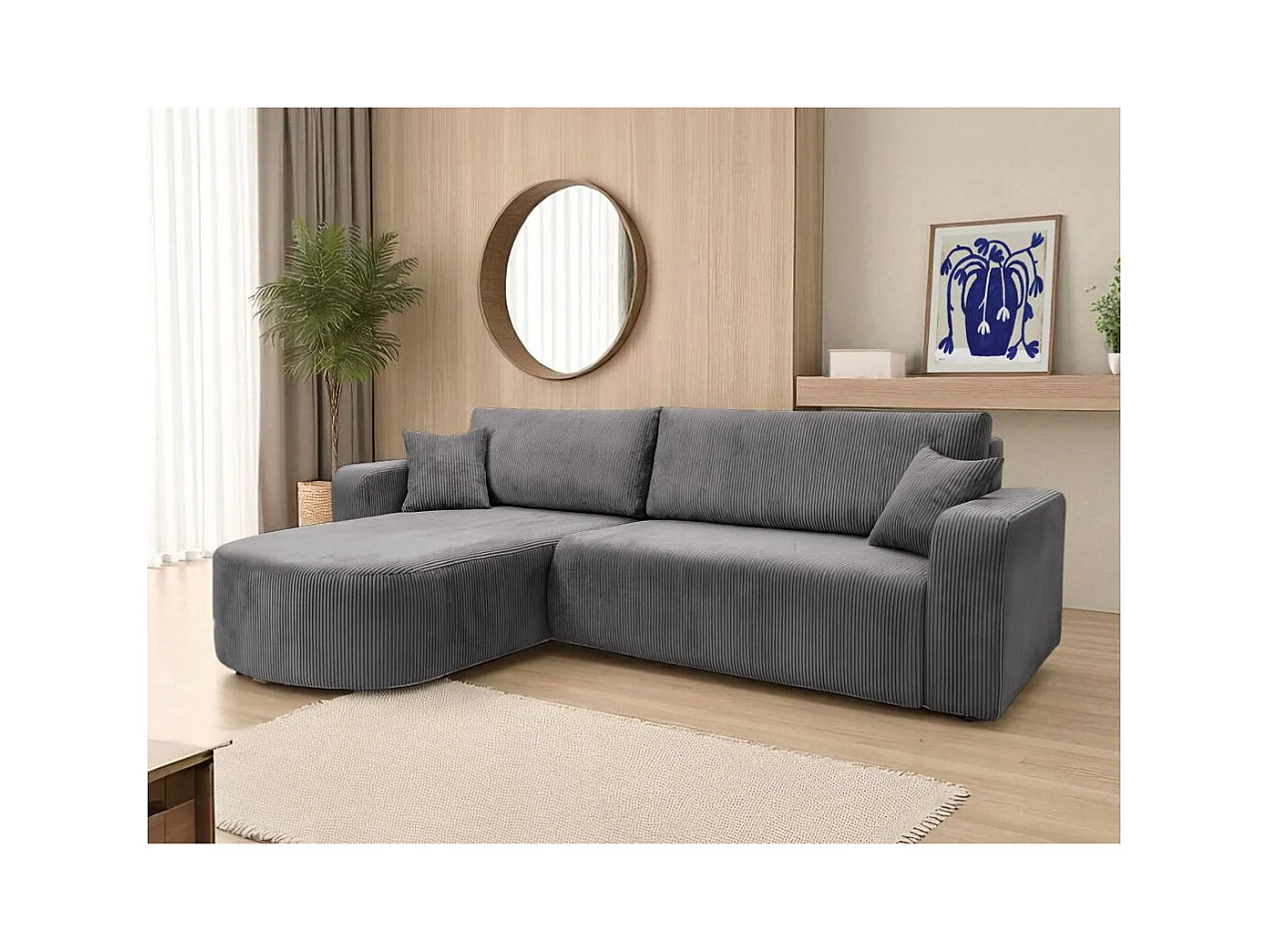 Canapé KIARA d'angle réversible convertible 4 places en velours côtelé - Gris anthracite
