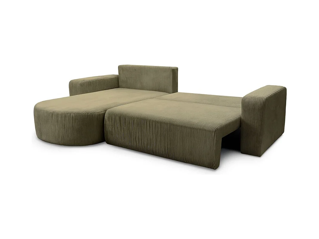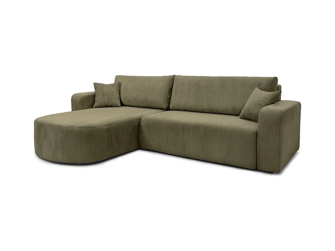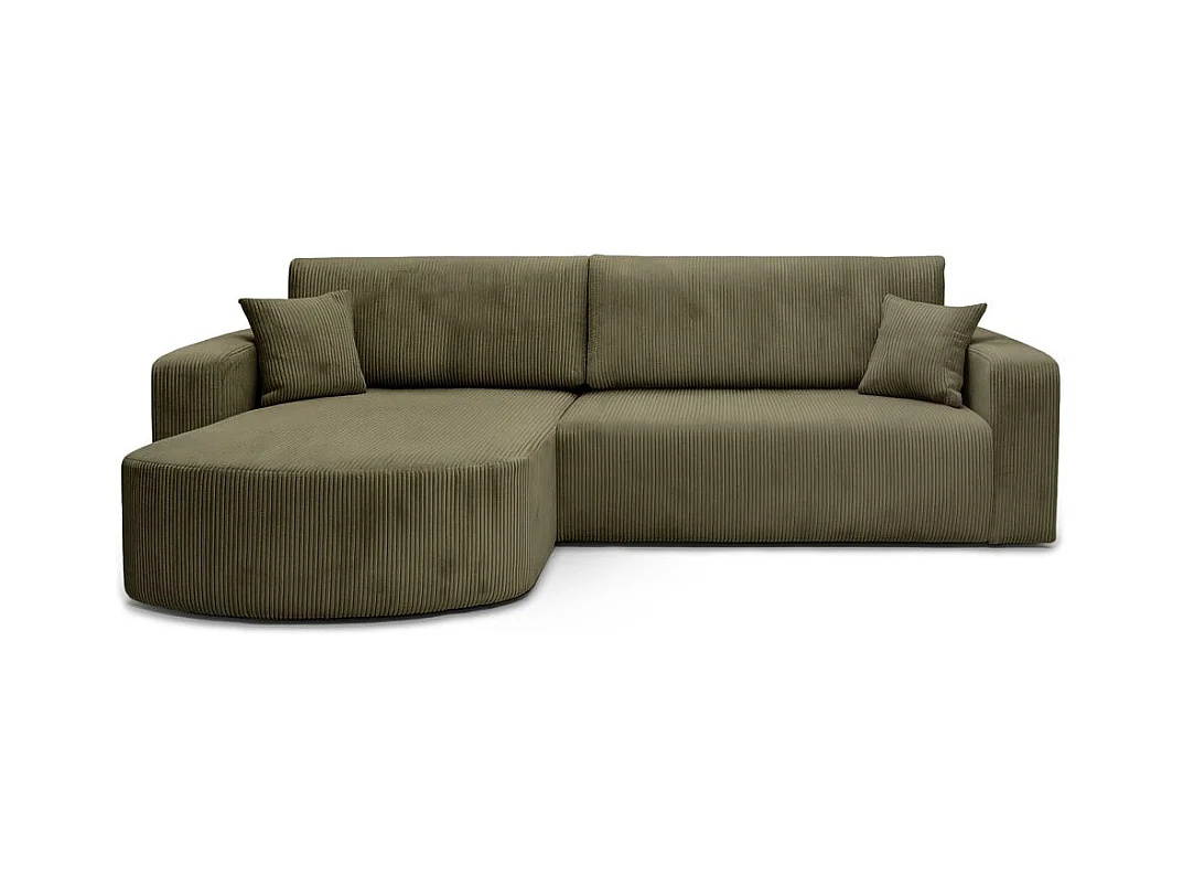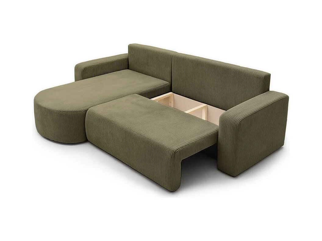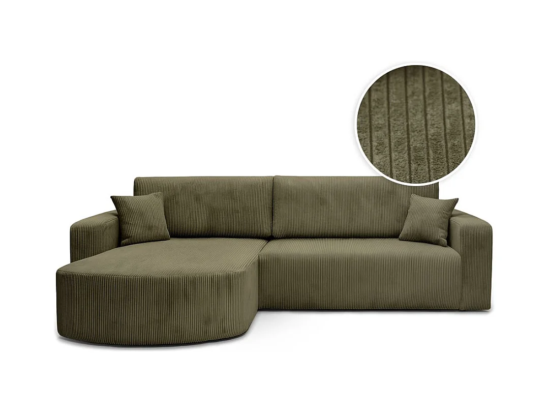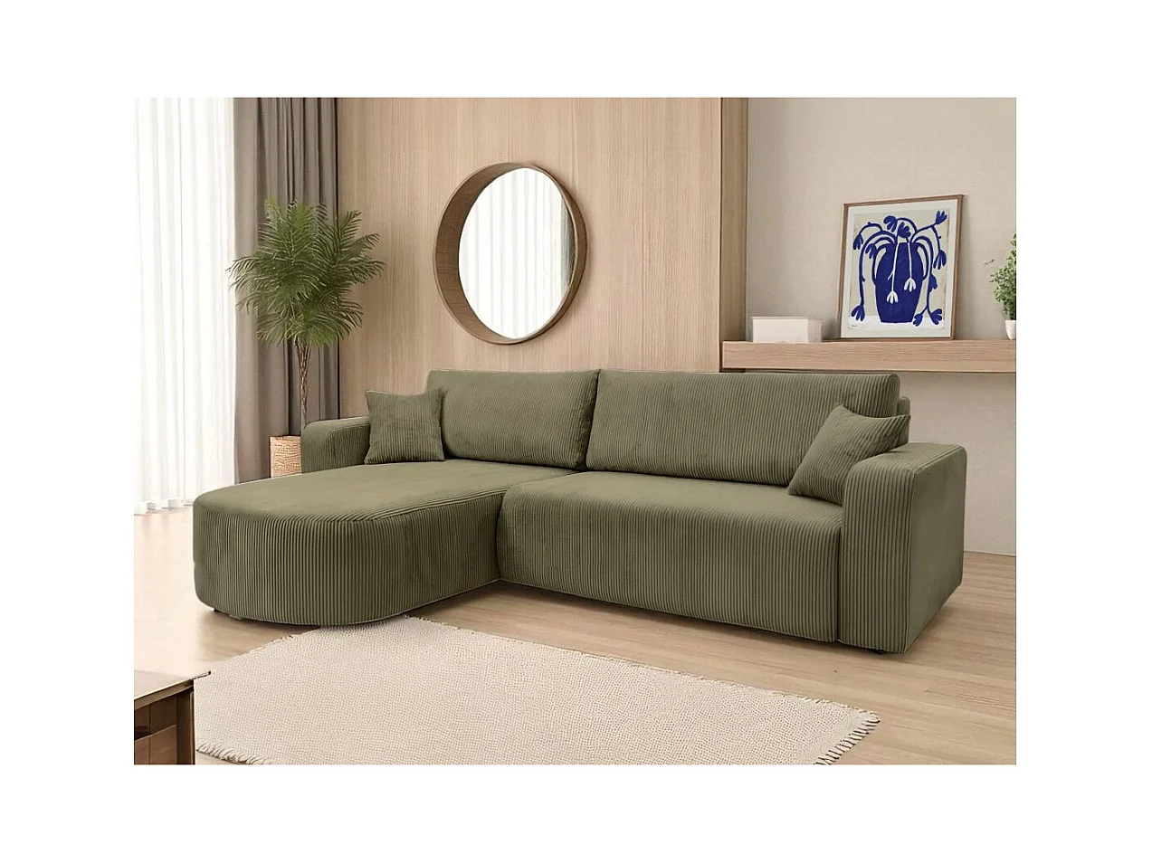Canapé KIARA d'angle réversible convertible 4 places en velours côtelé - Vert kaki