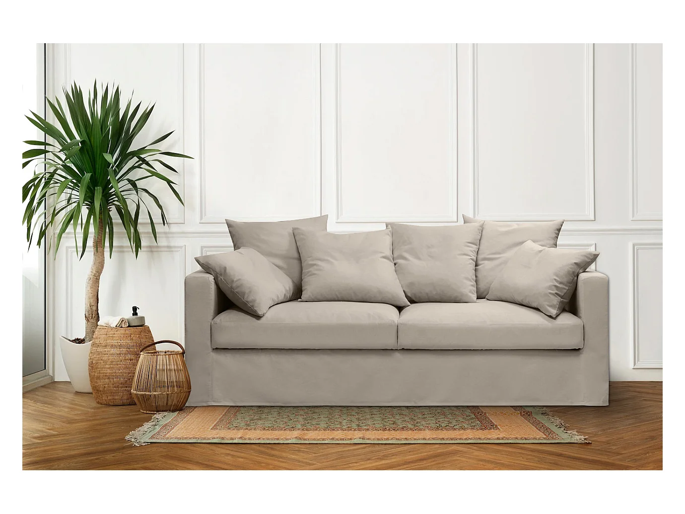 Canapé lin 4 pl SOFIA 197 cm fixe tissu Ficelle 100% déhoussable – Fab France