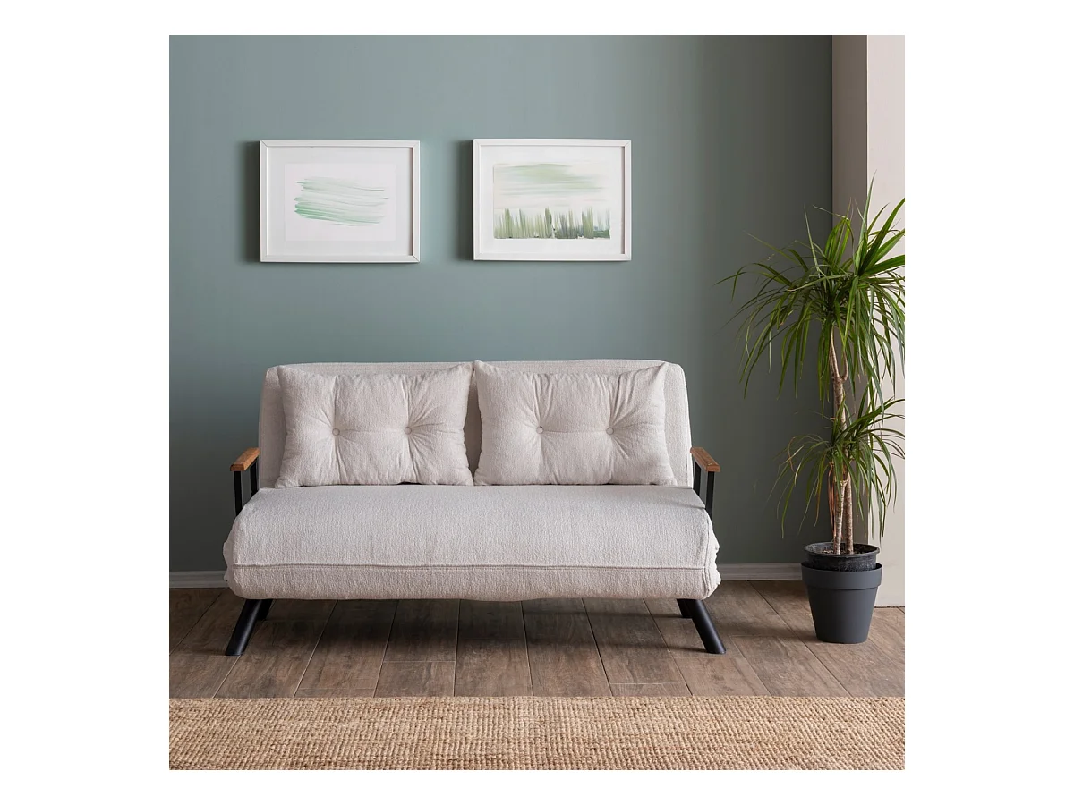 Canapé lit 2 places convertible en tissu bouclette avec pieds en métal L133 cm - SANDO