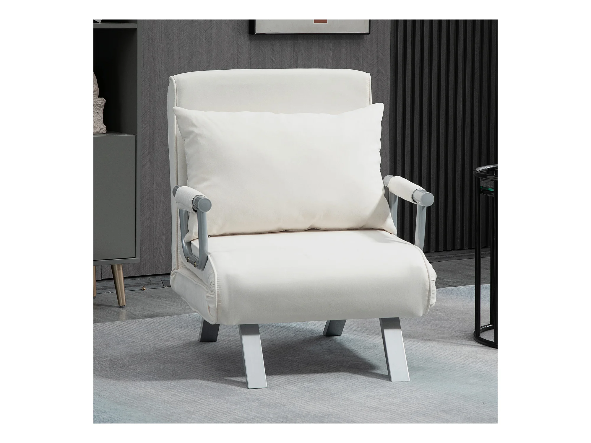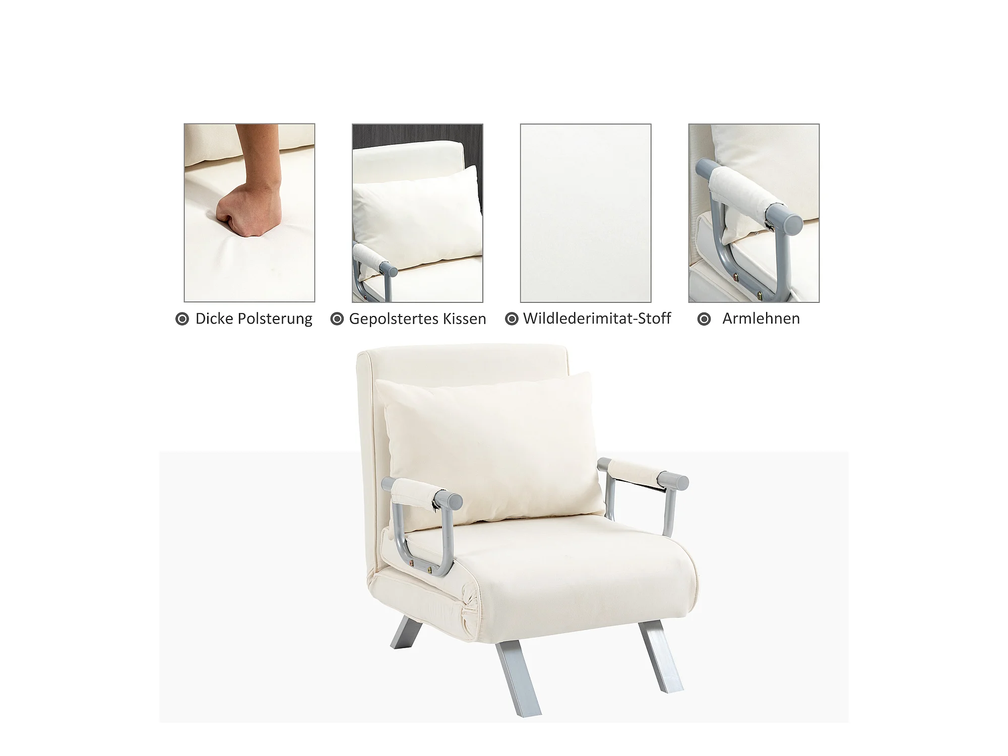 Canapé-lit 3-en-1 avec accoudoir, matelas pliant, polyester, crème (65x69x80cm)