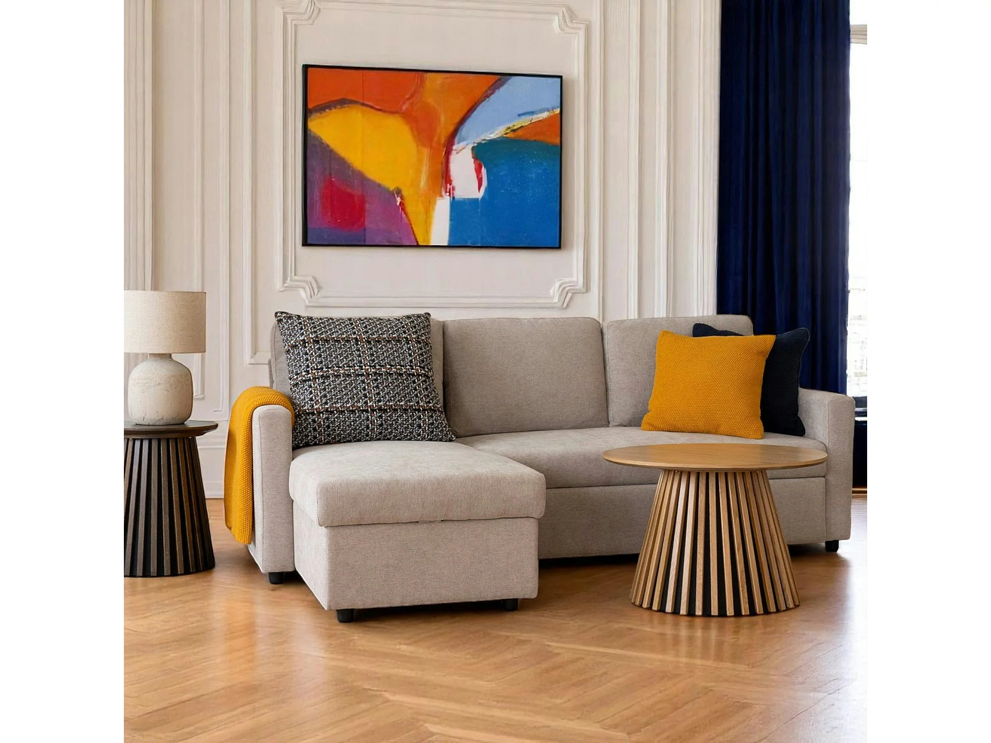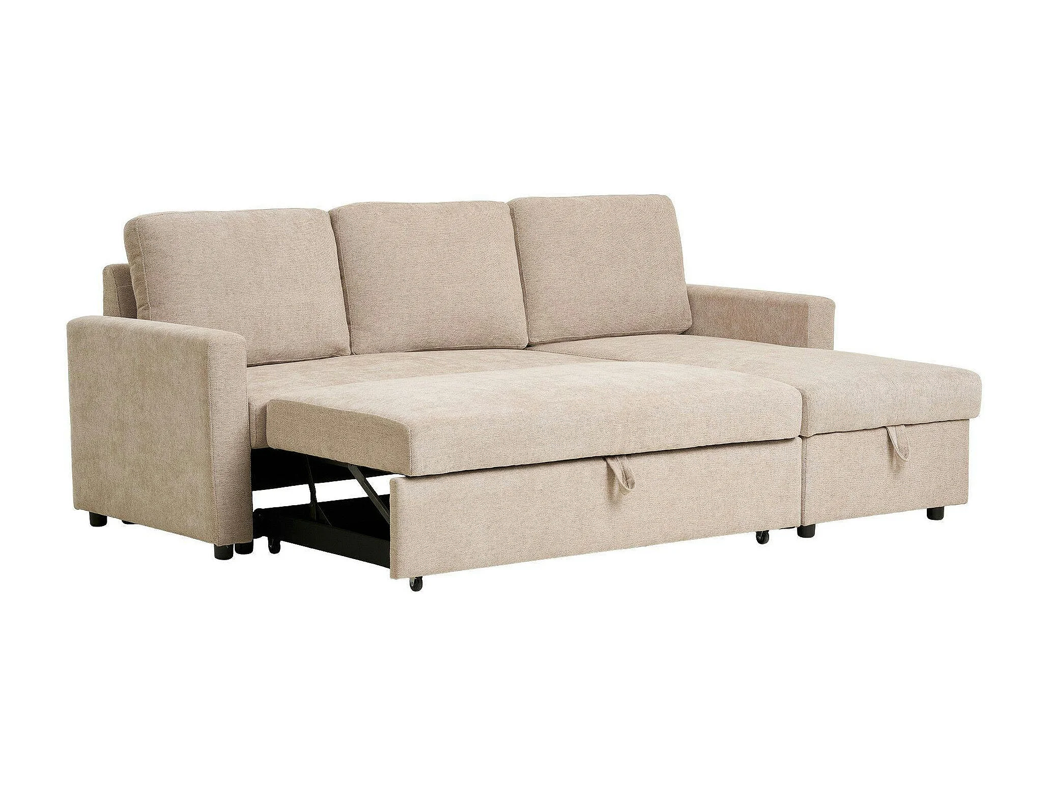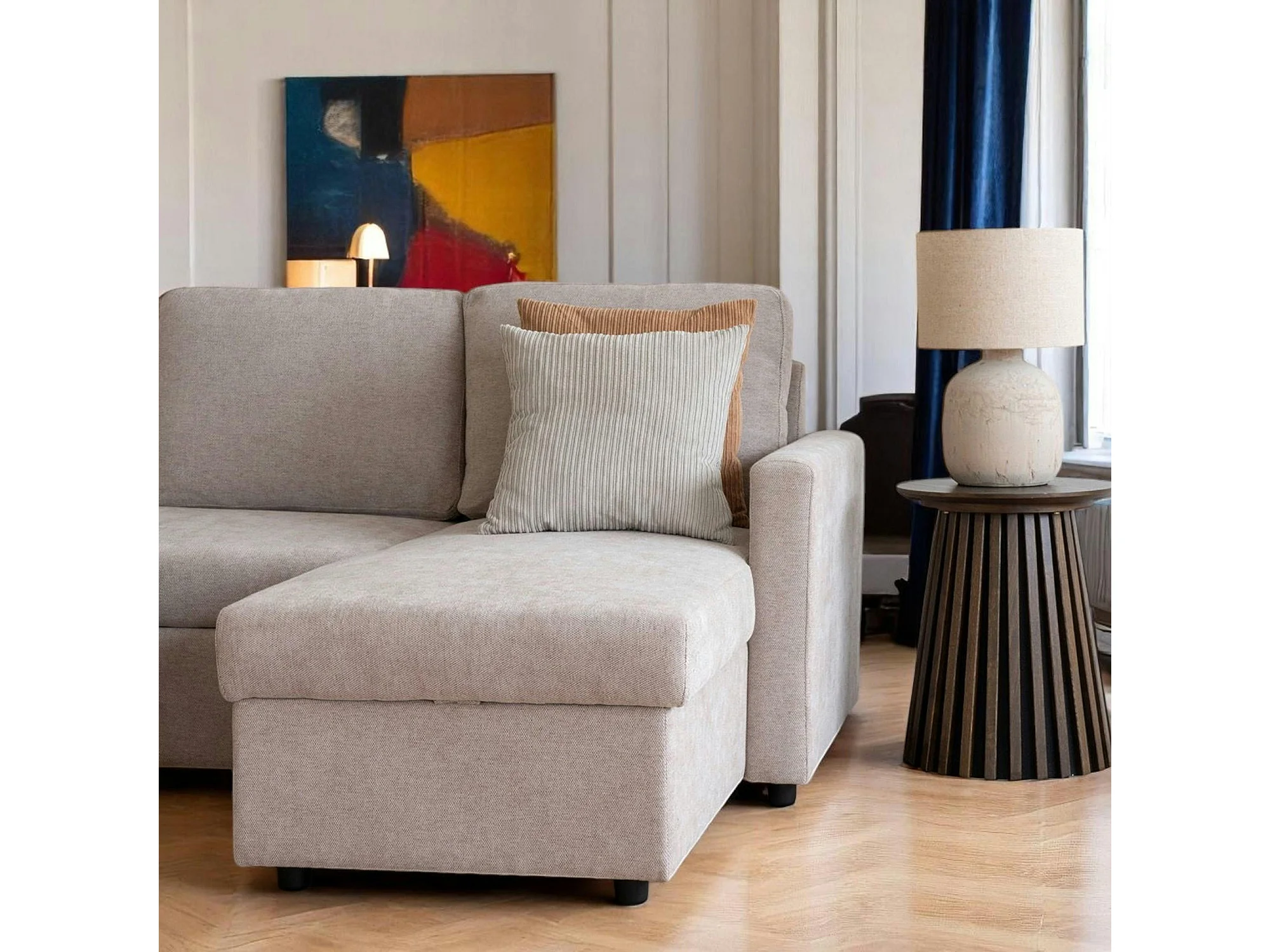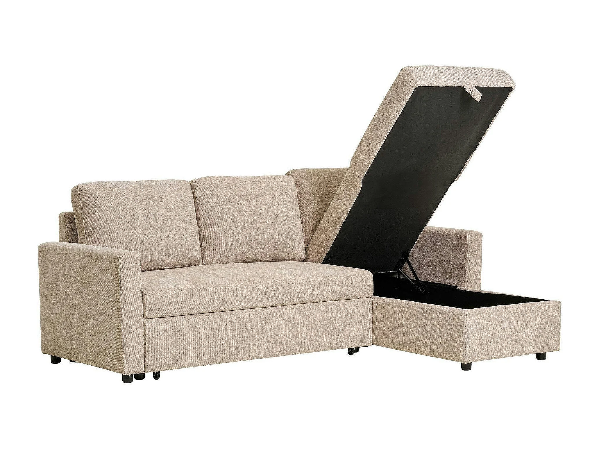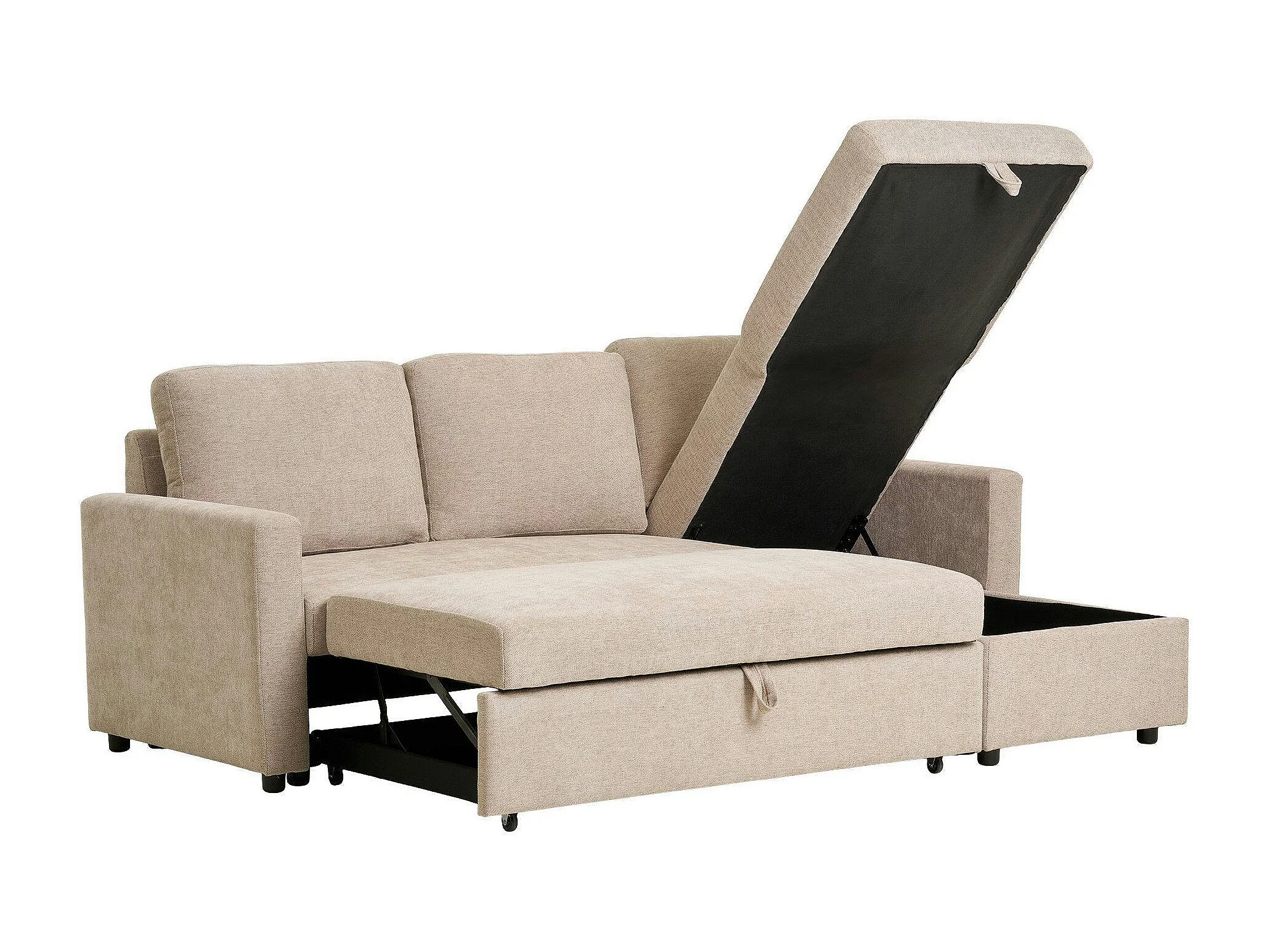 Canapé-lit 3 places beige avec méridienne coffre BERLIN