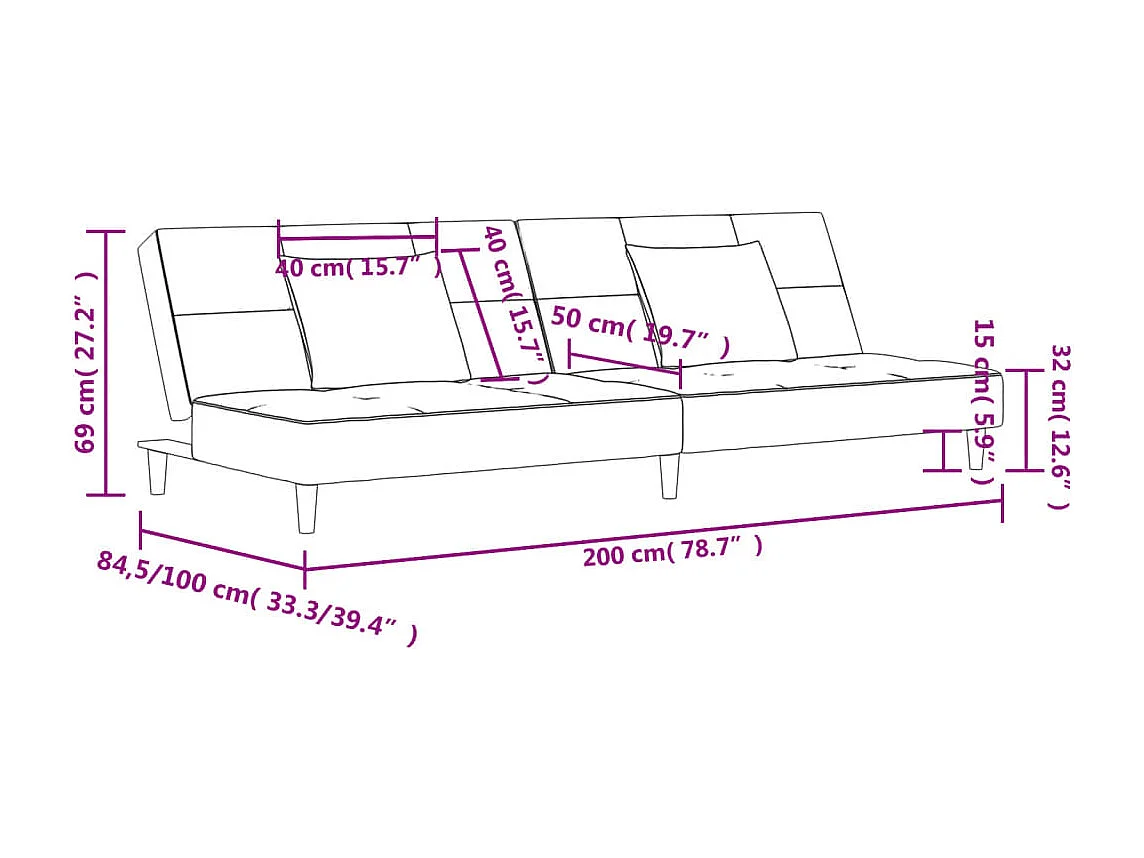 Canapé-lit à 2 places avec deux oreillers crème velours
