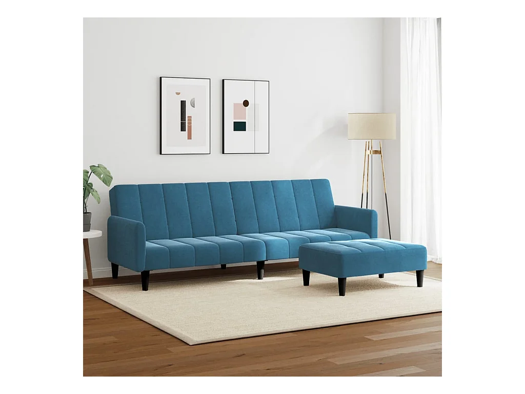 Canapé-lit à 2 places avec repose-pied bleu velours