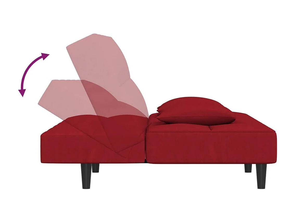 Canapé-lit à 2 places et deux oreillers Rouge bordeaux Velours