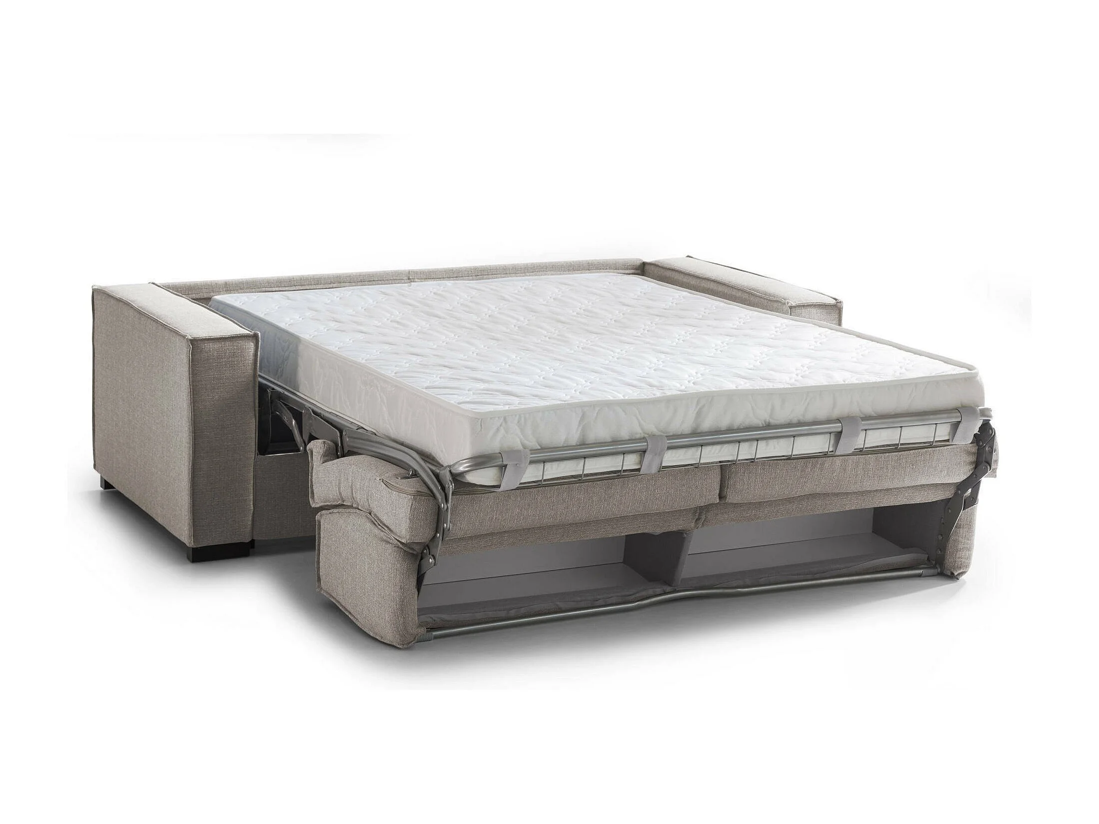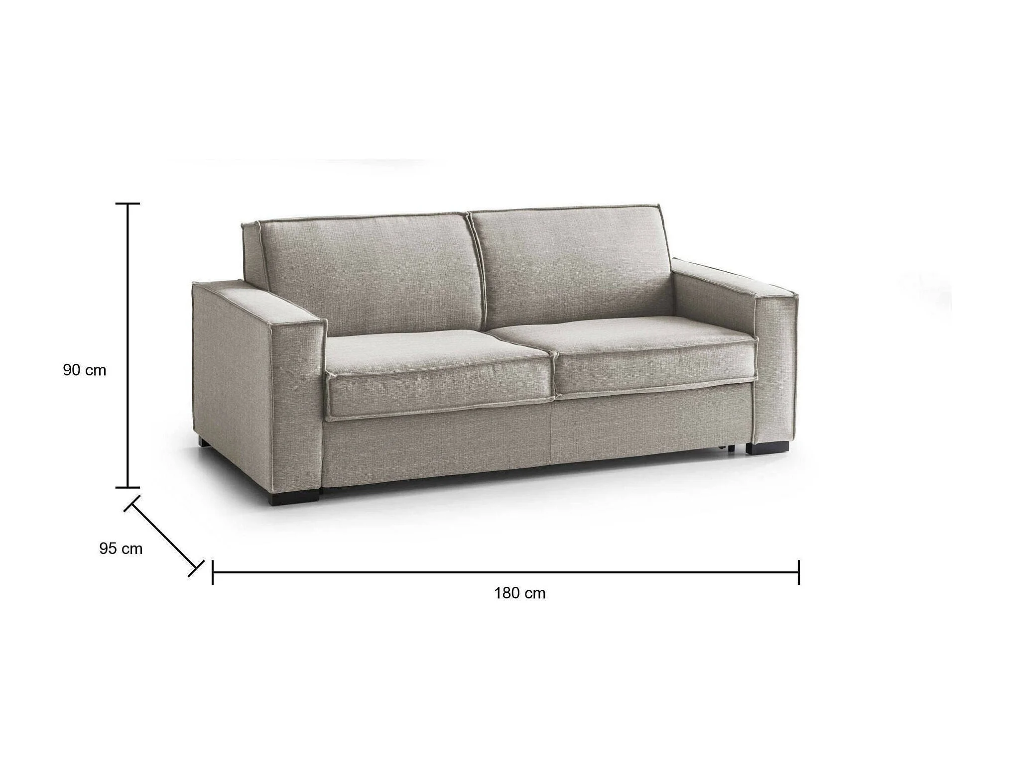 Divano letto 2 posti Achiropita, Sof Soggiorno apertura girevole, Tessuto imbottito, Braccioli slim, 100% Made in Italy, Cm 180x95h90, Tortora