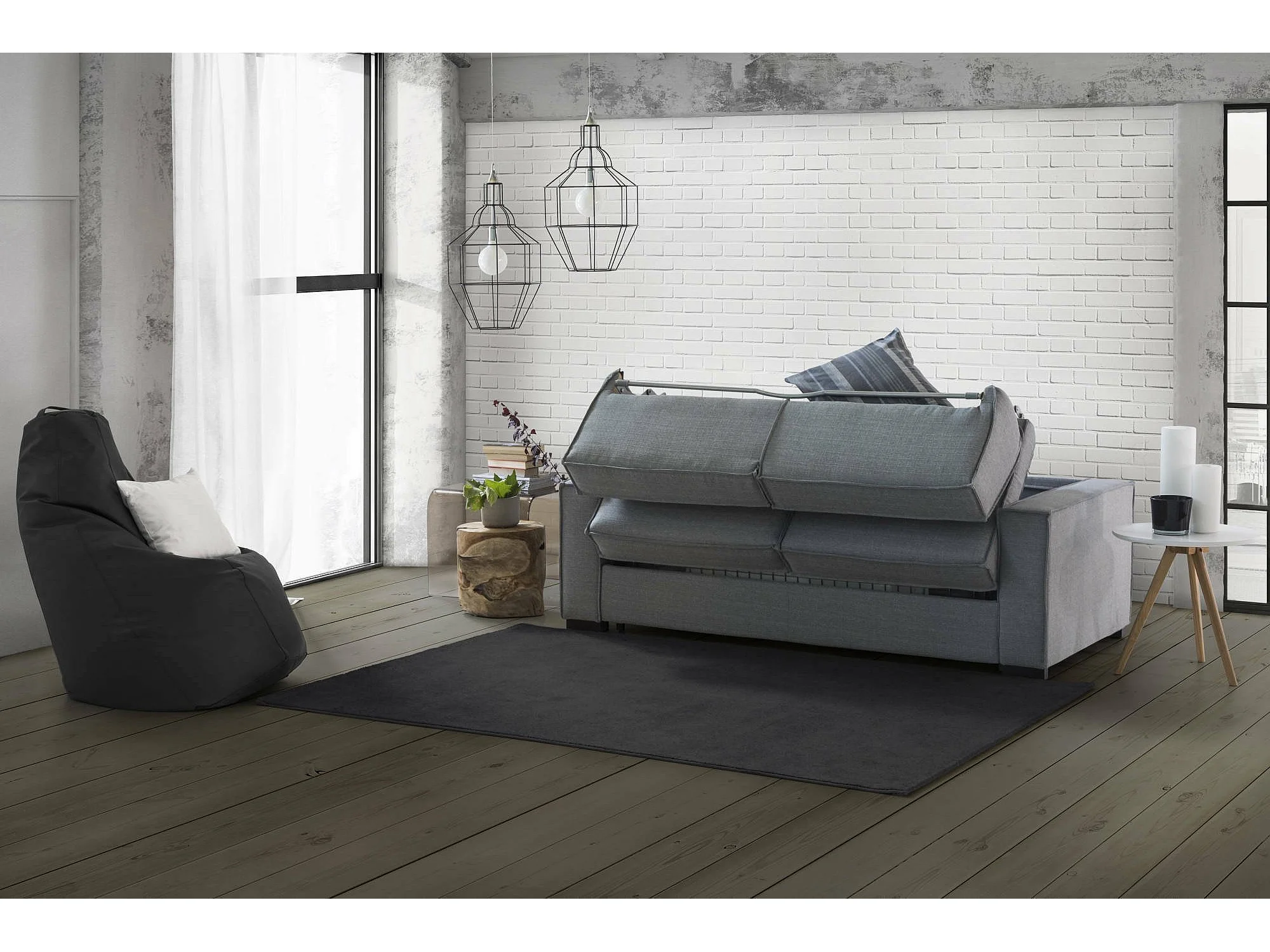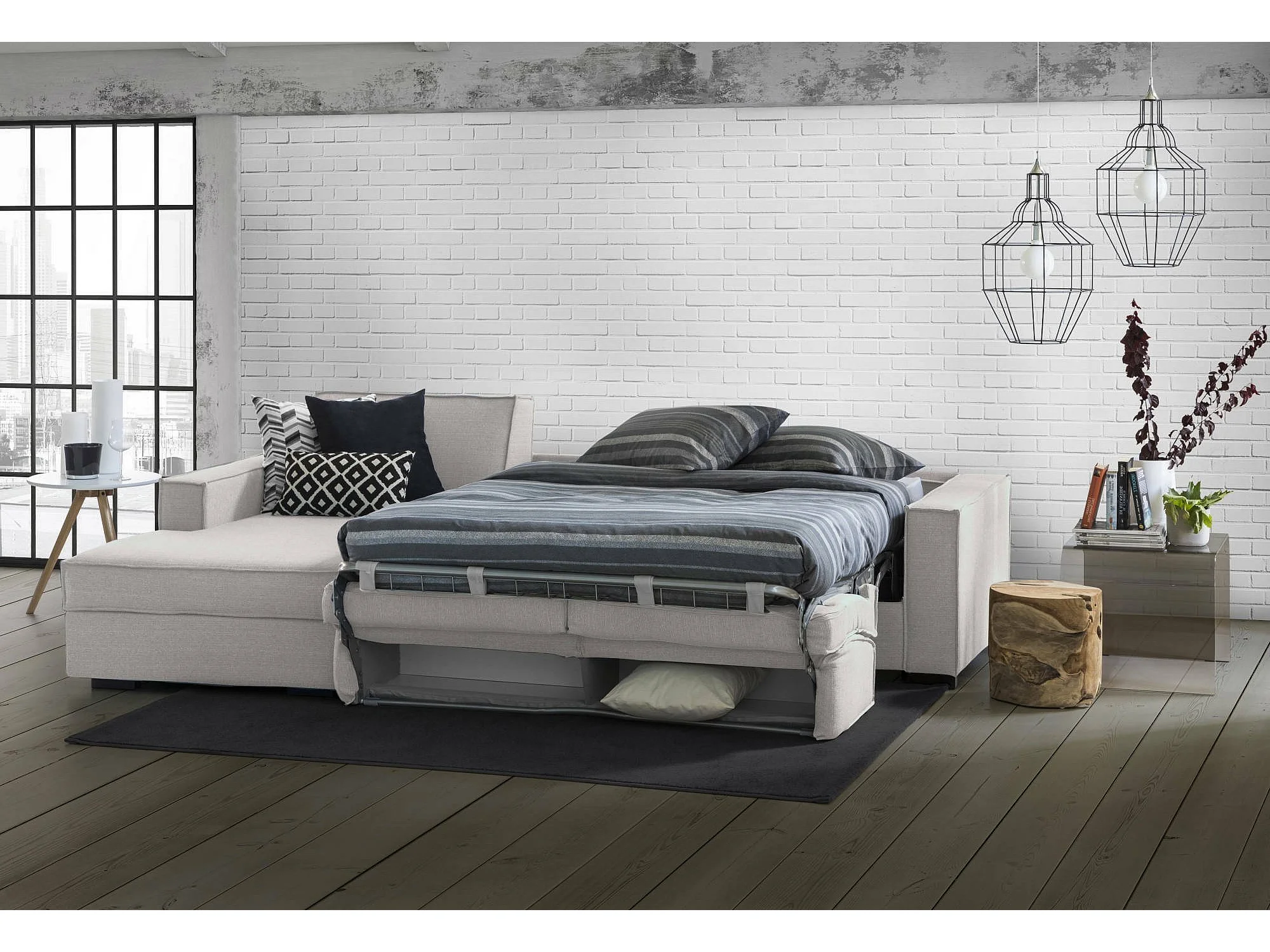 Divano letto con penisola Adelina, Sof con penisola contenitore Sinistra, Braccioli standard, 100% Made in Italy, Cm 280x95h90, Grigio